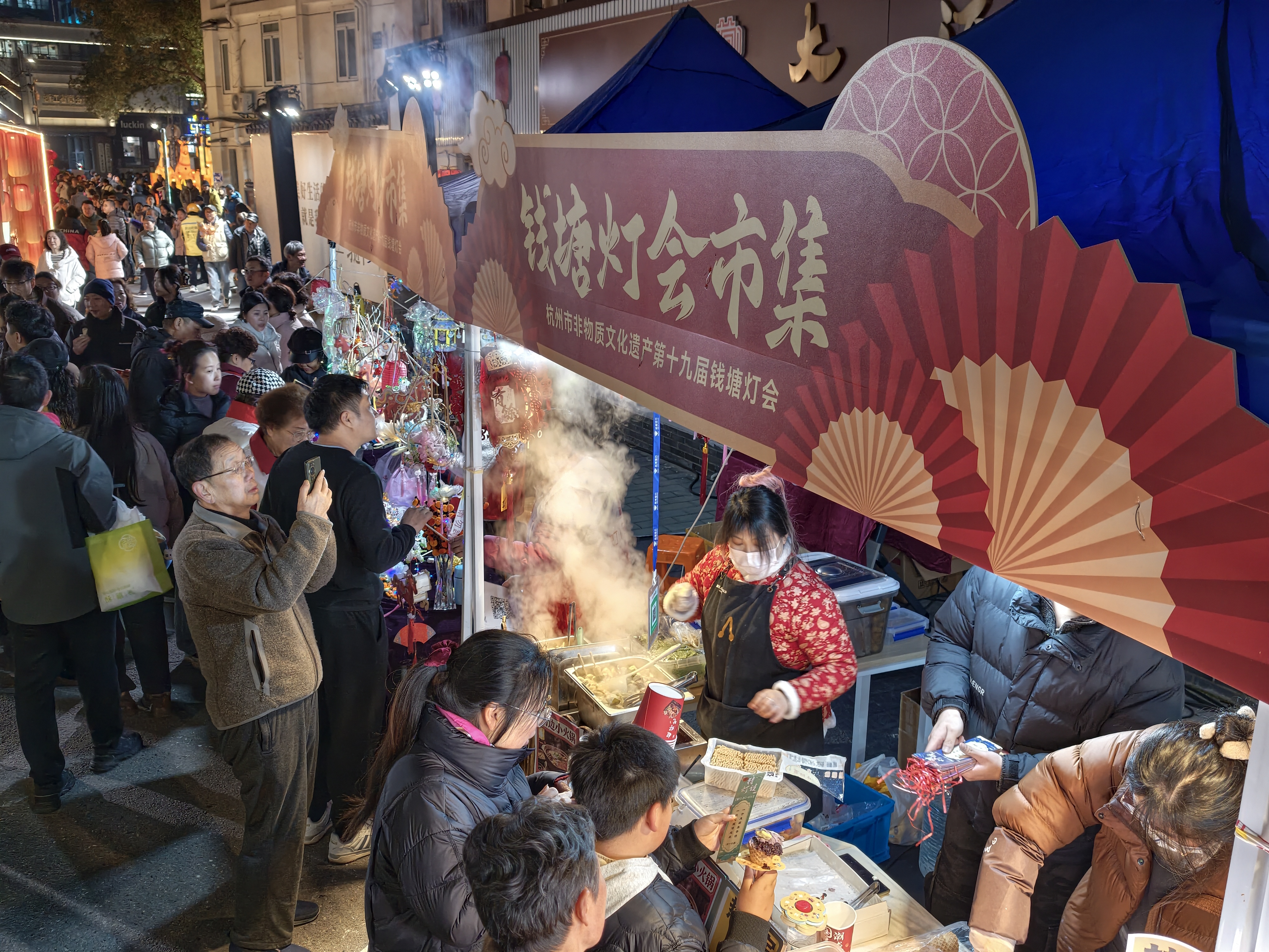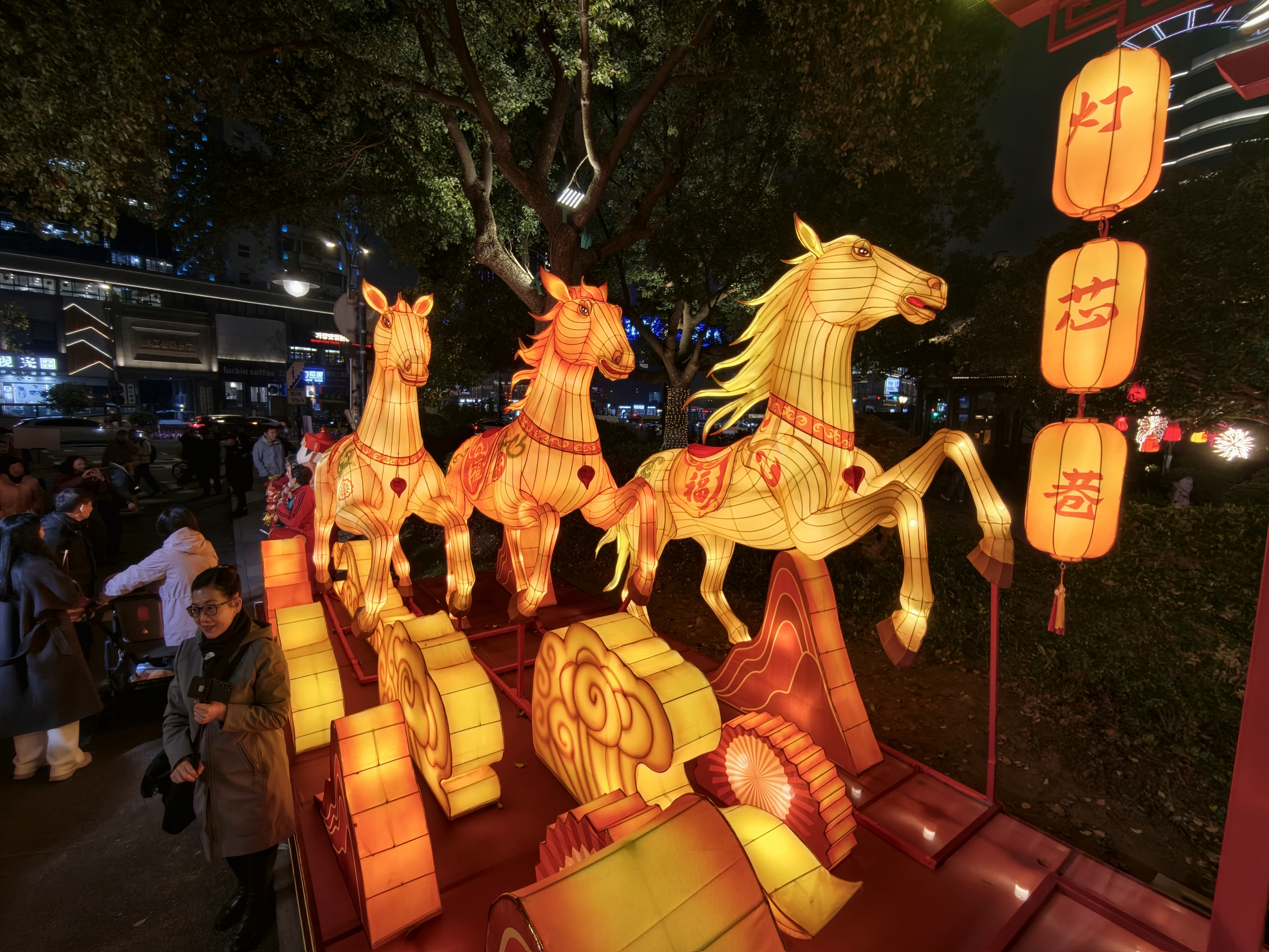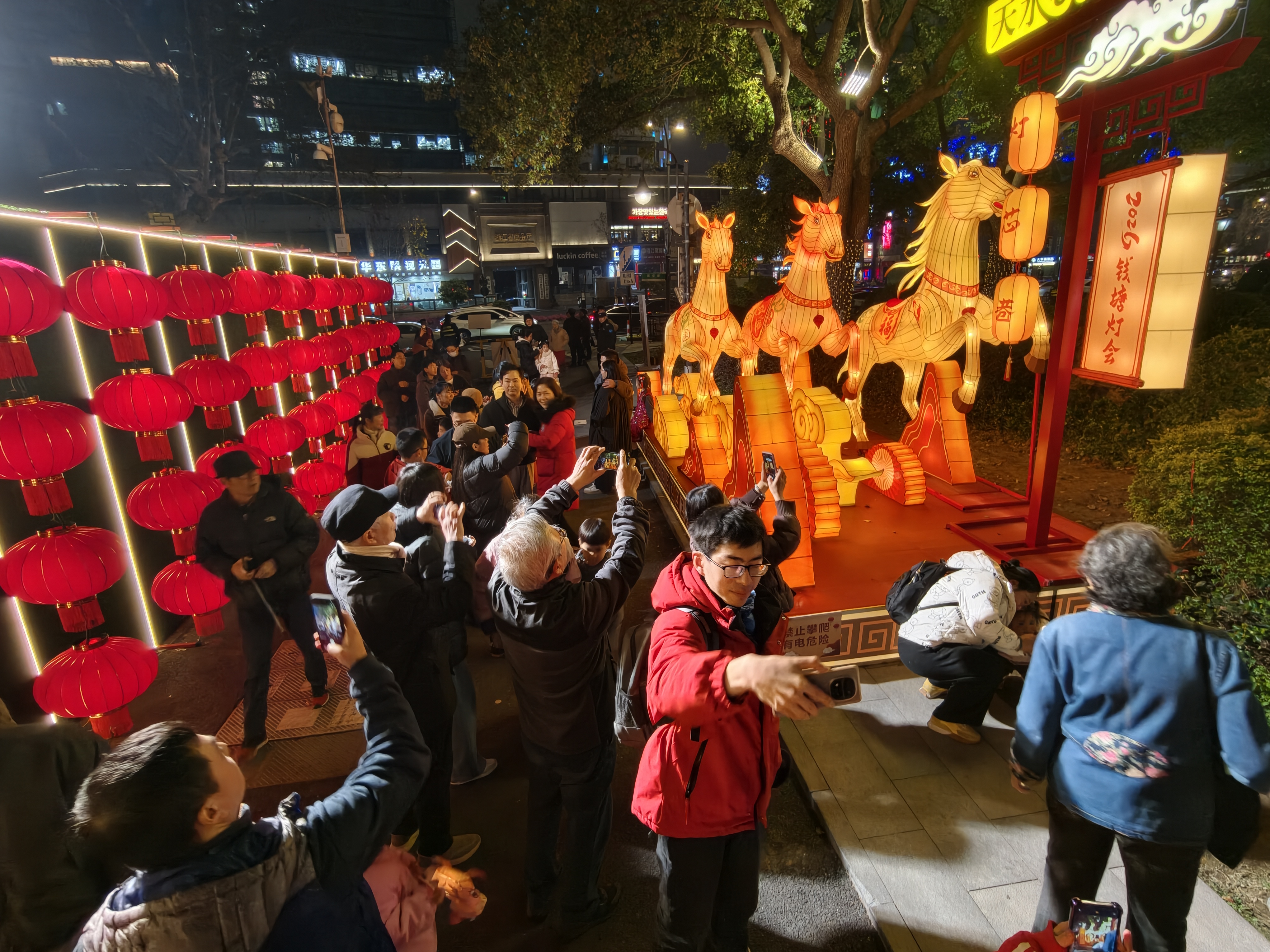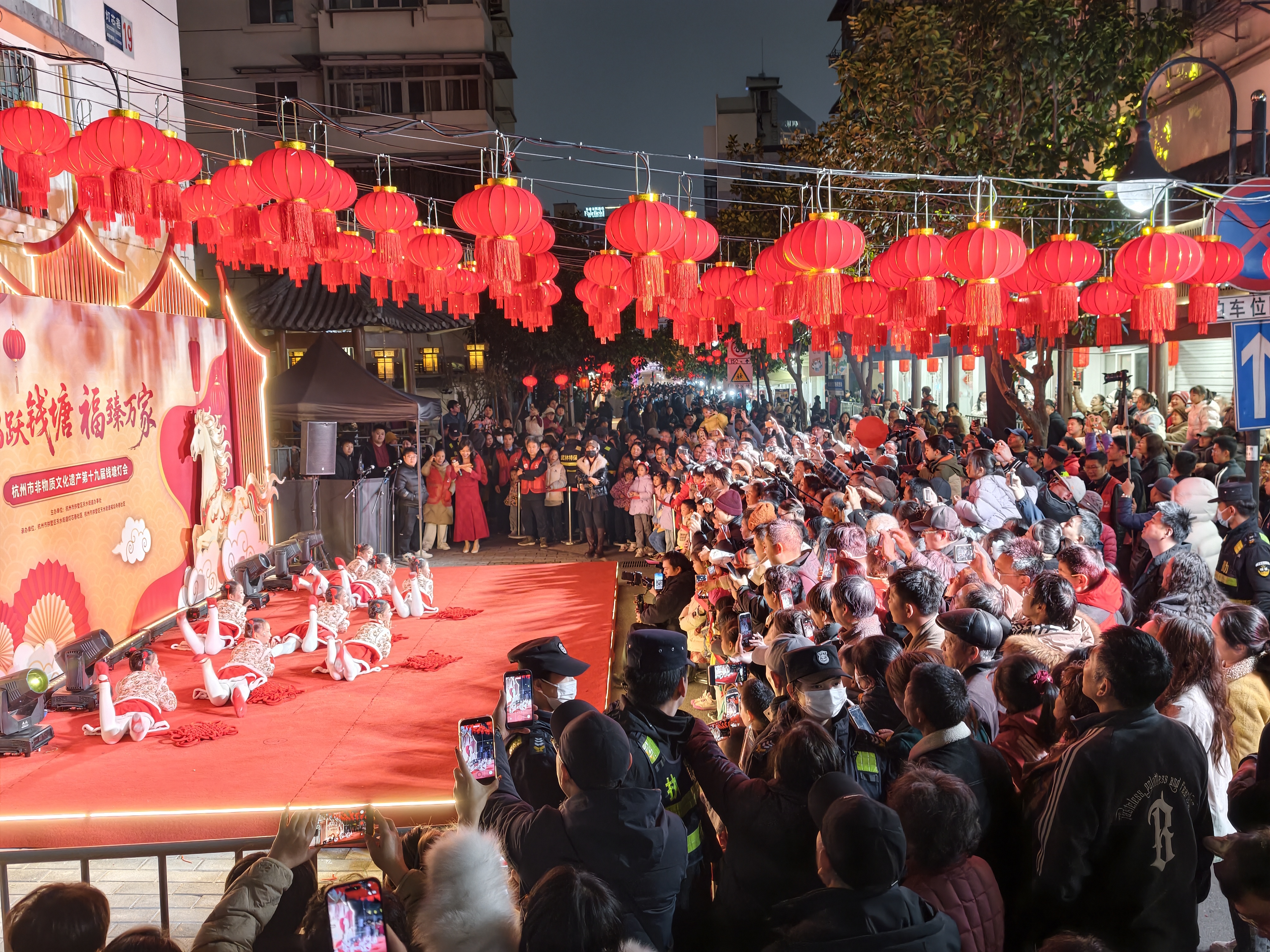 #年味淡了吗?# 龙兴寺经幢下,钱塘灯会正热闹!红灯笼、彩灯马、小吃摊…杭州的年味儿,全在这条老巷子里啦~