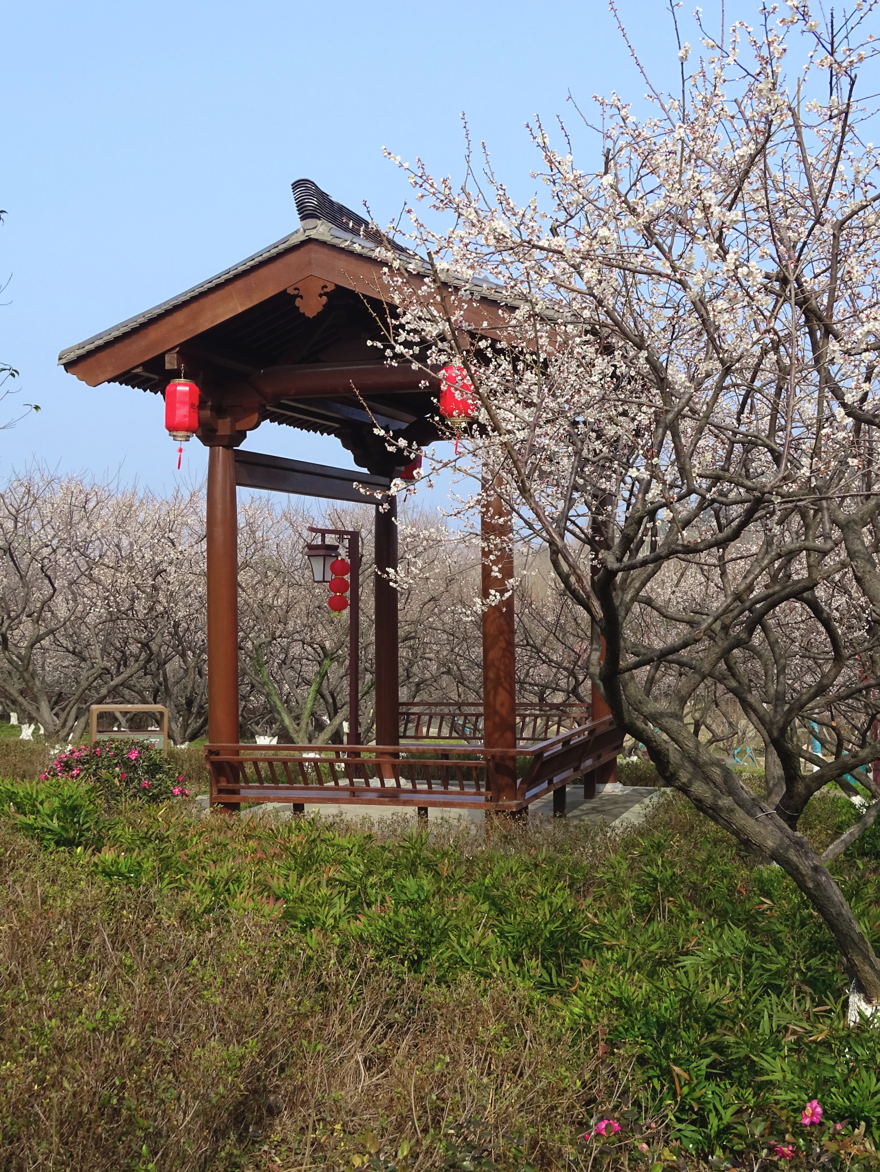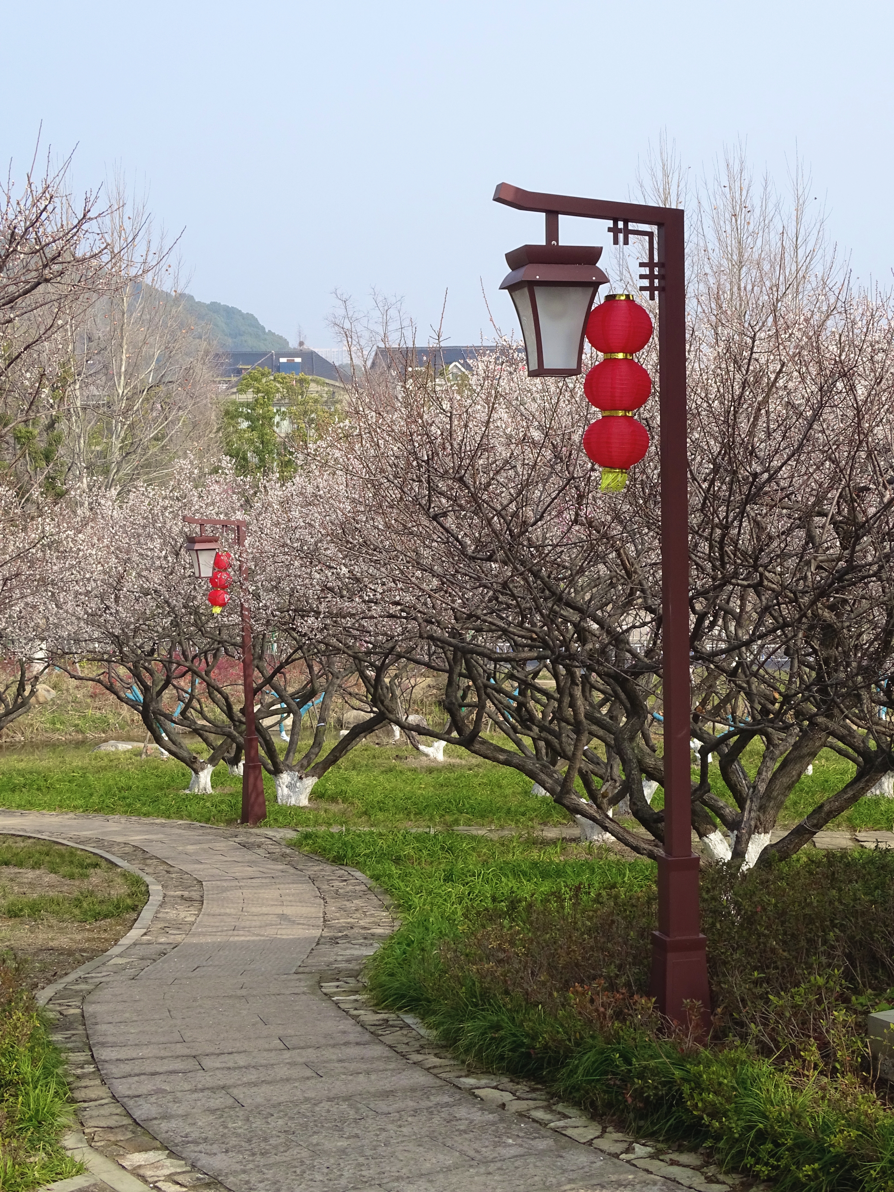 #春拍大赛#超山白梅盛开,枝头雪似的花瓣沾着阳光。红灯笼沿着石板路高高挂,木亭边暗香浮动,走着走着就醉在这春天里啦!