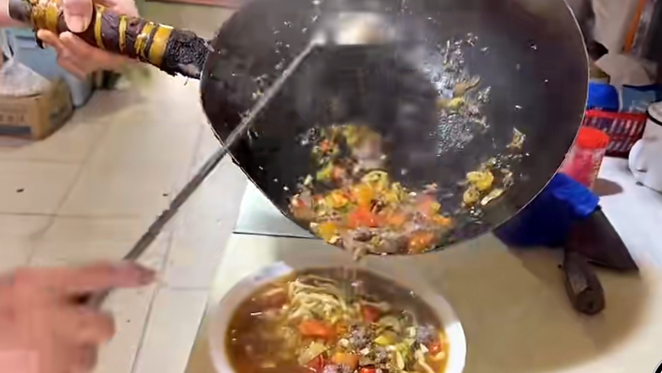 老郭理发店隔壁的镬气 兰溪市溪西新区的溪西老街,时光仿佛是浸了油的纸,绵软而透亮。巷子东西向,不过三四米宽,对面人家晾衣竿伸出来,竹竿上滴落的水珠都能溅到这边门槛上。这样窄的巷道,别说停小车,就是电动两轮车进出多了,都要互相侧身让行,喇叭声都显得多余。青石板路被岁月磨出了包浆,两旁的老房子,木门木窗,墙皮斑驳地脱落着,露出里头更深一层的黄。 我不住在这儿,只是每隔些日子,总会穿过半座城,到老街的“老郭理发店”来。老郭理发店也旧。一把老式转椅,漆皮剥落了大半,镜子上有擦拭不尽的雾斑。老郭话少,推子咔嚓咔嚓响,像剪着时光的须角。理完发,整个人神清气爽,看看表,往往近午。 这时,一股熟悉的、混着猛火与油脂焦香的霸道气息,便从隔壁无声无息地漫过来,勾着人的步子。这香气在窄巷里格外浓郁,逃无可逃,仿佛把整条巷子都腌渍入味了。偶尔,从巷子东头——那里离兰江的里溪不远——会飘来江轮低沉的汽笛声,“呜——”,长长的一声,穿过老屋的缝隙,混着滨江路上隐约的车流声,一并落在这窄巷里,成了面馆声响奇特的底衬。 香气来源,是一家没有招牌的面馆。它与老郭理发店只隔了两个门面,共着同一片被屋檐切割下来的狭长天空。熟客都知晓,那是兰溪地道的牛肉面馆,秘诀就在“生牛肉一碗一炒”。生客呢,循着这勾魂的香气,或看着店外木板桌边埋头呼噜的食客,也总能摸对门。 店面窄长,格局深,门口用几块厚实的长木板,在骑楼下搭出简易的餐桌椅,已然占去了巷道一小半。店主是一对中年夫妻。妻子面容清秀,眉眼间透着江南女子的细致,只是身形瘦削,系一条洗得发灰的蓝布围裙,动作快得像水上的飘。丈夫截然不同,身材敦实,行动总带着一种深思熟虑般的迟缓,厚厚的眼镜片后面,目光总是胶着在手中的活计上——不是揉着一团光润的面,就是守着那口咕嘟作响的汤锅。近来,他们戴眼镜的儿子也常在店里帮忙,二十出头,学生模样,安静,文气,是父母的结合体,却更沉默。三人之间流转着一种无言的默契,像三条彼此咬合的齿轮,安静地驱动着这家小店。 店里的景象是活的,声音却奇异地“静”。这静,并非无声,而是所有声响都各安其位,透着一种井然有序的沉实。巷子外的汽笛与车声,到了这里,仿佛被厚厚的墙壁与蒸腾的烟气滤过一层,只剩模糊的背景音。 最鲜明的是刀与砧板的交谈。“嚓、嚓、嚓——”清脆而均匀,是妻子在切青辣椒,碧绿的碎末在她刀下聚拢,空气里溅开星星点点的辛辣。“咚、咚、咚……”沉钝而有力,是丈夫在对付一大筐生菜,刀起刀落,菜梗断裂的声音饱满,汁液似乎都震出了清芬。这些声响,在窄巷里听得格外真切,仿佛就在耳边。 真正的重头戏在灶上,那是兰溪牛肉面的魂灵所在——一碗一炒。灶眼上并排两口大铁锅,一口煨着奶白浓醇的牛骨高汤,终年不息地咕嘟着,白汽如云;另一口,则是专司炒制的“主战场”,油光黑亮,积淀着经年累月的火候。 流程是固定的,却每次看都觉新鲜。儿子守在汤锅与煮面锅前,将定量的碱水面投入沸水,面条下沉时发出细微的“滋——”声,随即被翻滚的白浪吞没。他静候着,心神却似乎分了一半给旁边那口炒锅。 妻子主理炒制。有客人点单,她便从冷藏柜中取出一份鲜红的生牛肉片,薄厚匀称。那口黑铁锅早已烧得极旺,隐隐透出青烟。一勺金黄的菜籽油滑入,“滋啦——”一声爆响,油花在锅底迅速绽开成圈,这声音在狭小的空间里格外具有爆发力。紧接着,牛肉片贴着炽热的锅边滑入,瞬间,更激烈的“噼啪”声炸开,热力催逼出蛋白质的焦香与油脂的芬芳。她单手颠锅,另一手持铲快速翻动,铁铲与锅壁碰撞,发出紧凑而坚实的“锵、锵”声,像某种铿锵的节拍。加入腌菜、辣椒、秘制酱料,一番迅猛的翻炒,浓郁的、带着锅气的酱香轰然升腾,几乎要顶到低矮的天花板。 就在这时,关键的一步来了。儿子恰好将煮至恰好的面条从漏篓中沥出,那带着水汽和热度的面条,被准确地“哗啦”一下倒入正在沸腾的炒锅之中,与牛肉、酱汁、镬气瞬间交融。这一倒,声响浑厚而充实。妻子手中的铁铲立刻跟进,开始用力地翻炒、拌和,让每一根面条都裹上酱色的亮油,沾上牛肉的鲜香。铲与锅、面与料,碰撞出更为密集而湿润的“嚓啷”声,蒸汽“噗”地腾起,带着无法形容的复合香气,将灶台笼罩,又从门里漫出去,填充着外面的窄巷。 最后,将这一锅浑然天成的面条与牛肉,直接倾入早已备好的面碗中。那面条是热的,牛肉是嫩的,镬气是足的,所有味道在最短的时间内被锁定、融合。 食客进门,无需多言。只对着那片忙碌的光景,说一句:“牛肉面,烧生菜。”或“肉丝面,青菜生菜都要。”声音都不自觉地放轻了,像是怕惊扰了那份专注的宁静。然后便转身出去,在店外巷道边的木板桌边寻个空位坐下,身侧就是斑驳的老墙。望着对面人家窗台上探出的花草,或听着隔壁老郭理发店里推子偶尔的嗡鸣,静静等候。远处江轮的汽笛又响了一次,这次近了些。 谁空,谁就捧出面来。有时是妻子端着一海碗油光发亮、热气奔腾的面,脚步轻悄地穿过窄道,侧身避让着巷道里经过的行人;有时是儿子用木托盘一次送出两三碗,步履稳当;丈夫也偶尔出来,默默地收拾起空碗,叠起,用抹布缓缓擦净油腻的木板桌面,动作仔细得像在完成一件作品。他们之间没有交谈,与食客也极少有