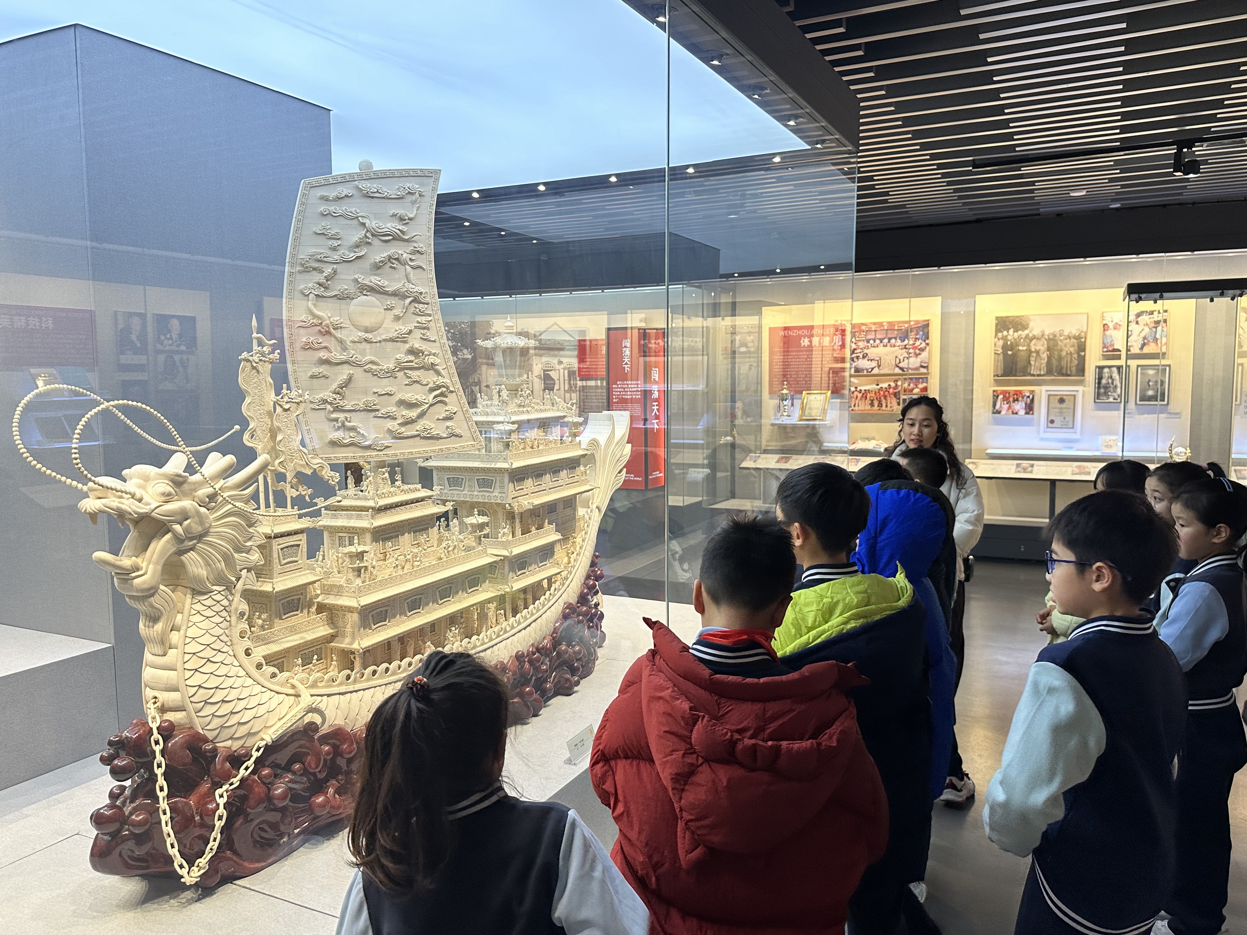 百人千场进万站丨杨府山社区新时代文明实践站:"走近温州先贤 传承浙商精神"实景赋能宣讲活动 为深入学习宣传贯彻党的二十届四中全会精神,弘扬优秀传统文化和新时代奋斗精神,杨府山社区新时代文明实践站组织温州大学附属第一实验小学的同学们走进位于会展路1288号的世界温州人博物馆开展百人千场进万站丨"走近温州先贤 传承浙商精神"实景赋能宣讲活动。以"行走的实景课堂"形式,将全会精神学习与地方历史文化教育有机结合,推动全会精神在青少年心中落地生根。 本次实景宣讲以博物馆“千年潮起”“百年潮涌”“时代潮头”三个单元为阵地,打造沉浸式体验。宣讲员循着温州商业发展脉络,从唐代海外贸易兴起、南宋海上丝绸之路繁荣,到明清跻身全国商业中心,再到近代先贤远渡重洋的谋生艰辛与实业救国的赤诚,结合现场淡黄色绒线衣、骨雕龙舟“一帆风顺”、新加坡温州会馆牌匾等展品背后的“世界故事”,溯源温州深厚文化底蕴与商业传承,生动诠释讲述了温州先贤在党的领导下,团结奋斗、开拓进取、回报家乡的感人故事,同学们纷纷表示,通过学习党的二十届四中全会精神,更加理解了温州人精神背后是中国特色社会主义制度的坚强支撑,将牢记奋斗初心,坚定制度自信,传承先贤薪火,在学习和生活中勇于创新、直面困难,争做担当民族复兴大任的时代新人。 此次宣讲活动,让同学们直观领略了温州深厚的历史文化和商业文明。孩子们在聆听展品背后的浙商故事后,深刻体会到幸福生活来之不易,纷纷表示要以先贤为榜样,传承吃苦耐劳、开拓创新的精神,努力成长为担当民族复兴大任的时代新人。