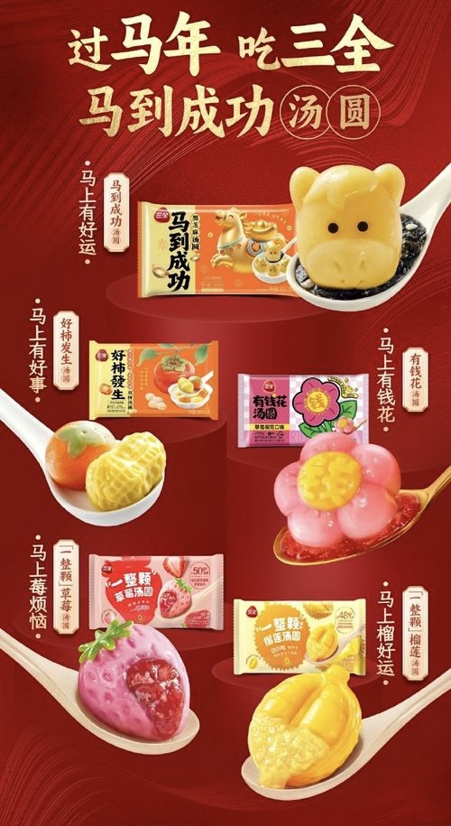 昨天元宵节吃汤圆,爸爸妈妈吃的是传统的芝麻和肉馅儿的汤圆,我吃了巧克力味(奥巧味)的汤圆,由于今年是马年,三全推出了“马到成功”汤圆,除了我吃的奥巧味,还有黄皮的传统芝麻味(还代表马上有好运)~三元其余关于马年的“马上有好柿(事)”“马上有钱花”“马上莓(没)烦恼”马上榴(留)好运”分别和柿子、草莓和樱花、草莓以及榴莲口味有关,今天我吃了“马上有钱花”款式的~ 我还看到了一些网友晒的汤圆图,“马到成功”汤圆被吐槽煮熟了很丑,形状也模糊变形了,都不像马🐴了,反倒更像耗子🐭或者土拨鼠~还有人看到哪吒敖丙款式的汤圆瞬间笑喷😄马年除了马到成功的马形汤圆,还有小马宝莉的汤圆,不知是什么味道的~第十四张图片那几颗橙色的是什么汤圆来着,不会是河马吧,呃,好吧,大概有人觉得河马🦛也算马~最后一张图汤圆上的眼睛👁️据说还是网友自己画的,现在元宵节的汤圆真是越来越丰富多彩、花样繁多啦~