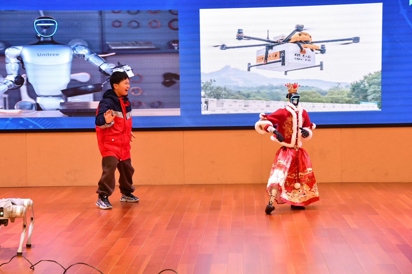 3月4日,我们迎来了开学第一天。学校联合杭州电子科技大学集成电路科学与工程学院,为我们带来了以"爱科学、学科学、用科学、创科学"为主题的开学第一课,现场充满了浓浓的科技氛围。 课堂上,专家老师带来了《四足机器狗与人工智能的奇妙之旅》科普讲座,用生动有趣、通俗易懂的语言,为我们讲解人工智能知识,大家都听得津津有味。 最让我们激动的是,春节顶流明星——宇树机器人也来到了现场。互动环节中,我们还和宇树机器人一起表演武术。大家出拳、踢腿,和机器人配合得十分默契,动作整齐又帅气,台下掌声不断。 这堂特别的开学第一课,让我们近距离感受到了科技的神奇与魅力,也在我们心中种下热爱科学、勇于探索的种子。我们一定要努力学习,将来用知识创造更多精彩。 绍兴市柯桥区马鞍中心小学 罗艺菲