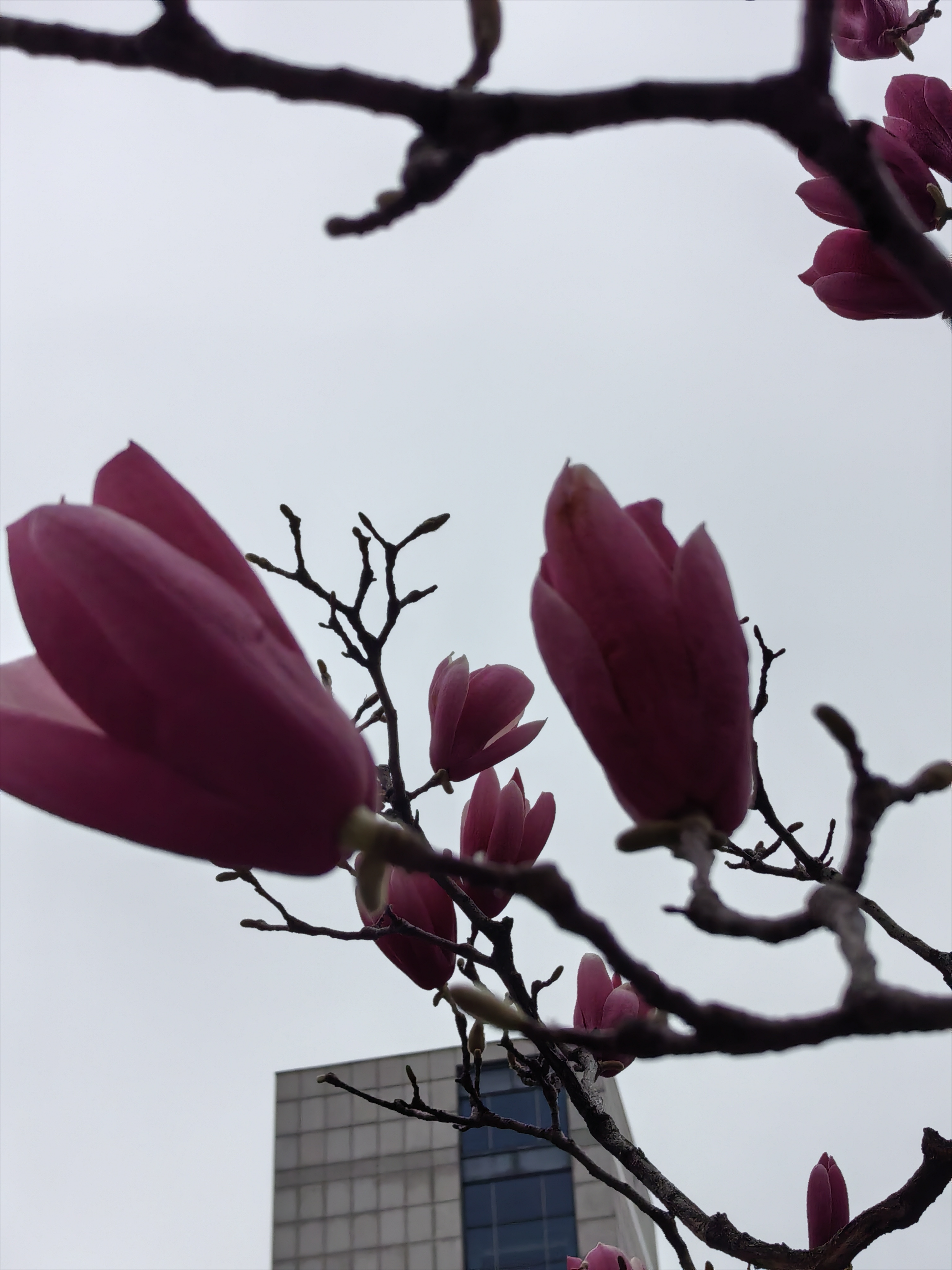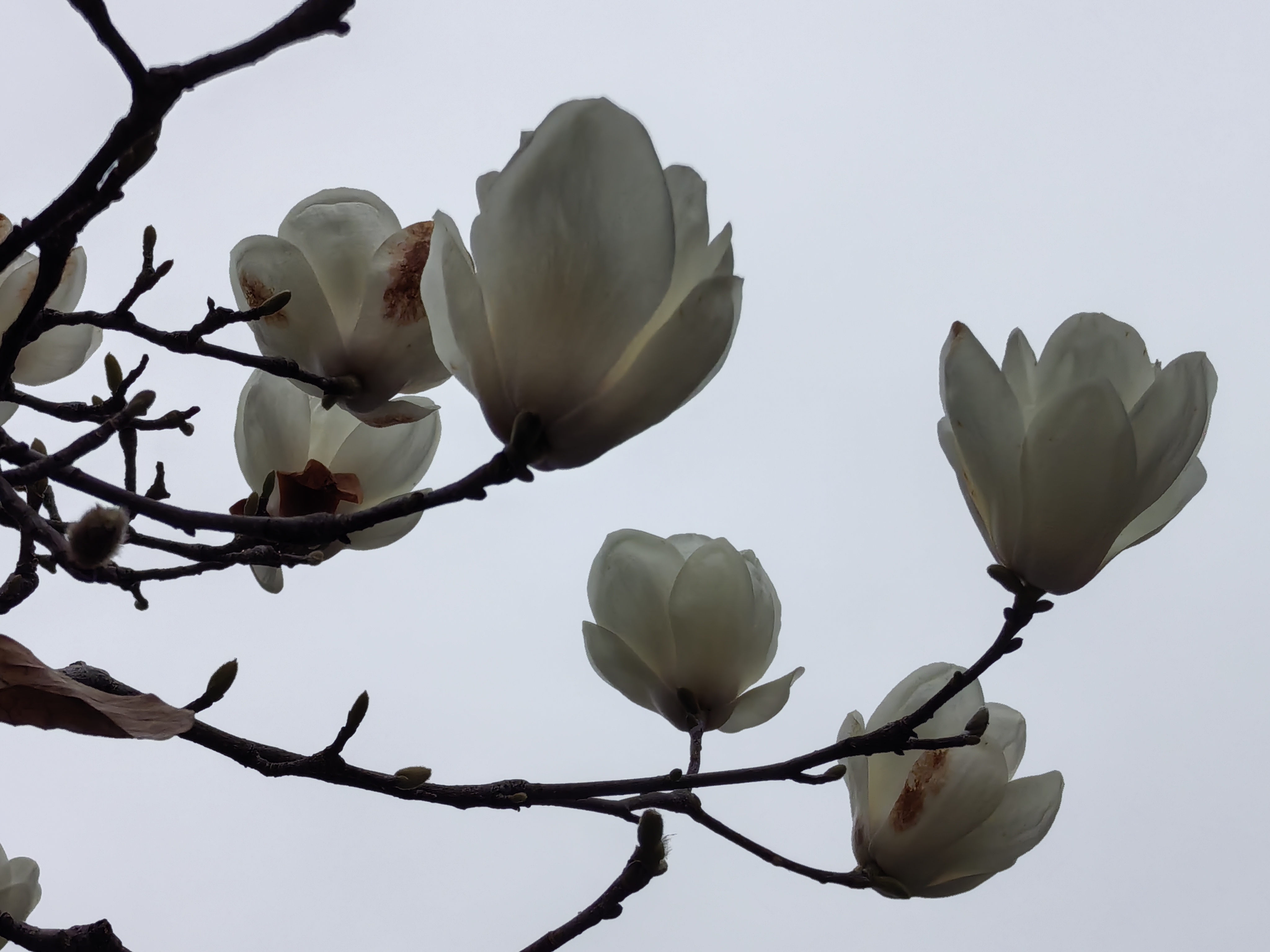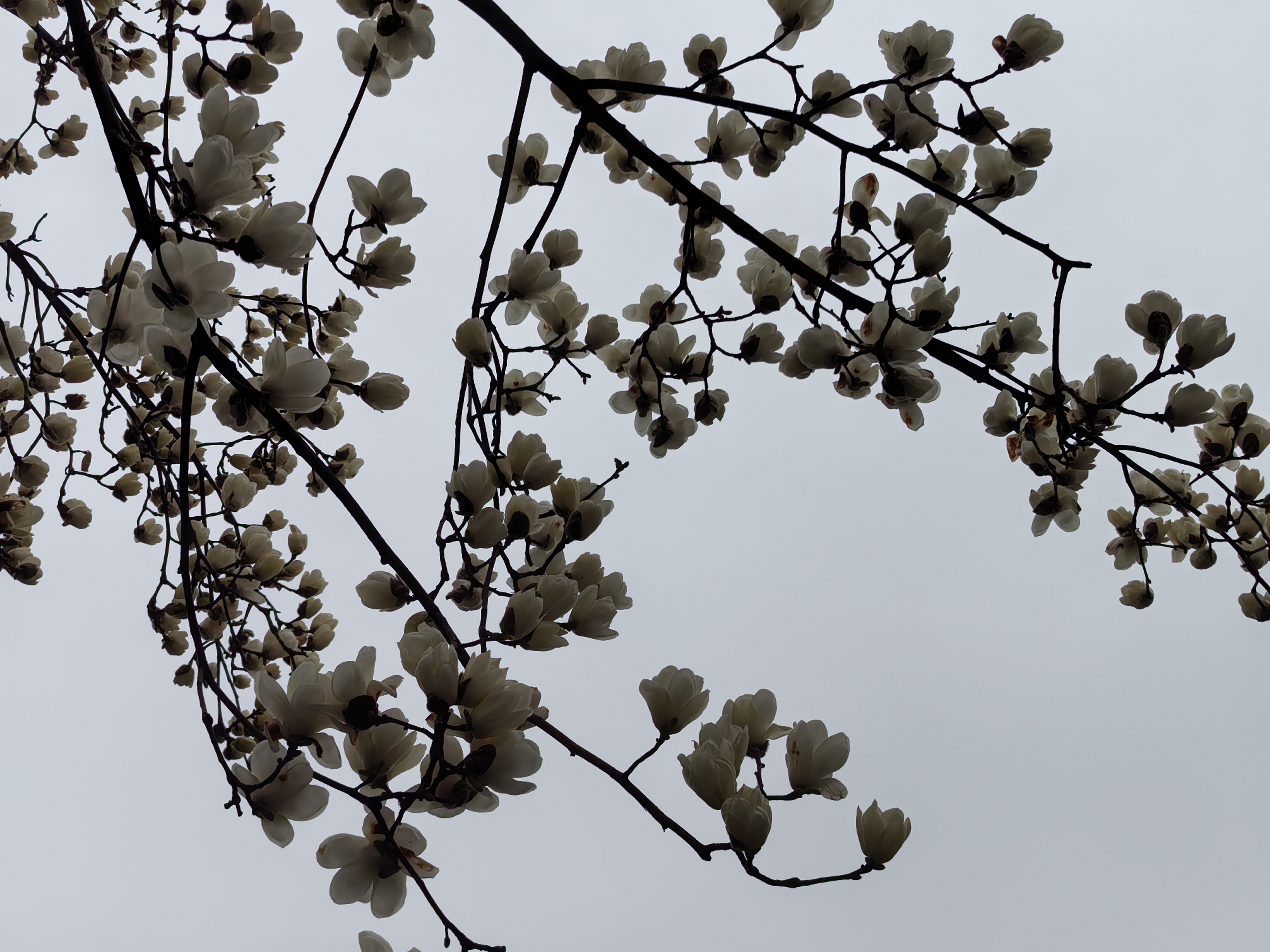 今天我又一次来到网红打卡点——六公园公交站的玉兰花开了,很美。