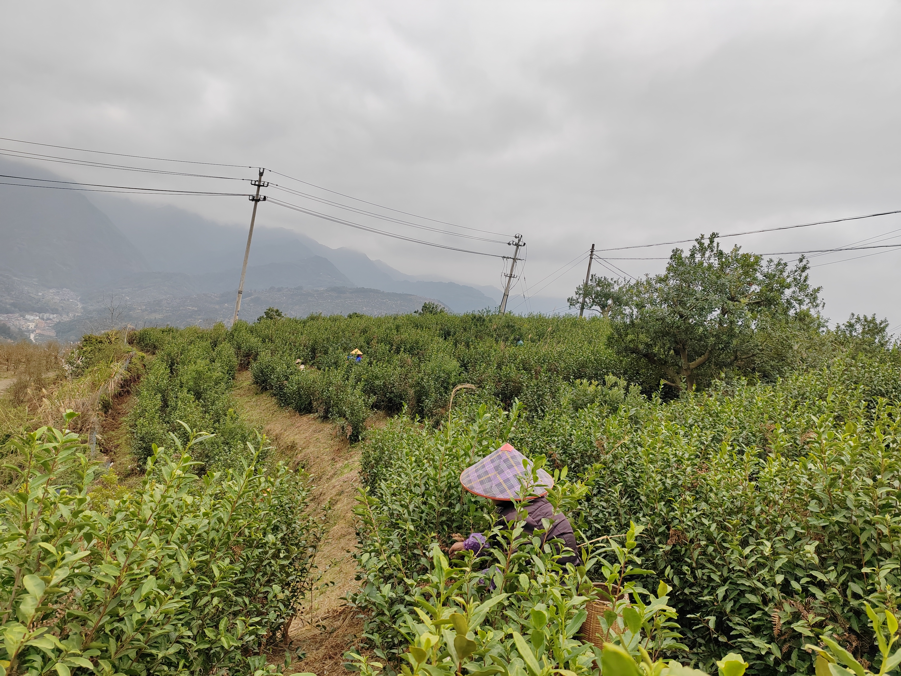 看到她们在茶园采摘春天的第一茬茶叶