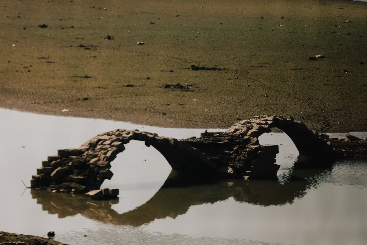 醉仙湖枯水期,古桥静卧裸露河床,倒影里山丘温柔,土黄岸线与稀疏绿意,讲着湿地悄悄变的故事~