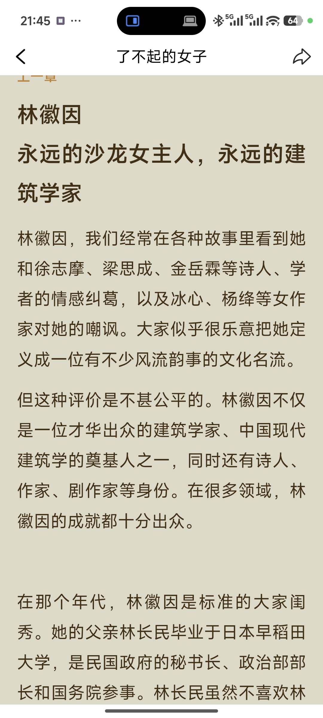 《了不起的女子》之林徽因 初识林徽因是从她的“人间四月天”开始的,然后是她的爱情,爱她的男人,她爱的男人,今天又从笔者手中了解了她的另一面——建筑家。长期以来,大众眼中的林徽因往往被包裹在浪漫的爱情故事里,仿佛她只是男人世界里的点缀。然而,作者却通过犀利的笔触拨开了历史的迷雾,还原了她作为“中国第一位女建筑师”的职业本色。 书中写道,林徽因的美不仅是外在的优雅,更在于她骨子里的坚定。当同龄人还在享受闺阁安逸时,她已随梁思成踏上了考察中国古建筑的艰辛之路。那是怎样的路途?荒郊野岭、断壁残垣,甚至随时面临战乱与疾病的威胁。正是在这样恶劣的环境下,她与丈夫风餐露宿,用双脚丈量了中国大地,发现了佛光寺等珍贵古迹,为中国建筑史填补了空白。 原来,那个在诗会上吟诵《你是人间的四月天》的才女,更是那个在测绘图纸前熬红双眼、在病榻上仍坚持撰写文物保护方案的战士。她用实际行动证明了:女性的价值,从不依附于任何人的光环,而在于自己亲手创造的成就。 世人常借由她与徐志摩、梁思成、金岳霖的情感纠葛来窥探她的生平,但读完这篇传记,我才真正明白:林徽因之所以“了不起”,绝非仅仅因为她是民国时期的“女神”或“沙龙女主人”,更在于她以柔弱之躯,在动荡的时代里活出了女性的独立、坚韧与博大。