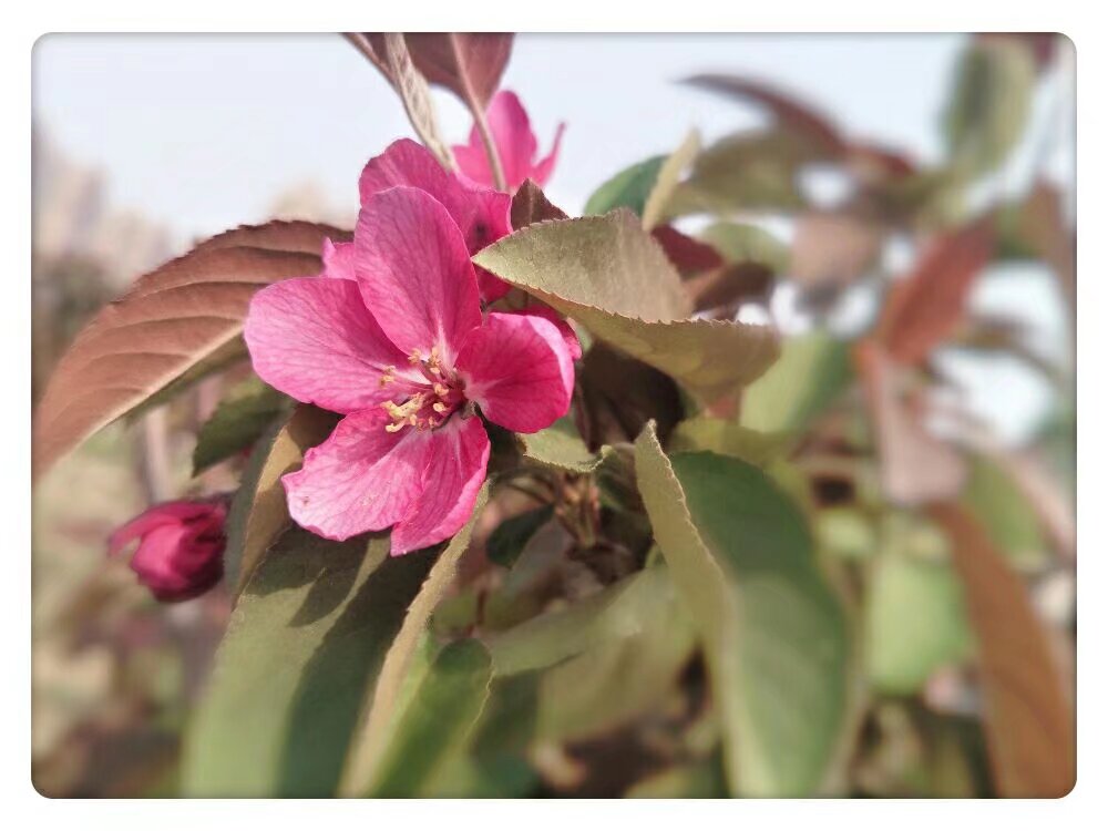 春风拂过,海棠初绽, 一抹胭脂色,晕染了整个春天。 花瓣轻颤,似在低语, 将温柔与热烈,都藏进这方寸之间。