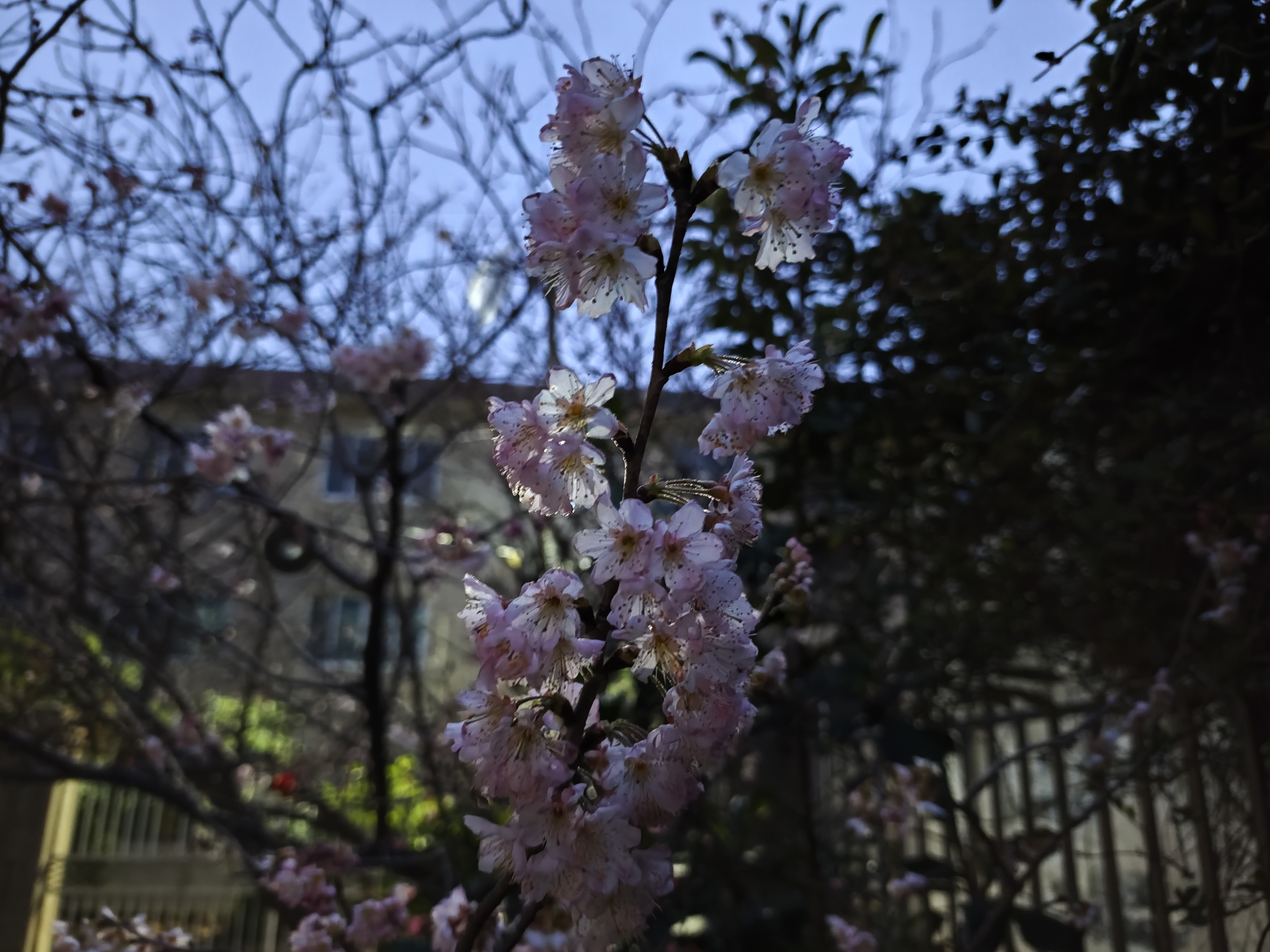 樱花札记:晨昏间的粉白絮语 晨光初绽时,樱花是枝头漏下的星子。 粉白花瓣驮着金芒,在风里轻轻颤—— 像春的指尖,碰落了云的碎屑, 坠在深褐的枝桠间,洇开朦胧的梦。 背景里楼宇的轮廓晕成水彩, 红笼晃着旧岁的暖,绿影摇着新生的痒。 花瓣与光的吻,落在眸中, 便酿成一口清甜的春酿。 暮色垂落时,樱花是夜的灯盏。 粉瓣裹着幽蓝的天幕,在暗里亮—— 像谁遗落的诗笺,被风拾起, 又轻轻铺在枝头,与月光对唱。 窗内灯火晕作暖黄的星, 花影在玻璃上织着朦胧的网。 夜樱的呼吸,和着虫鸣低唱, 把每一片瓣的舒展,都写成静谧的乐章。 从晨光到暮色,樱花是时光的邮差。 它把春的密语,藏进粉白的褶皱里, 在枝头开成一场无声的告白。 每一片花瓣的颤动,都是与世界的私语; 每一缕暗香,都是对生命的礼赞。 不必问归期,只需循着这粉白的轨迹, 走进春的深处,看它在晨昏的渡口, 续写一季的温柔,直到风把故事吹成永恒。