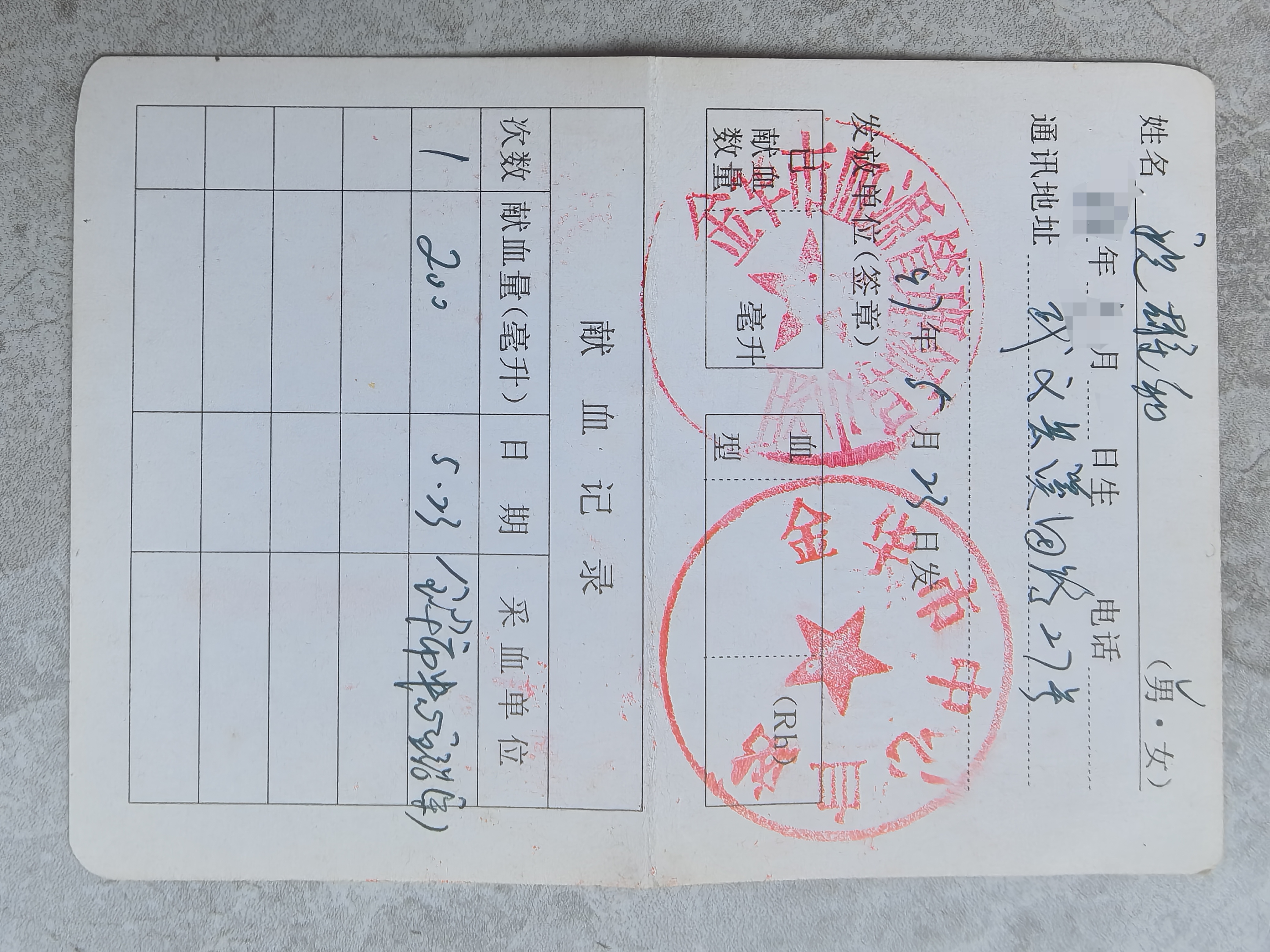 1997年5月23日第1次参加无偿献血。