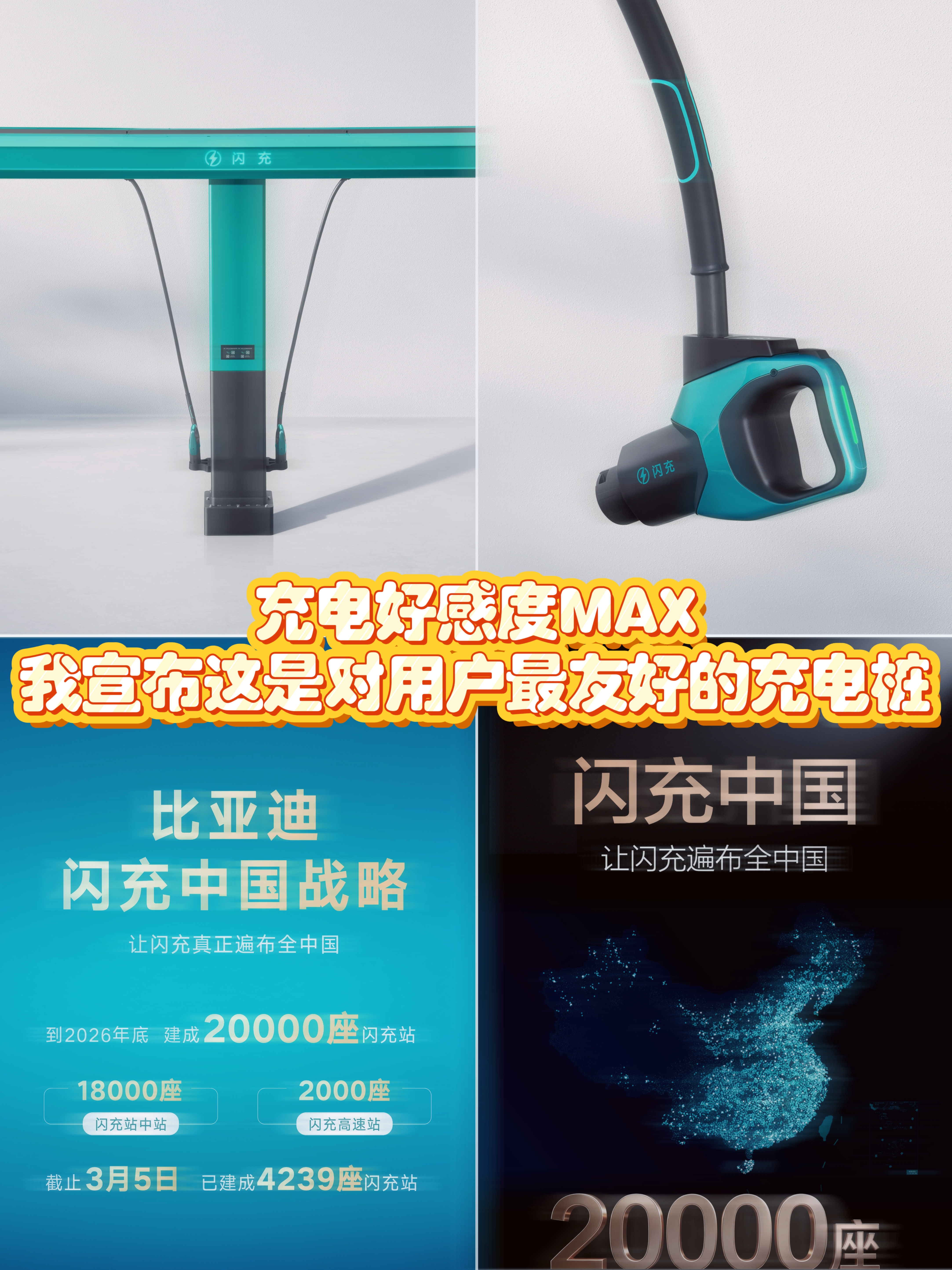 充电好感度MAX,我宣布这是对用户最友好的充电桩 作为一名普通新能源车主,真的被比亚迪这次的技术和细节狠狠戳中了! 最近刚关注到比亚迪第二代刀片电池+闪充技术正式发布,硬核闪充技术树立行业新标杆,实测常温5分钟就能充好、9分钟充饱,就算零下30度低温,也只多花3分钟,充电速度直接刷新我认知。 最打动我的不只是快,而是全程都在为用户考虑。零重力充电枪轻手好拿,滑轨设计不脏线不脏手,即插即充不用操作手机,多车一起充速度也不打折,补能体验太舒服了。 而且“闪充中国”战略很实在,全国闪充站密集布局,高速站五一前就能用上,再也不用愁找桩排队。比亚迪、腾势等多品牌车型都能适配,闪充车主还能享一年免费闪充,对车主真的够贴心。 真心觉得,这才是新能源车主想要的、对用户最友好的充电方式~