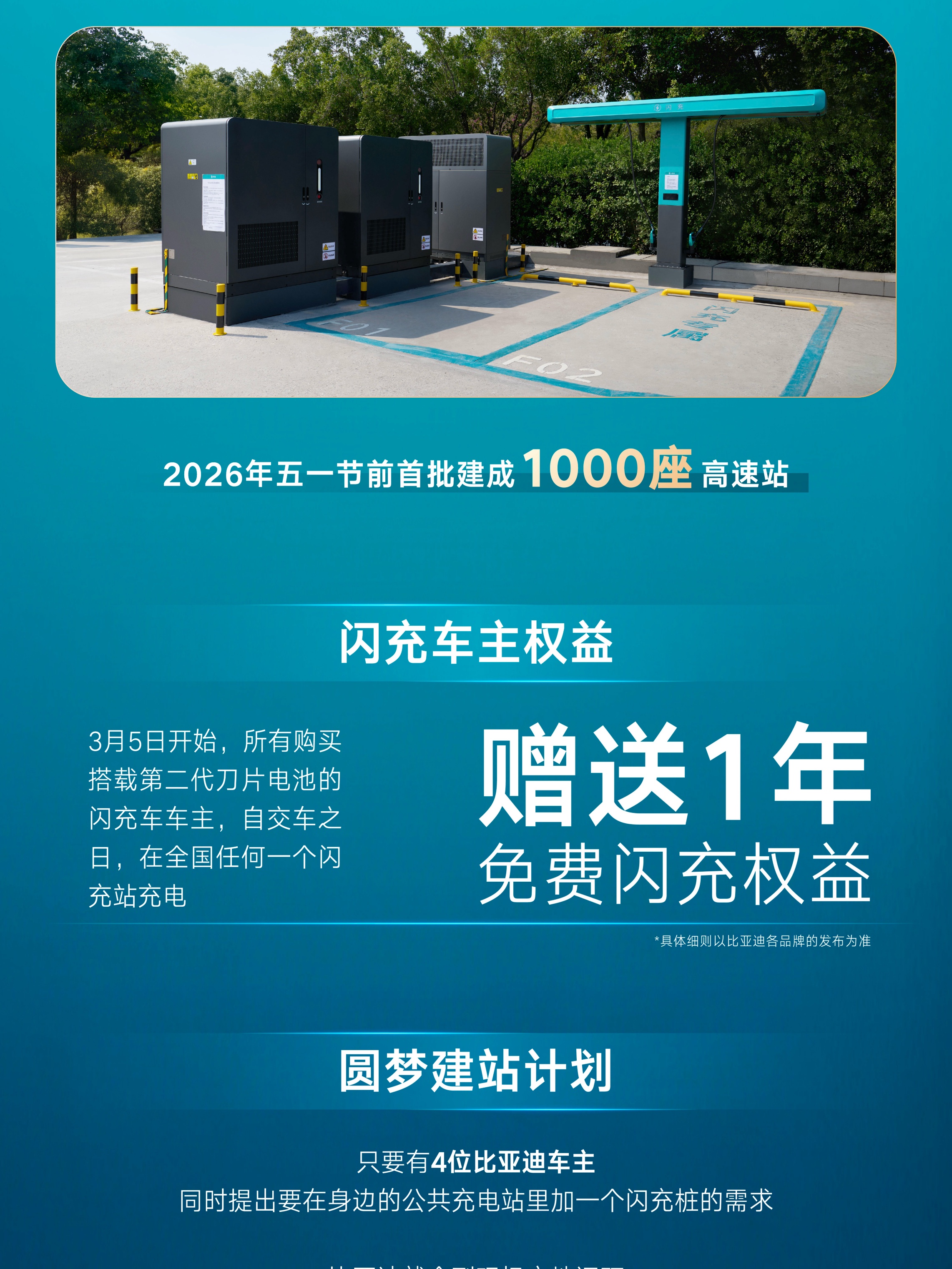 充电慢、低温充电难,长期制约着新能源汽车行业发展。2026年3月5日,比亚迪在深圳举办“闪充中国 改变世界”发布会,重磅推出第二代刀片电池与闪充技术,硬核闪充技术树立行业新标杆,正式开启新能源汽车闪充新时代。 比亚迪第二代刀片电池是动力电池领域的革命性突破,重新定义了全球领先动力电池标准。常温下,电池从10%充至70%仅需5分钟,充至97%只需9分钟,充电速度媲美加油。即便在零下30度极寒环境,充电效率也几乎不受影响,彻底解决用户充电焦虑。同时,电池能量密度较第一代提升5%以上,搭载该电池的腾势Z9GT续航可达1036公里,实现闪充与长续航双重突破。 依托“锂离子高速通道”与“全温域智能热管理系统”,第二代刀片电池有效降低充电产热,散热均匀且不影响电池寿命。比亚迪还升级电池质保政策,容量保持率提升2.5%,电芯终身保修,为用户提供全面安心保障。 为支撑闪充技术落地,比亚迪研发出单枪功率1500kW的全球量产最大功率闪充桩,搭配超级快放储能系统,突破电网限制且不损害电网。创新的滑轨悬吊式T型桩设计,让充电枪轻巧不缠绕,配合闪充APP实现即插即充、无感支付,带来极致便捷的充电体验。 与此同时,比亚迪启动“闪充中国”战略,计划年底前建成20000座闪充站,实现各级城市高效覆盖,同时打造2000座闪充高速站,覆盖近三分之一高速服务区,构建全域便捷补能网络。 从技术突破到生态布局,比亚迪以硬核实力攻克行业难题,硬核闪充技术树立行业新标杆,推动中国新能源汽车迈入全新发展阶段,以中国智造引领全球电动化浪潮。