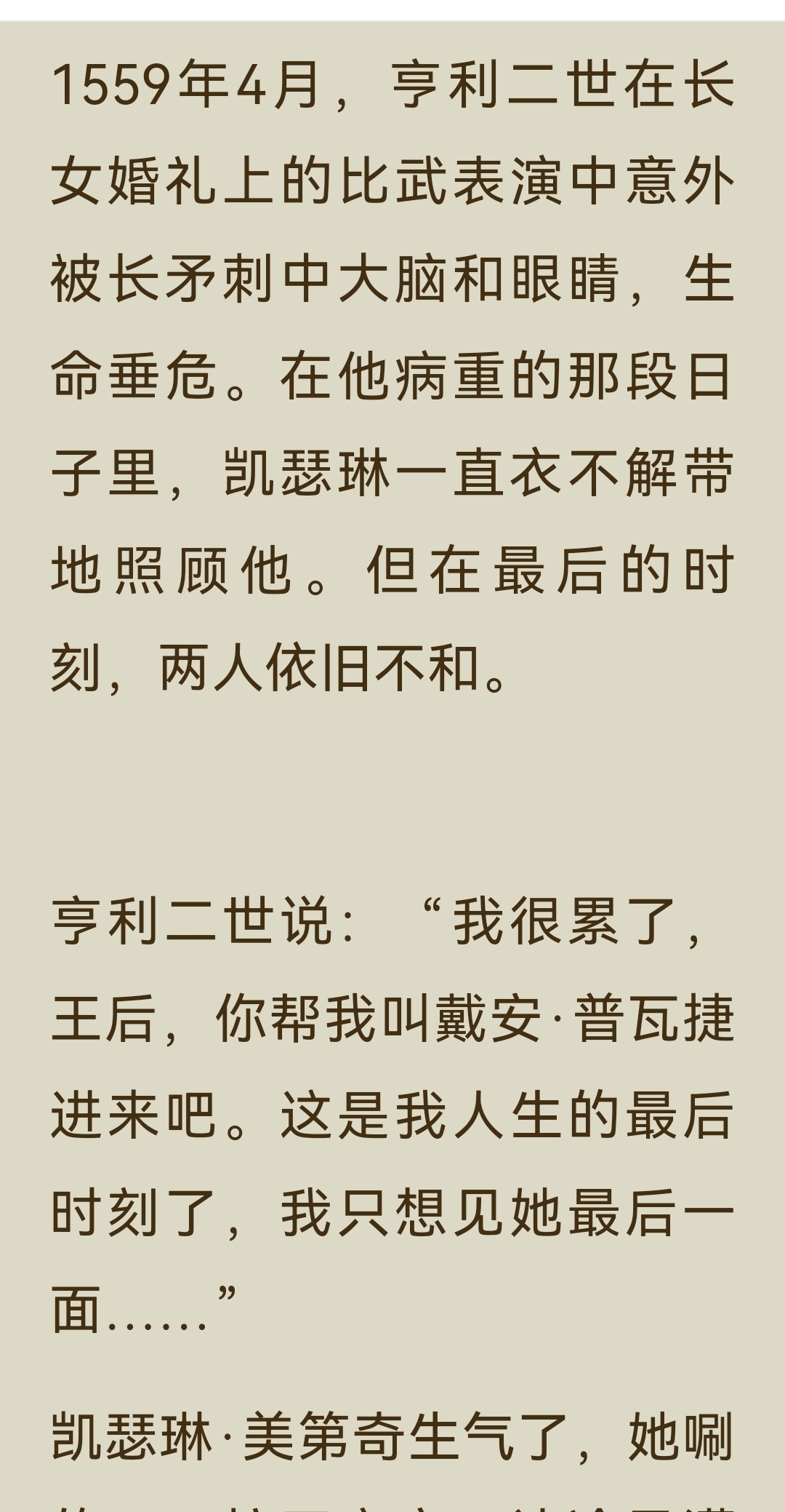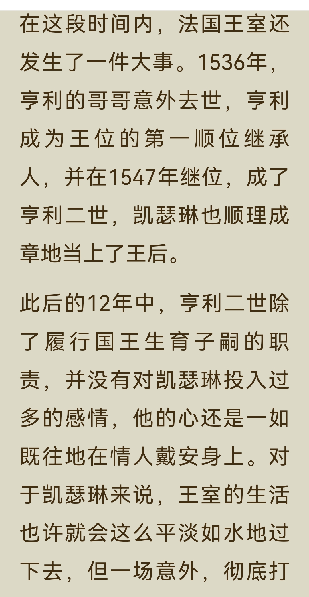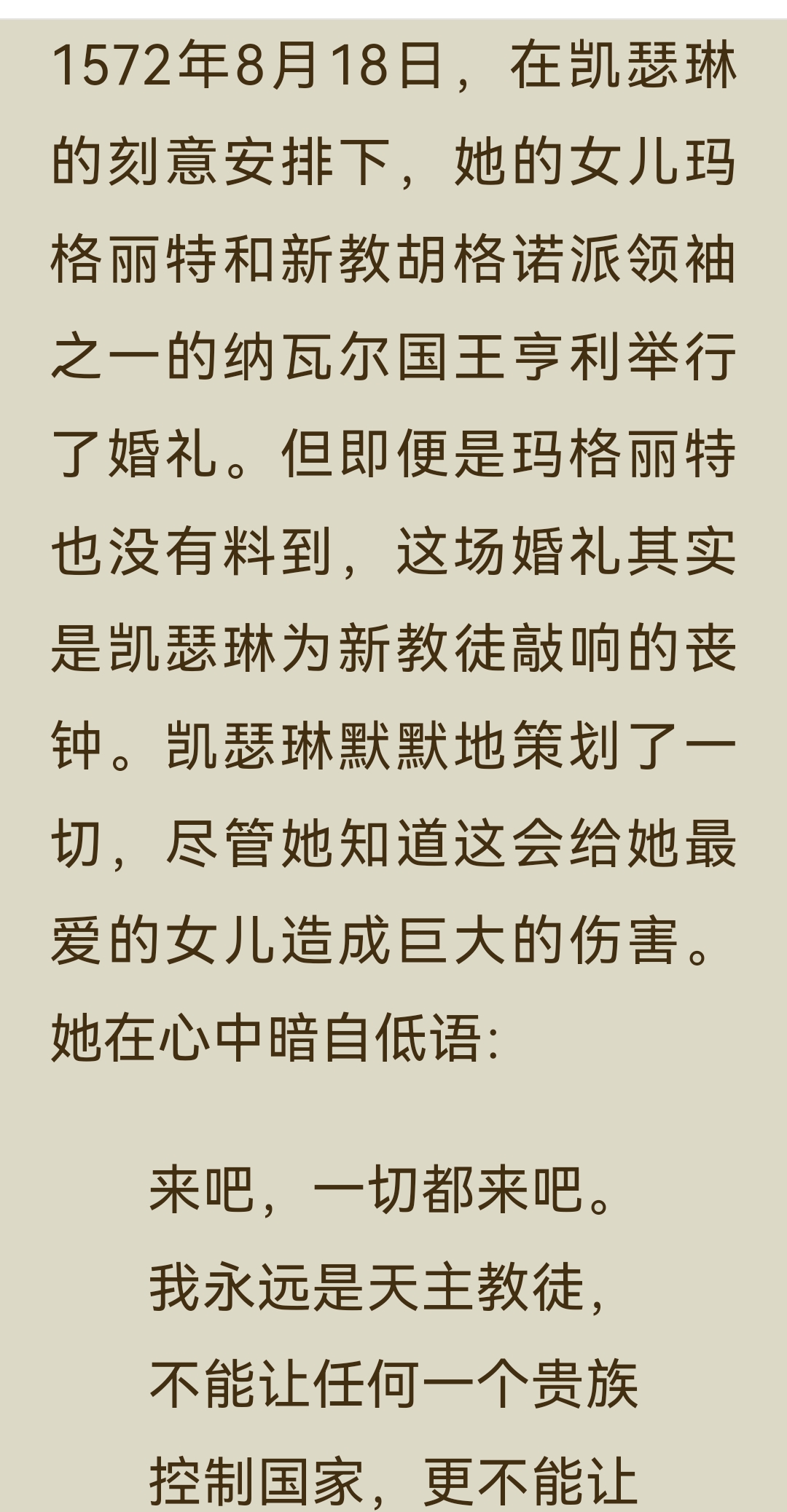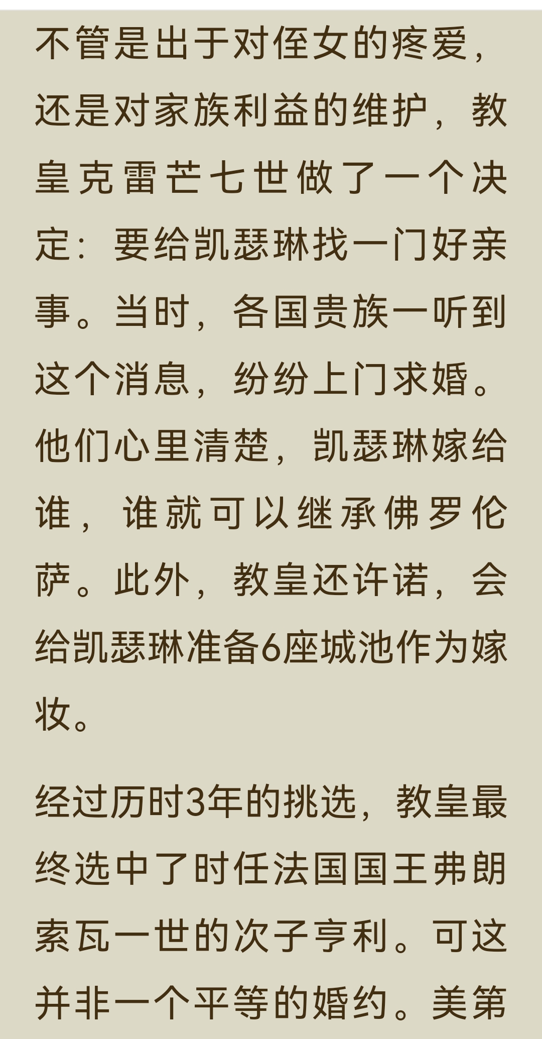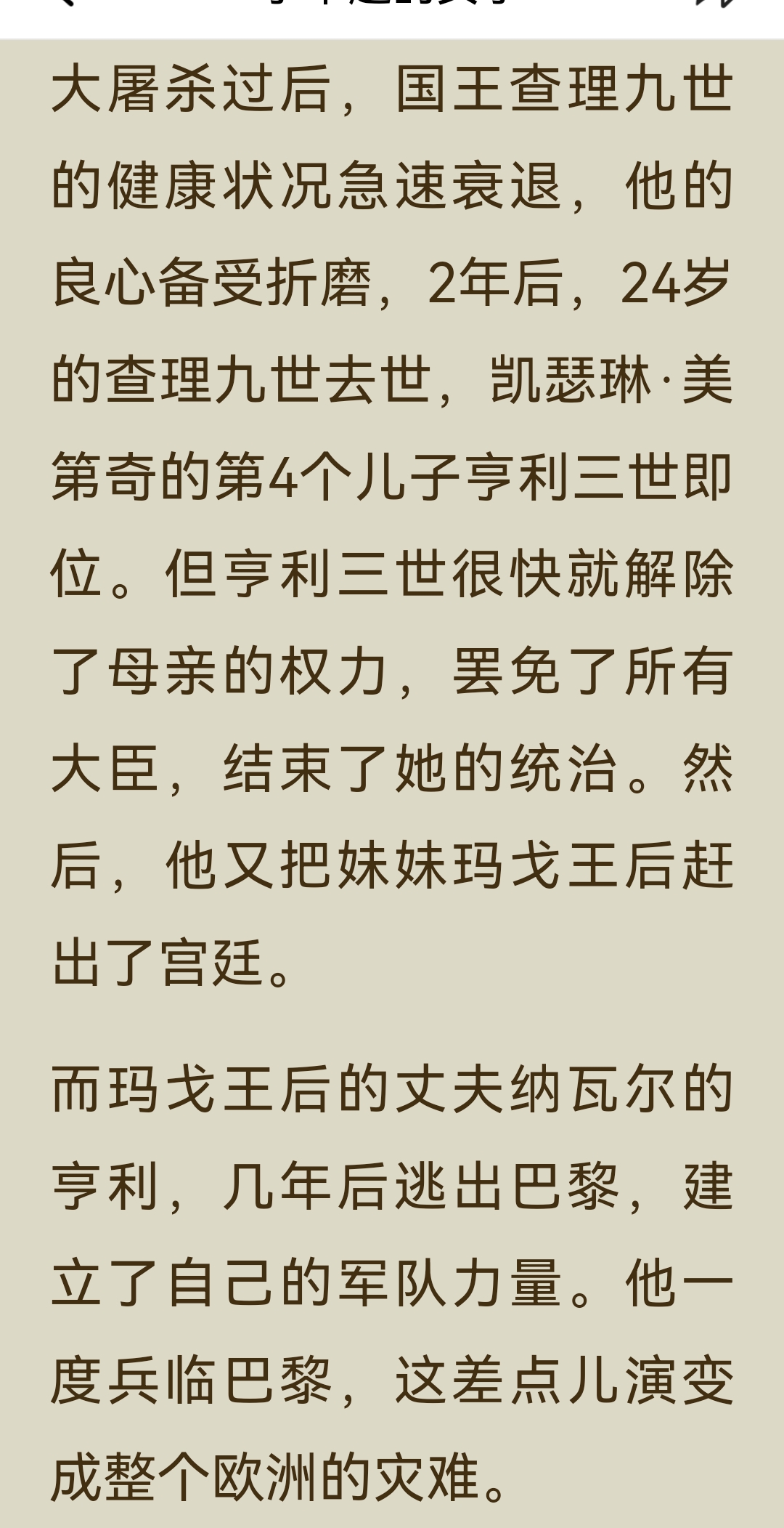 《了不起的女子》“气场篇”中“凯瑟琳·美第奇”一节,讲述了这位从佛罗伦萨落魄孤儿到法国“毒蛇王后”的传奇一生: 一、主要内容 1. 从孤儿到王后 凯瑟琳出生不久便父母双亡,8岁时被家族对手劫为人质,在修道院软禁3年。后来,她作为美第奇家族的联姻棋子,嫁给法国王子亨利。婚礼上,为了在气势上压倒丈夫的情人戴安,她定制了10厘米的高跟鞋,惊艳全场。婚后,亨利对她十分冷淡,心有所属的戴安却成为她在宫廷中唯一的突破口,凯瑟琳用佛罗伦萨的美食和精致餐具打动了戴安,最终在其劝说下,亨利与她生育了10个子女。 2. 摄政与铁腕统治 1559年,亨利二世在比武中意外身亡,凯瑟琳以太后身份摄政,成为法国实际的掌权者。面对宗教与政治的动荡,她手段狠戾,策划了针对新教徒的“圣巴托洛缪大屠杀”,因此被称为“毒蛇王后”。她的两个儿子先后继位又早逝,连续的丧子之痛和尖锐的社会矛盾,让她的统治愈发残酷。 3. 时尚与艺术的推手 尽管政治手段备受争议,凯瑟琳却对法国的文化与时尚影响深远。她推广了尖头穆勒鞋、束胸衣等时尚单品,将意大利的美食、餐具和艺术品味带入法国宫廷,为法国成为“文化、时尚与艺术之都”奠定了基础。她资助了米开朗琪罗、达·芬奇等艺术大师,推动了文艺复兴在欧洲的传播。 二、阅读体会 真正的气场,是在绝境中学会生存,在权力中懂得取舍的清醒与狠绝。 她的一生都在权力的漩涡中挣扎:童年丧亲、沦为棋子、婚姻不幸、丧子之痛……但她从未被命运打垮,反而在一次次危机中淬炼出钢铁般的意志。她用高跟鞋打破身高的限制,用美食撬开情敌的心扉,用铁腕手段稳固统治,每一步都走得精准而决绝。 凯瑟琳用一生证明:即使出身不由己,命运也可以由自己改写;即使身处绝境,也能凭借智慧与决心,将一手烂牌打出王炸。而她对艺术与时尚的推动,更让我们看到,权力之外,审美与品味才是一个人留给世界最持久的印记。