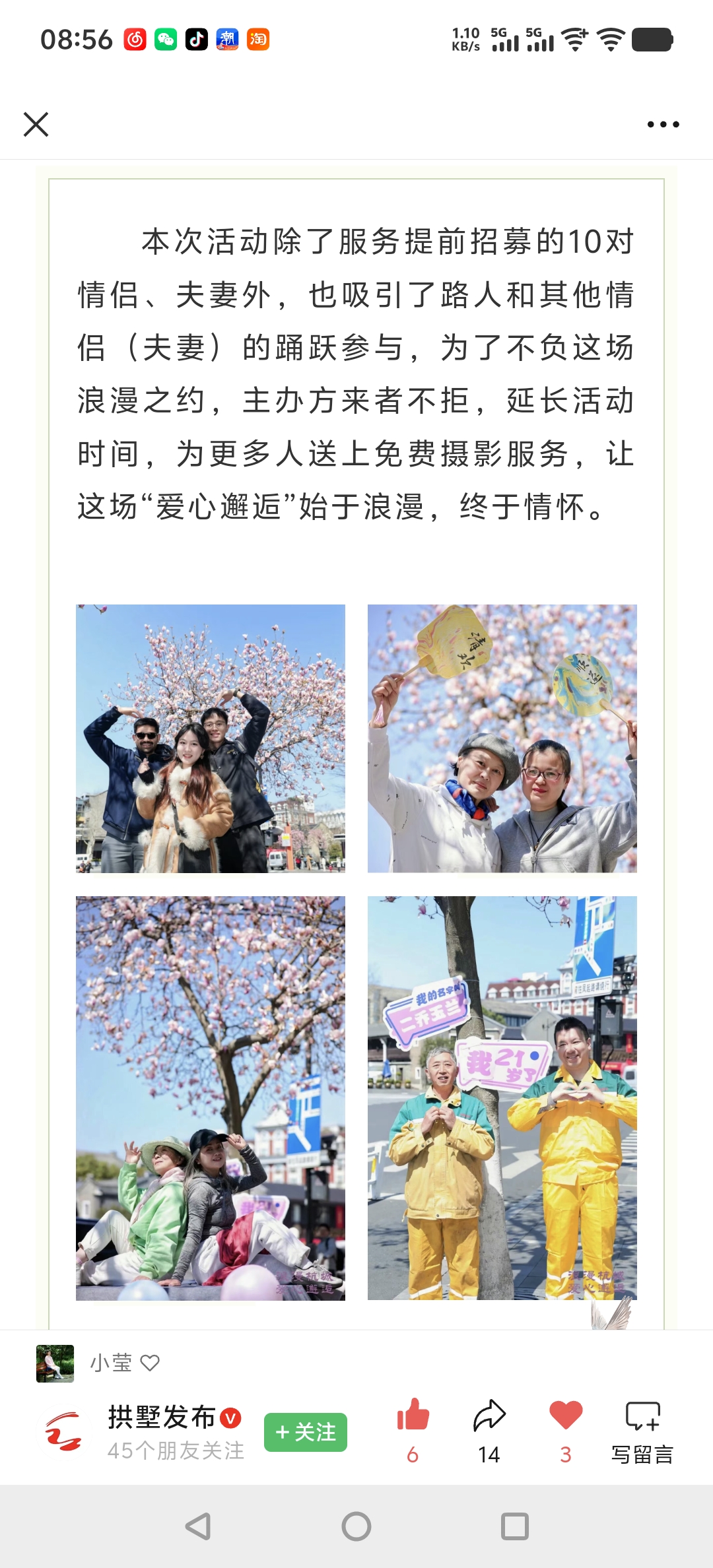 近日,武林路六公园车站旁,那棵漂亮的爱心玉兰花树又开花。时光匆匆又是一年玉兰花开的季节。去年在此棵树下,曾经参加过玉兰树下的爱心活动,回首往事,历历在目。祝福潮新闻所有的女性小编老师与潮友们:节日快乐!平安喜乐!🌹🌹🌹