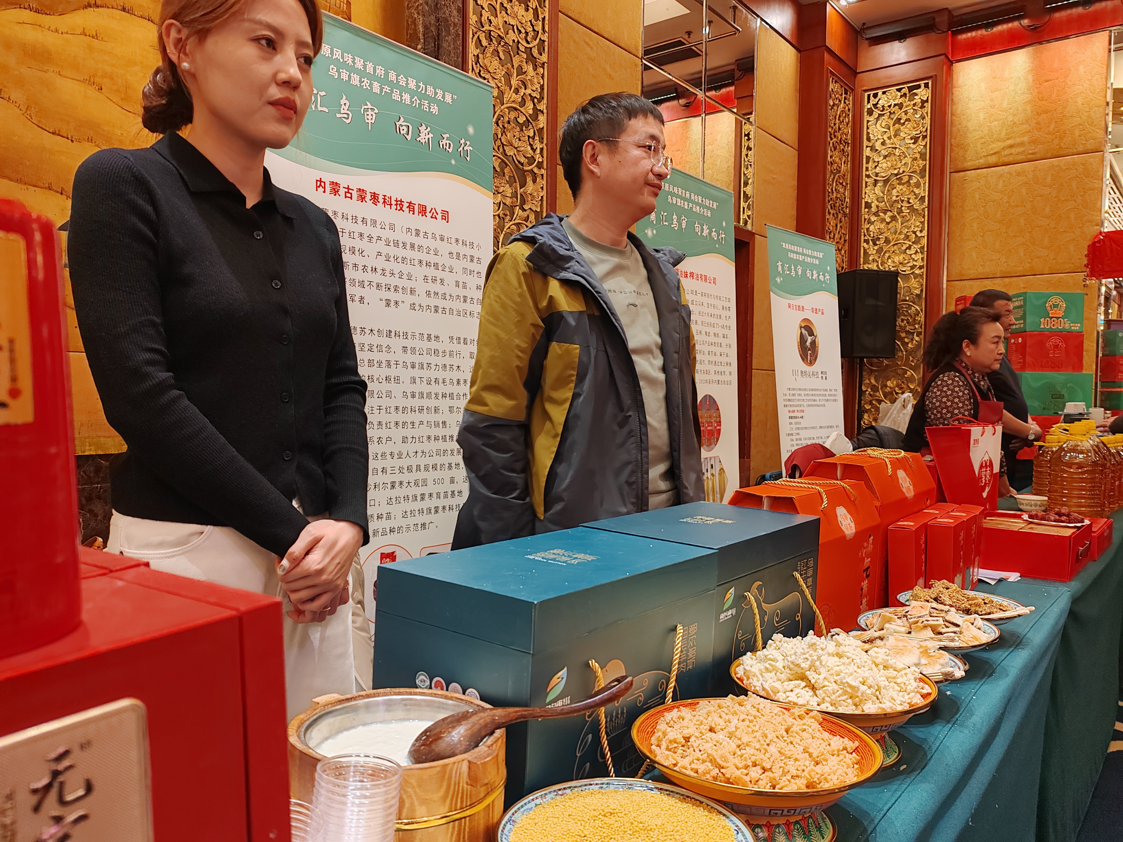 乌审旗红枣展台前,红蓝礼盒撞色太上头!现场试吃停不下来~