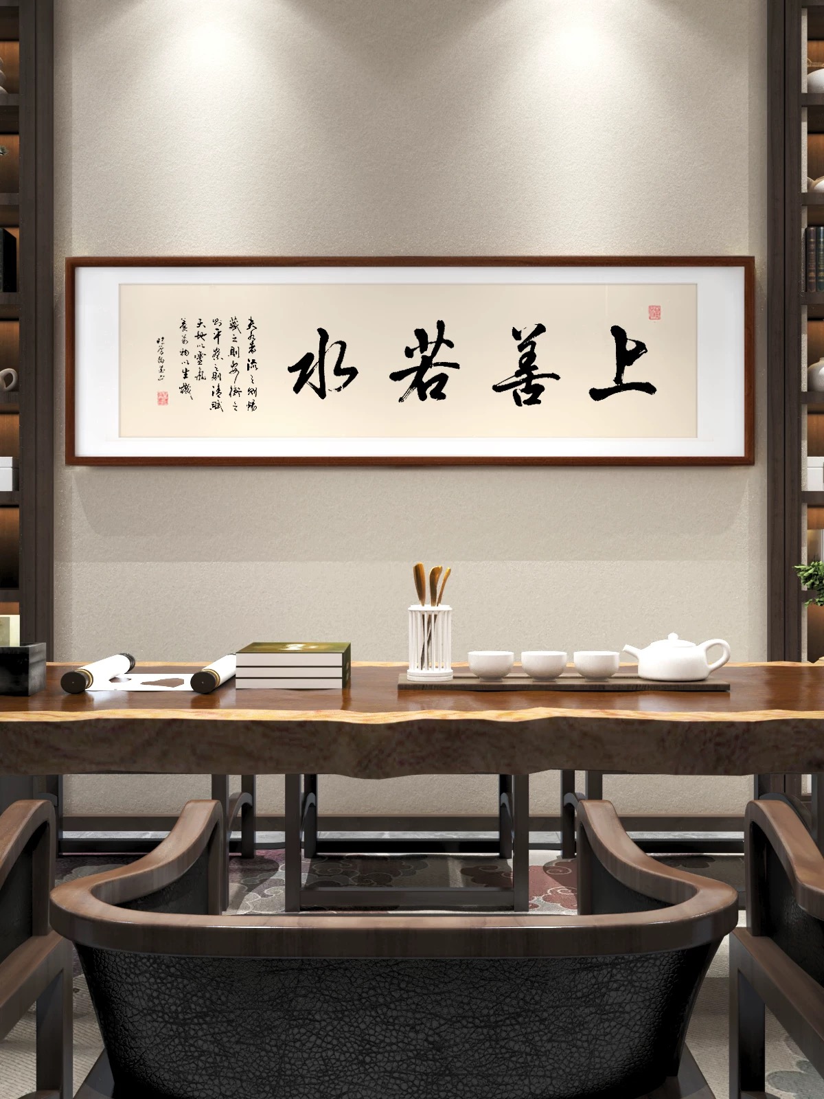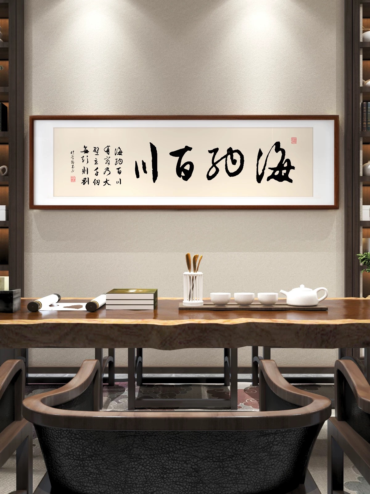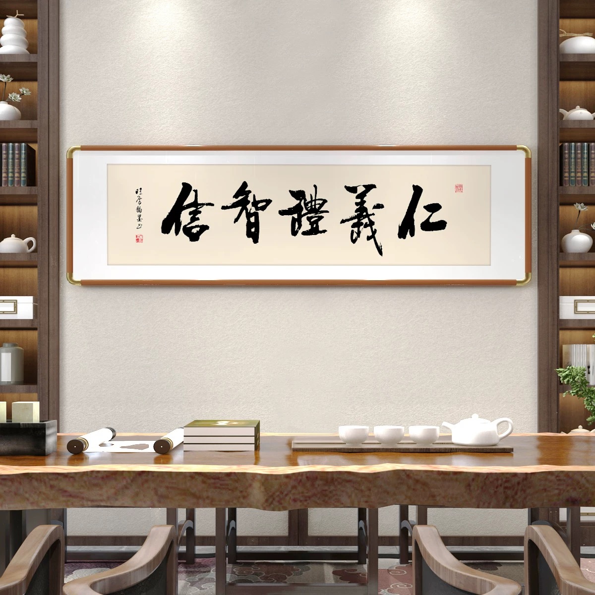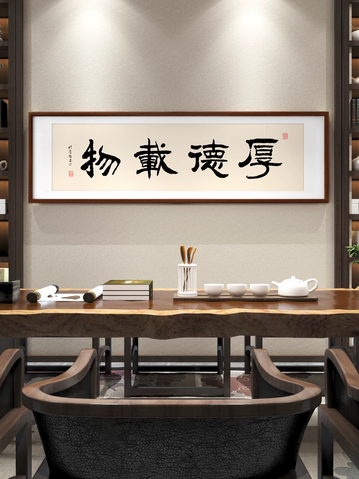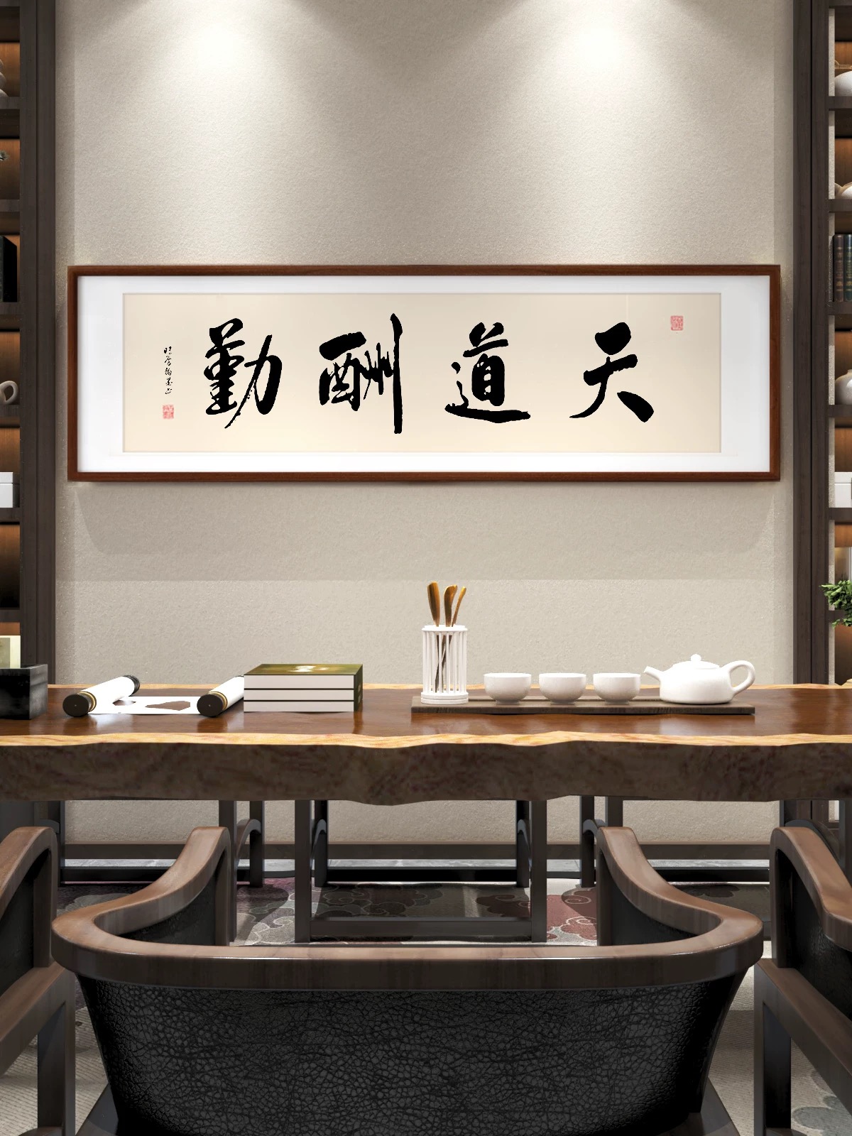 墨香里的修身与处世 推开书房的木门,暖光漫过原木长桌,茶烟袅袅中,几幅书法横幅静静悬于素墙,似在低语千年的处世哲思。 “仁义礼智信”的墨字苍劲如松,笔锋里藏着儒家五常的温度。仁是推己及人的慈悲,义是坚守正道的脊梁,礼是分寸得宜的谦敬,智是明辨是非的清醒,信是言出必行的厚重。它们如五颗明珠,串起为人立世的底线,在茶香里沉淀为心底的标尺——待人需怀仁心,行事当守义理,举止循礼,思虑求智,承诺守信,这五者相融,便织就了人格的底色。 “厚德载物”的隶字宽博敦实,似大地承载万物。德的厚度,在于包容与担当:能容他人的过错如容山川的起伏,能担生活的重量如担天地的辽阔。就像桌上白瓷茶具,以素净之姿盛载茶汤的温热,人也需以厚德为器,盛下岁月的馈赠与风雨的洗礼,在承载中拓宽生命的疆域,让格局如天地般宽广。 “天道酬勤”的行字笔势流畅,藏着奋斗的韵律。天道不欺,勤者得其馈赠。案头的书卷、卷轴,是勤的见证;茶盏里的水汽,是汗的凝结。每一滴汗水落进时光的土壤,都会滋养出成功的花。勤,是凿穿困境的铁锤,是照亮暗夜的灯盏,只要步履不停,岁月终会以丰盈回报这份执着。 “上善若水”的行书灵动飘逸,如水般柔而能容。水处下而不争,却能穿石润物;人若如水,便懂谦逊藏锋,以柔克刚。遇山则绕,遇洼则聚,不逞一时之勇,却能以柔韧的力量改变格局。就像茶席间的绿植,静默生长,却以生机点缀空间;人若修得水的品性,便在喧嚣中守一份宁静,在刚硬世道里存一份柔和。 “海纳百川”的草书气势开张,如沧海容纳百流。海的胸怀,在于无分别心:江河湖海,无论清浊大小,皆可归之。人若能纳百川,便容得下不同的声音、各异的境遇,在多元中汲取养分,在包容中成就博大。就像书房的书架,容纳古今典籍、中外智慧,心若如海,便有了无限的可能。 “知行合一”的字体端庄稳重,是王阳明的哲思结晶。知是行之始,行是知之成。茶道里的每一个动作——温杯、投茶、注水、出汤,都是知的践行;读书时的思索、领悟,是行的开端。知而不行,如纸上谈兵;行而不知,如盲人瞎马。唯有将认知与行动相融,让道理落地生根,让行动饱含智慧,生命才能真正抵达远方。 茶烟渐散,墨香萦绕。这些字画,不止是装饰,更是精神的灯塔。在茶席的氤氲里,在书卷的墨香中,我们与古圣先贤对话,于修身处见仁礼,于处世时悟包容,于奋进中惜勤奋,于心性上修柔善,于格局中拓胸怀,于知行间求真理。书房的时光,便在这一墨一茶间,沉淀为生命的厚度,指引我们在尘世中,走出一条温润而坚定的路。