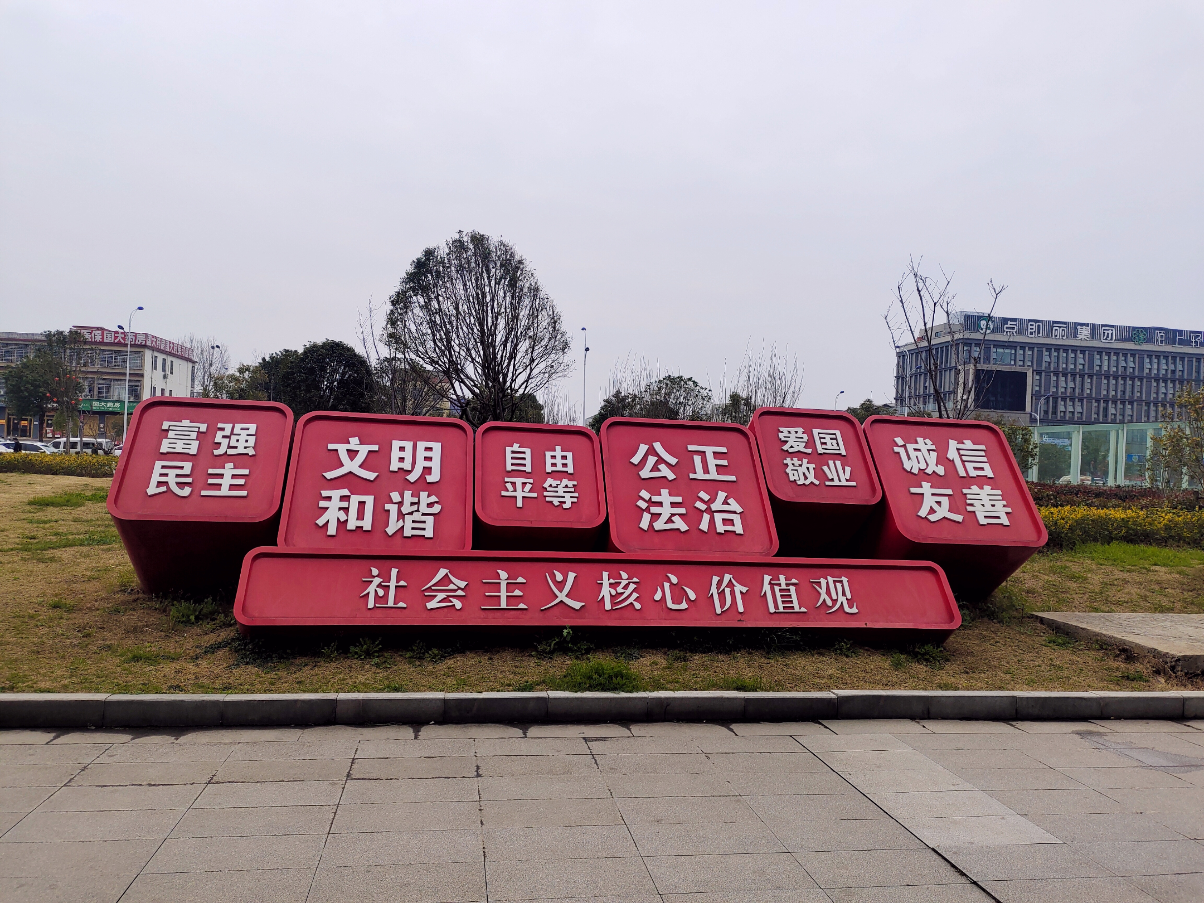 广场遛弯偶遇红牌蓝调,现代建筑旁的绿意里藏着24字中国答案~📸