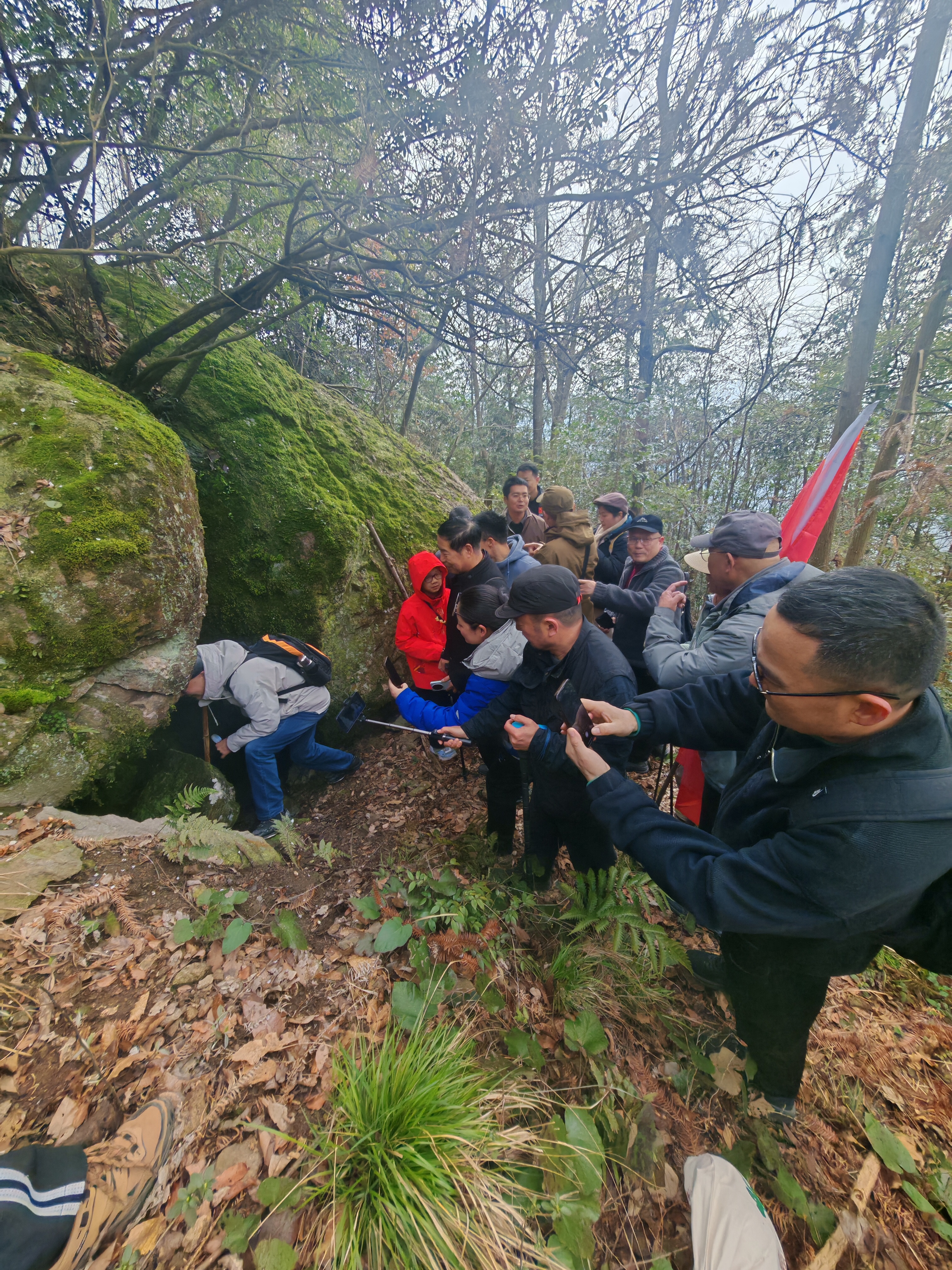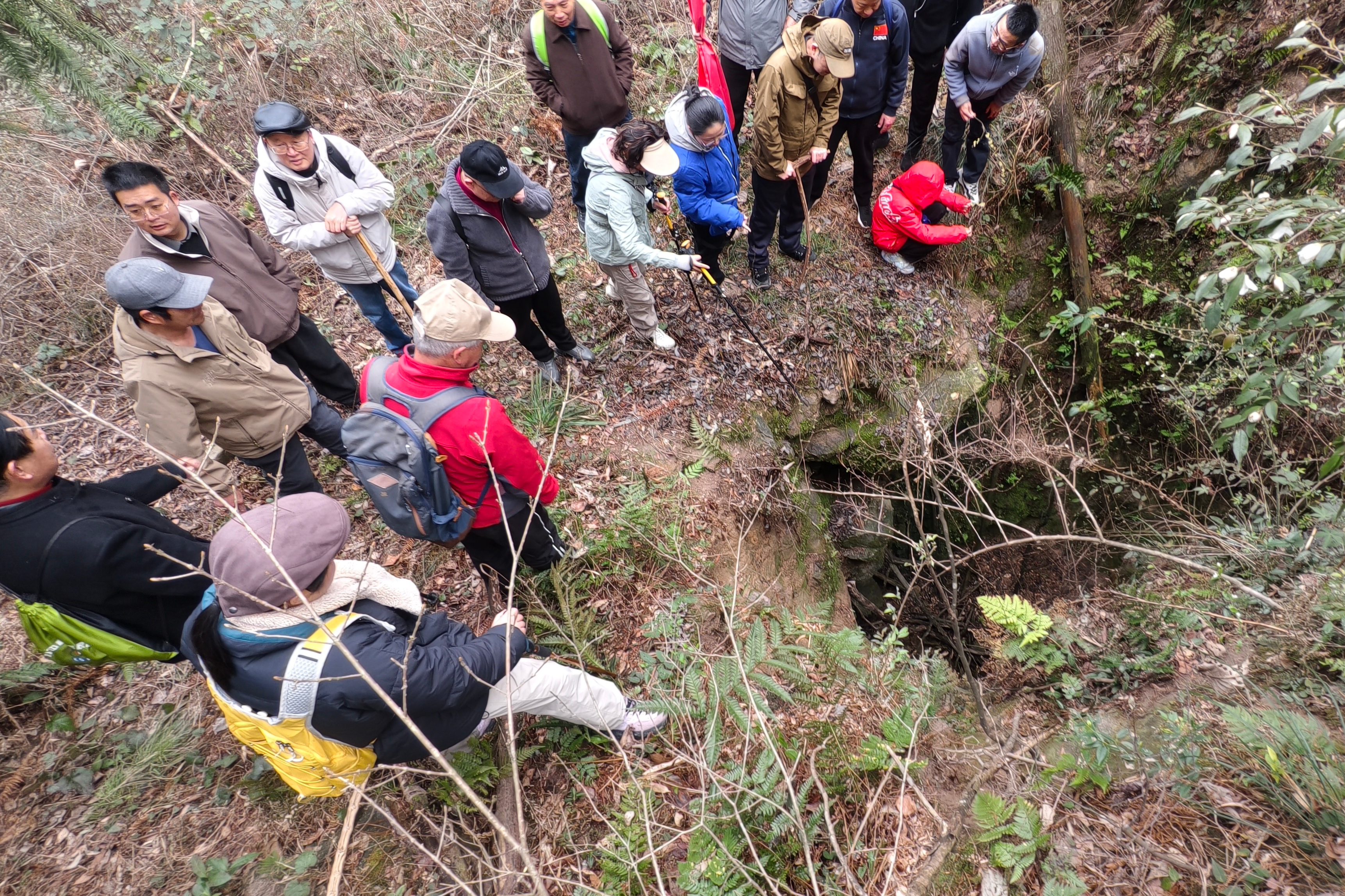 义乌赤岸神秘洞穴惹人醉 文/王曙光 朱天平 摄影/郑小平 王军生等 春暖花开,前往义乌赤岸镇踏春和旅游的人逐渐多了起来。人们经意和不经意间到鱼曹头村踏足鱼曹岭古道,探访红豆杉古树群和义南红军指挥部旧址等红色遗存,以及寻觅深藏山中的“火山口遗址”,直呼玩得太过瘾了。 “火山口遗址,实为两个规模罕见的断层洞穴。”3月7日中午,鱼曹头村的村委委员朱光辉告诉我们。 百闻不如一见。当日上午从鱼曹头村一山洞起步,鱼曹头至晓峰村的古道蜿蜒起伏,穿越义乌国际登山健身游步道,俯瞰群山环抱,约个把小时,即来到该镇东南部大岩头群山中的偏僻处,一幽深洞穴便展现在眼前。只见该洞口宽度约7米左右,洞头垂直向下,垒石重叠,洞内幽深,探明深度约有20米。当地老人说,洞内温度常年保持在20摄氏度左右,湿度略高,气流不明显,总体深度尚不清晰。 据村民相传,鱼曹头村天仙井(也称天井坪)古时并非如今的无水洞穴,而是一口天然天成、清泉不竭的天井,井水则清冽甘甜,滋养着山间生灵。有三姐妹在此处牧羊,其中一个女孩不慎跌入井中,其他两位姐妹相继救援也不幸坠入遇难。三姐妹生死相守的故事在鱼曹头村代为流传,乡民有感于她们姐妹情深、情义坚贞,感念这份跨越生死的亲情与坚守,便将此地尊为神圣之地,敬称三姐妹为“天井夫人”。岁月流转,天井不知因何渐渐干涸,最终化作如今无水的幽深洞穴…… 传说毕竟是传说,但三姐妹坚贞不渝的亲情故事却深镌在这片土地上,成为最动人的乡土记忆,也让天仙井的地质秘境,多了一抹温暖而厚重的人文底色。每逢正月十六,祭拜仪式亦从未中断。 “另一断层洞穴,就在毗邻的岩石壁峭周围。”在村民的引领下,来到这里,发现它是一个水平延伸的洞穴,外面树木苍翠,洞口气流明显,宽约2米,高1.4米,常年温度在20摄氏度左右,洞内相对湿度约有95%,冬夏湿度变化不大,洞口植物常挂水珠。细细观察,现洞口有一块落石,但不影响进入洞穴,行进约十至二十米,有倚卧在穴道地步的巨石,仅左侧留有一狭窄通道可以过人,据说内部有一处略宽,可容纳多人,但具体深度和走向并未探明。 在现场,我们意外发现,周围一悬崖峭壁刻有“火山口”三字。峭壁高约80米,字体雄浑有力,为魏碑体,每字一米见宽,却未署名。“火山口”题写的历史真相,当地村民也不得而知。 但据知情者说,多年前省勘测部门曾到此勘测,较为明确的结论是,该两处断层洞穴由直冲和横冲两个恒温恒湿洞穴组成,系大规模断层交汇、地壳运动形成,洞口裂隙面特征鲜明,常年有清风涌出,且常年保持20摄氏度左右的温度,推测洞穴内部互通相连。义乌整体地质结构稳定,传统认知中极少存在火山地貌,但此处独特的地质构造、岩石形态与地层特征,在浙中地区实属罕见,为研究区域地壳运动、地质演化历史提供了珍贵的实物样本。 鱼曹头村,坐落于义乌、永康、东阳三地交界处,风光旖旎,胜迹遍布,素有“义乌小庐山”之称。这里平均海拔达500米,常年云雾缭绕,负氧离子充盈,不仅保留着原始的自然生态与古朴的村落风貌,更因近期引发关注的“火山口遗址”而备受瞩目。这片土地,既是革命火种燃起的红色热土,也是地质奇观与民间传说交织的神秘之地,正以其独特的综合价值,迎来文旅融合与乡村振兴的新契机。 有识之士认为,从旅游价值来看,鱼曹头村具备打造复合型旅游目的地的潜力。游客既可重走红军路,瞻仰革命旧址,感受信仰的力量;也可探秘洞穴,徒步古道,体验自然之奇。结合传统经济作物如生姜、李子、板栗的采摘,乡村竹编工艺展演,农家乐餐饮体验等,可发展“红色研学+地质探秘+生态农旅”的多元旅游模式,吸引来自世界各地的不同客群。 此外,在科普价值方面,该两个规模罕见的断层洞穴是天然的地质课堂,适合开展中小学研学活动,直观展示断层、裂隙、恒温洞穴等地理知识。而红色遗址则可作为党史教育基地,传承革命精神。二者结合,形成“自然+人文”的双科普体系,提升村庄的文化厚度。 期待义乌赤岸鱼曹头村在确保地质安全与生态原貌的前提下,“一红一奇”“红绿融合”交相辉映,将这片深山秘境打造为集红色教育、地质科普、生态旅游于一体的乡村振兴示范村。