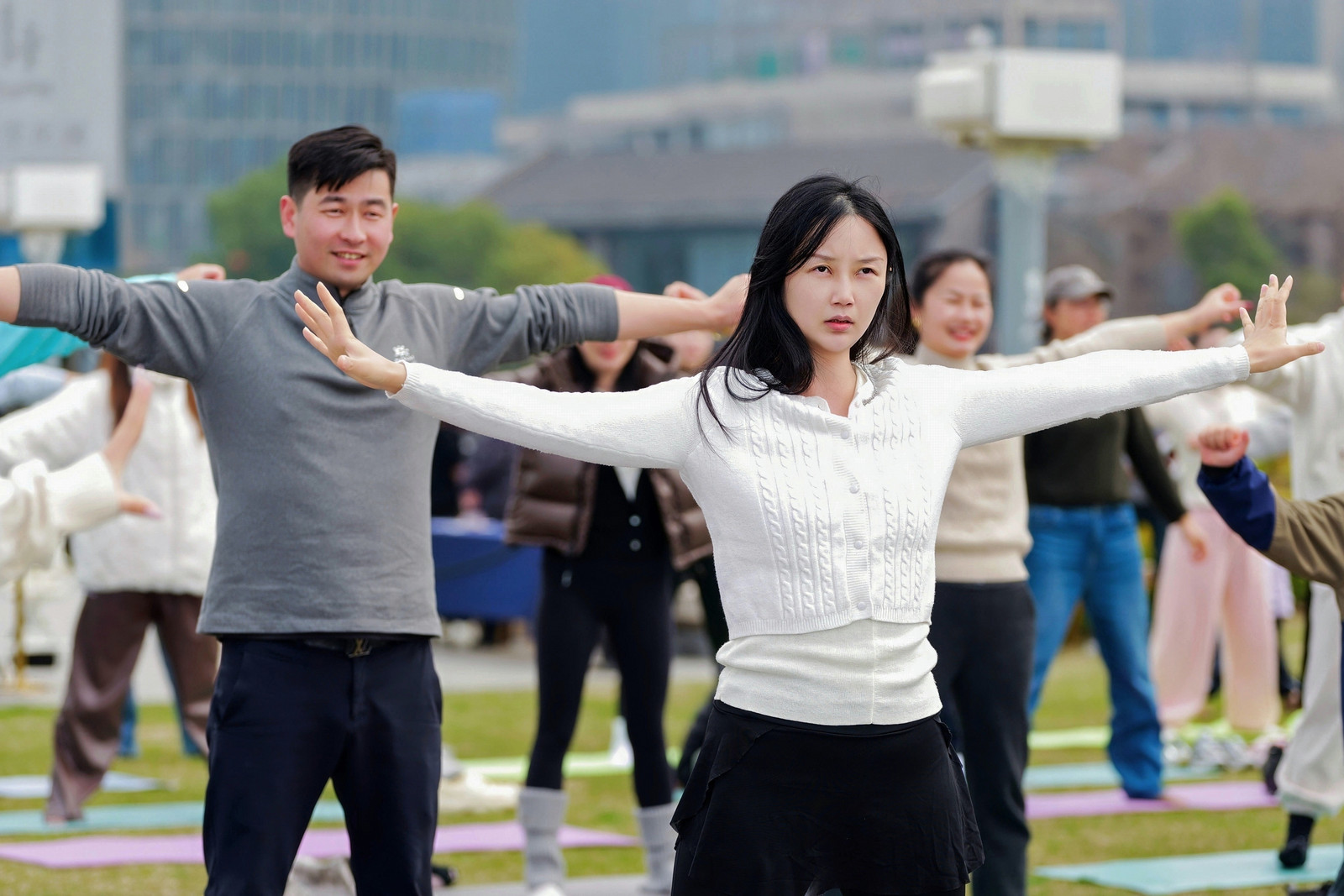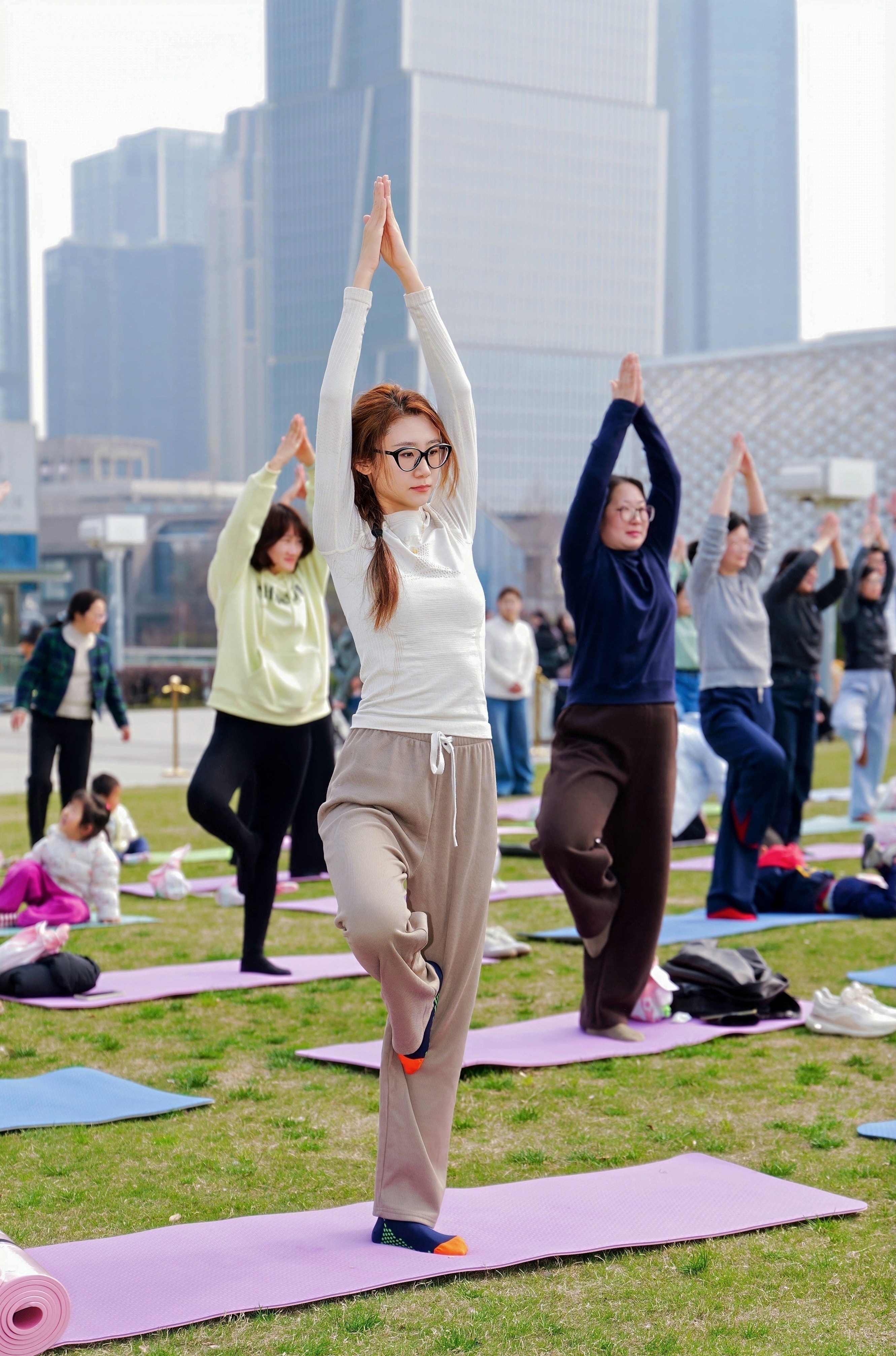 #百人瑜伽# #唤醒身体里的春天# 3月8日,由钱江世纪公园、盈丰街道潮韵社区联合星佩乐健身专业团队主办的“唤醒身体里的春天”暨三八国际妇女节百人瑜伽疗愈活动在钱江世纪公园草坪圆满举行,近百名市民热情参与其中。 活动现场,参与者年龄跨度广泛,上至80岁白发长者,下至7岁孩童,大家在专业教练引导下,于青草之上舒展身体,在一呼一吸间感受春日生机与自然美好。蓝天白云相伴,春风绿草环绕,钱江世纪公园优美的春日环境,为整场活动增添了惬意与温馨。 此次活动将自然疗愈与社区服务相结合,既丰富了居民精神文化生活,也让大家在公园宜人春光中舒缓身心、重拾平衡,赢得了现场参与者的一致好评。