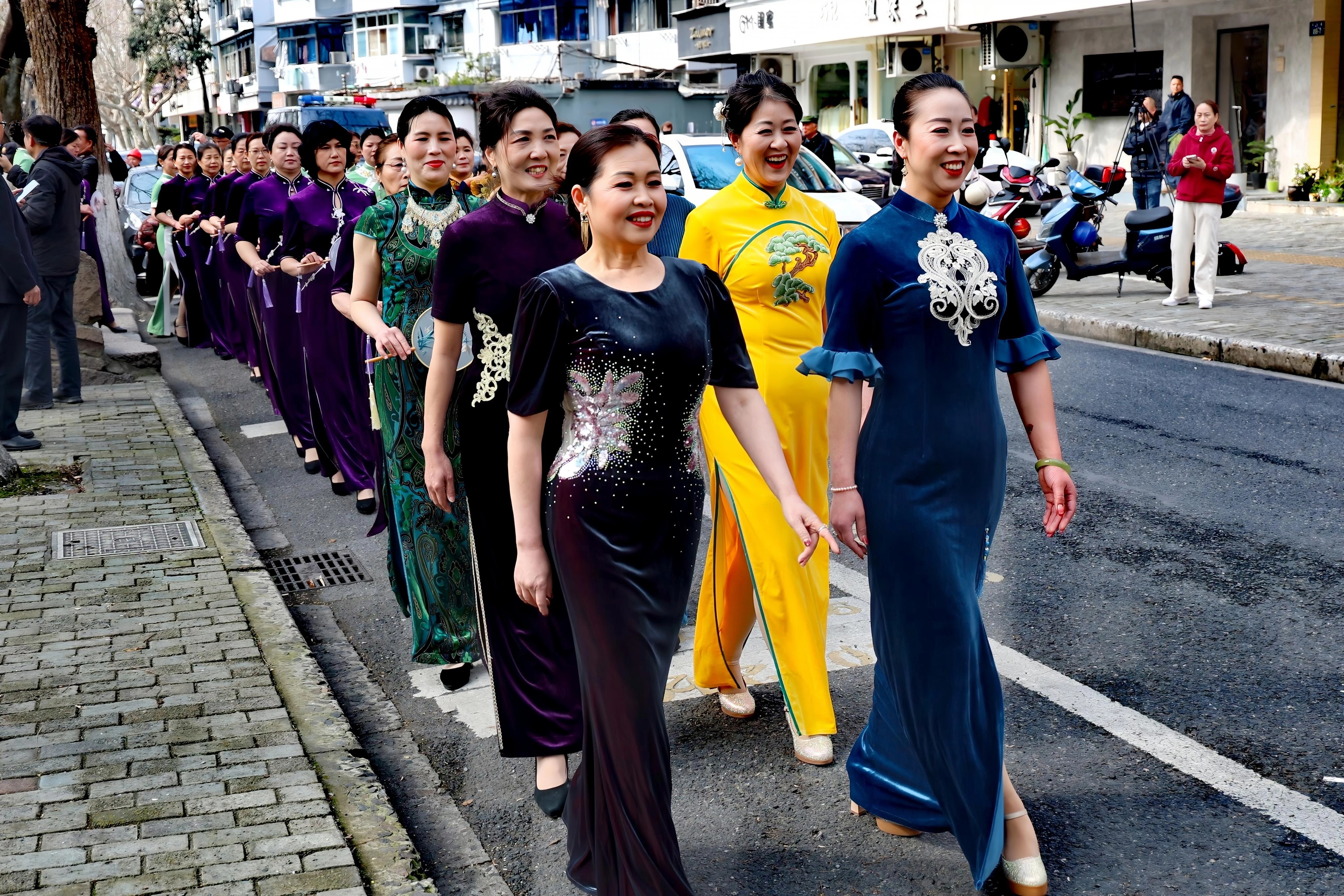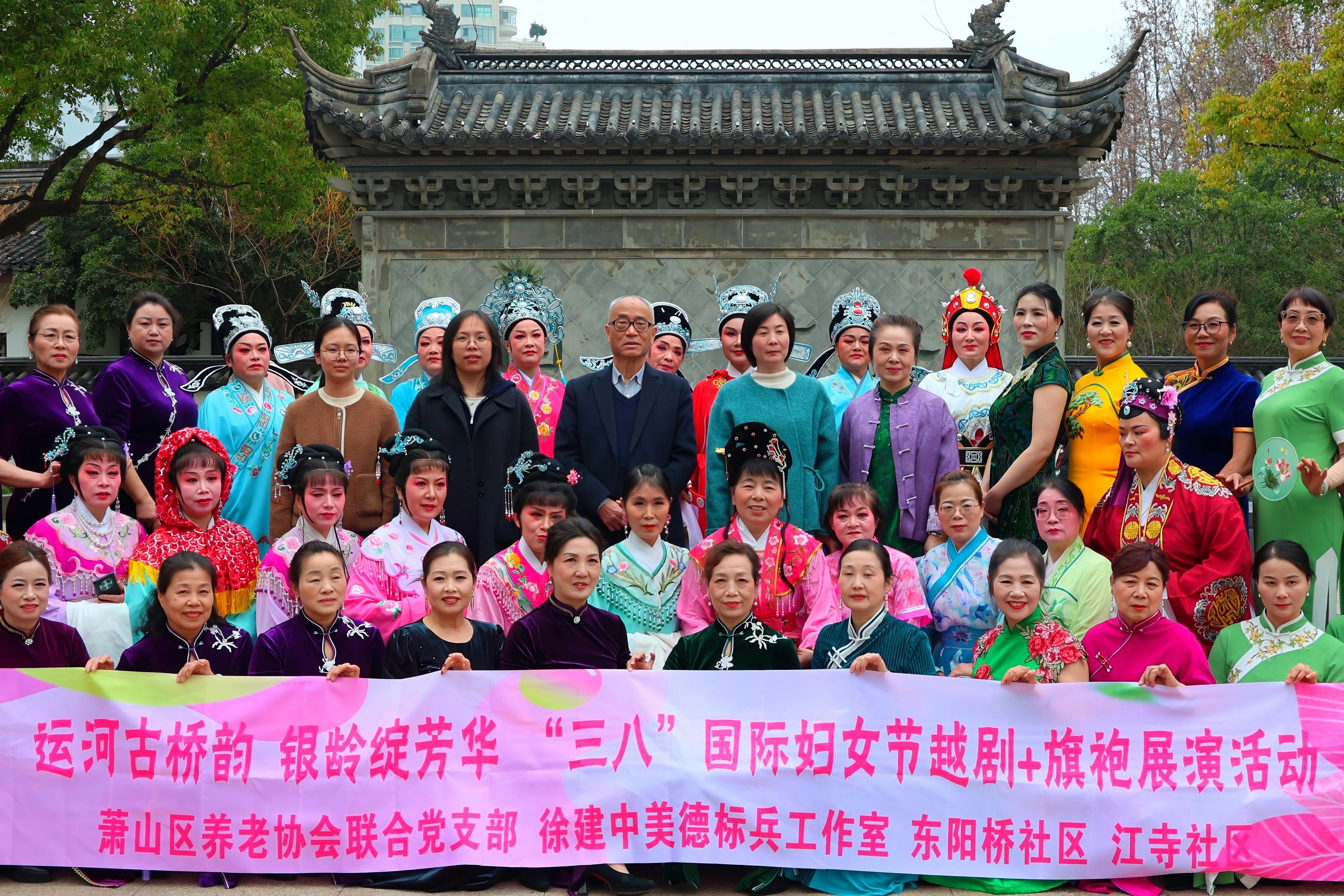 运河古桥韵,银龄展芳华 3月8日,萧山区养老协会联合党支部、徐建中美德标兵工作室、东阳桥社区、江寺社区为庆祝“三八”国际妇女节,在浙东运河萧山城河段联合举办越剧+旗袍展演活动。[强][强][强]