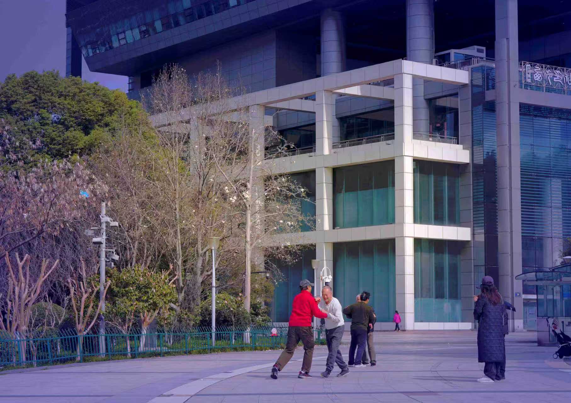 杭州文化广场轮滑训练健身之二: 杭州大运河畔西湖文化广场成为市民早锻炼~健身的乐园。 运河两岸环境按市政府早年要求改造后,增添不少健身运动器材,学生体育课的单杠双杠也安置上了,喜见周边市民男女老少皆在此运河畔训练,成为杭州宜居城市独特的风景线。 清晨只要天气晴好,可见市民到此广场各展风采~轮滑、舞剑、大极拳、团体操、跑步等健身者展示技艺。大运河两岸已成为杭州市宜居优质生态环境的窗口,周边小区居民应是运河畔广场的直接受益者,节假日中家长带儿童学生来广场中博物馆参观受教育,顺便游览世界文化遗产大运河-2014年6月22日正式列入《世界遗产名录》。(2026.3.2拍摄)