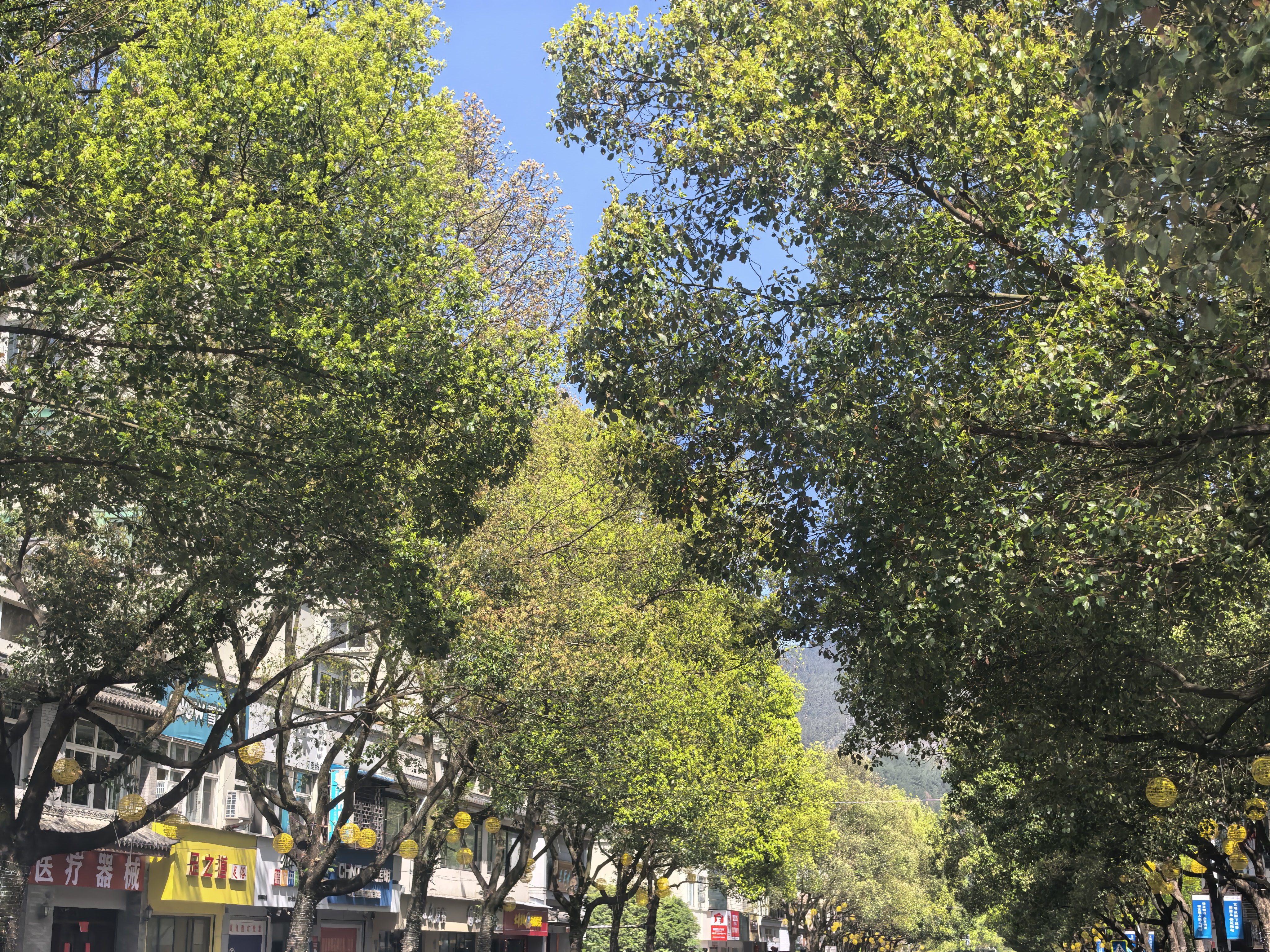 春日随手拍:红灯笼、绿树、玻璃幕墙,蓝天白云下,城市烟火气刚刚好~