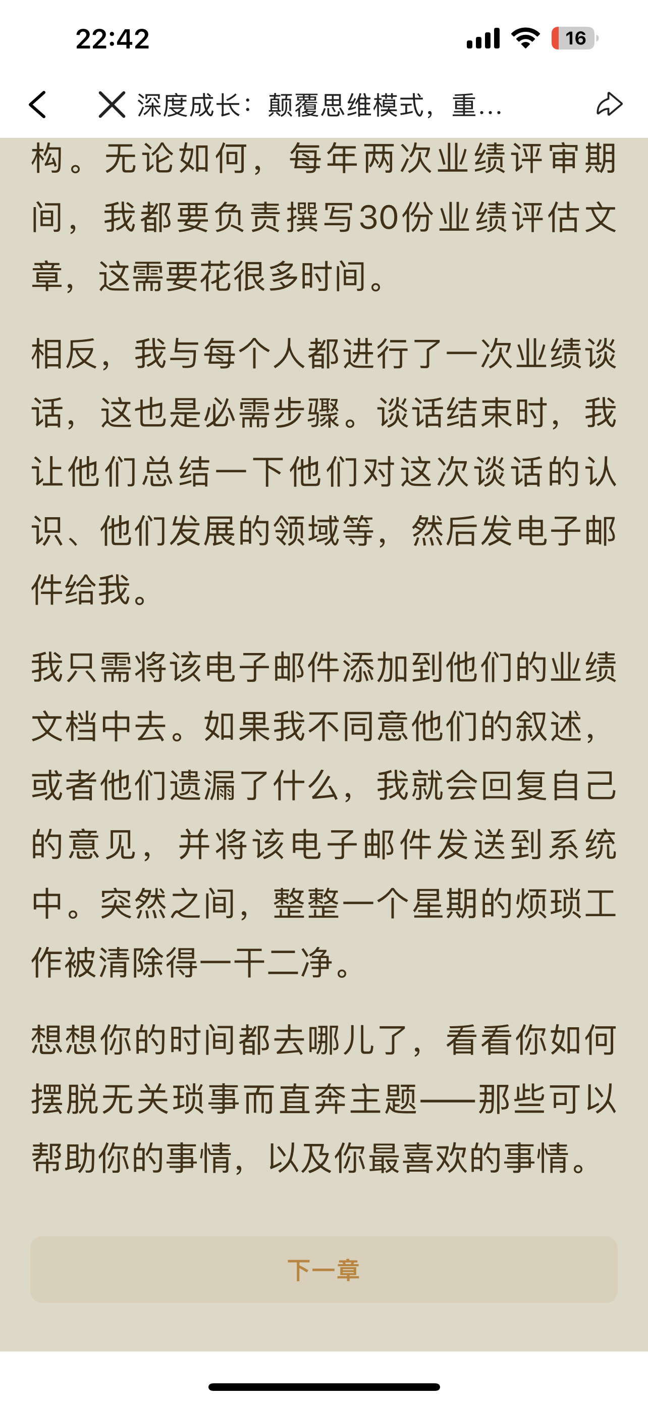 第二轮第六天 今日摘抄: 想想你的时间都去哪儿了,看看你如何摆脱无关琐事而直奔主题——那些可以帮助你的事情,以及你最喜欢的事情。 向内看,停下脚步问自己“时间都去哪儿了”,从忙碌的惯性中抽离,找回生活的主动权,这是改变的开始。 我们不是在某一天突然活成自己喜欢的样子,而是在每一天,通过选择把时间花在哪里,而慢慢塑造了自己。 时间是我们唯一公平拥有的东西。把时间花在刀刃上,花在能让你成长、让你快乐的事情上,这不仅是对时间的尊重,更是对自己生命的深情款待。