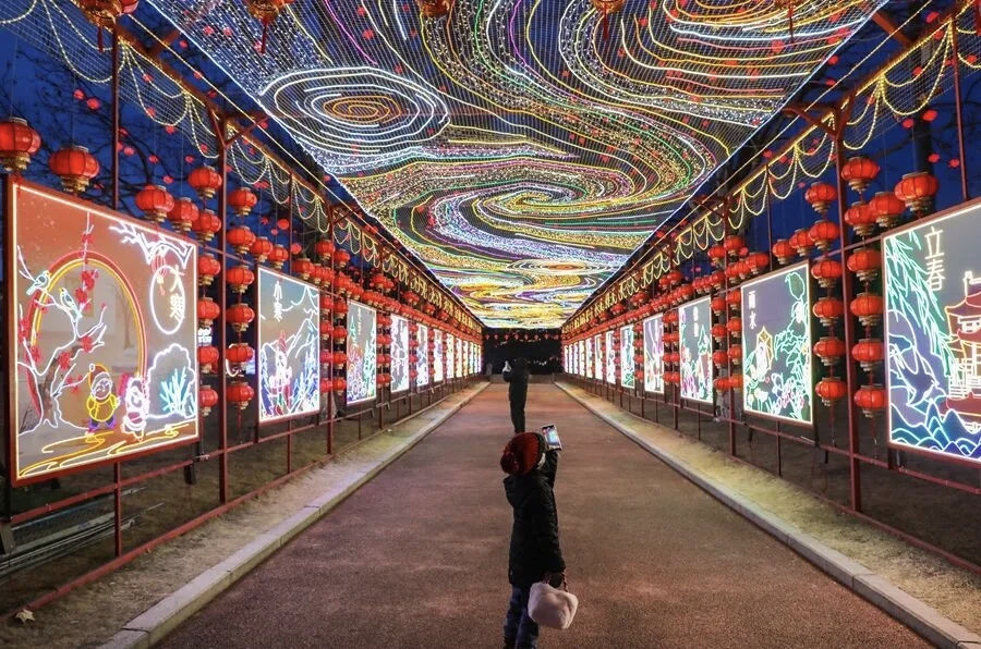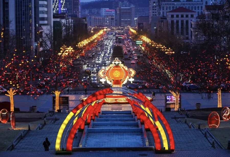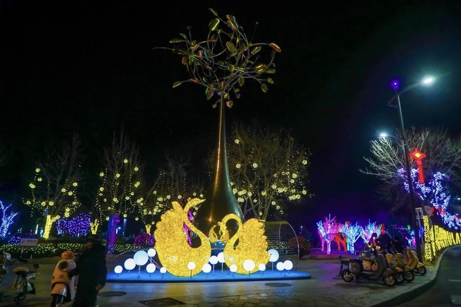 元宵佳节的威海,夜晚已被花灯点亮。威海的花灯与传统猜灯谜花灯不同,各式各样的造型,美轮美奂。海上公园化身璀璨灯海,流光溢彩的花灯与滨海夜色交相辉映,勾勒出一幅热闹祥和的新春画卷。 夜幕降临,华灯初上。道路上车流如织,与岸边紫、金、蓝交织的大型灯组相映成趣,海浪般的灯浪从步道延伸至海边,将公园装点成梦幻天地。标志性的创业门被暖黄灯光点亮,在夜色中格外醒目,成为游人打卡的热门地标;各式主题花灯错落排布,既有传统韵味,又不失现代创意,吸引着市民游客驻足观赏、拍照留念。 这一夜,威海的万家灯火与海上花灯交相辉映,不仅点亮了城市的夜空,更传递着团圆的温暖与新春的希望。