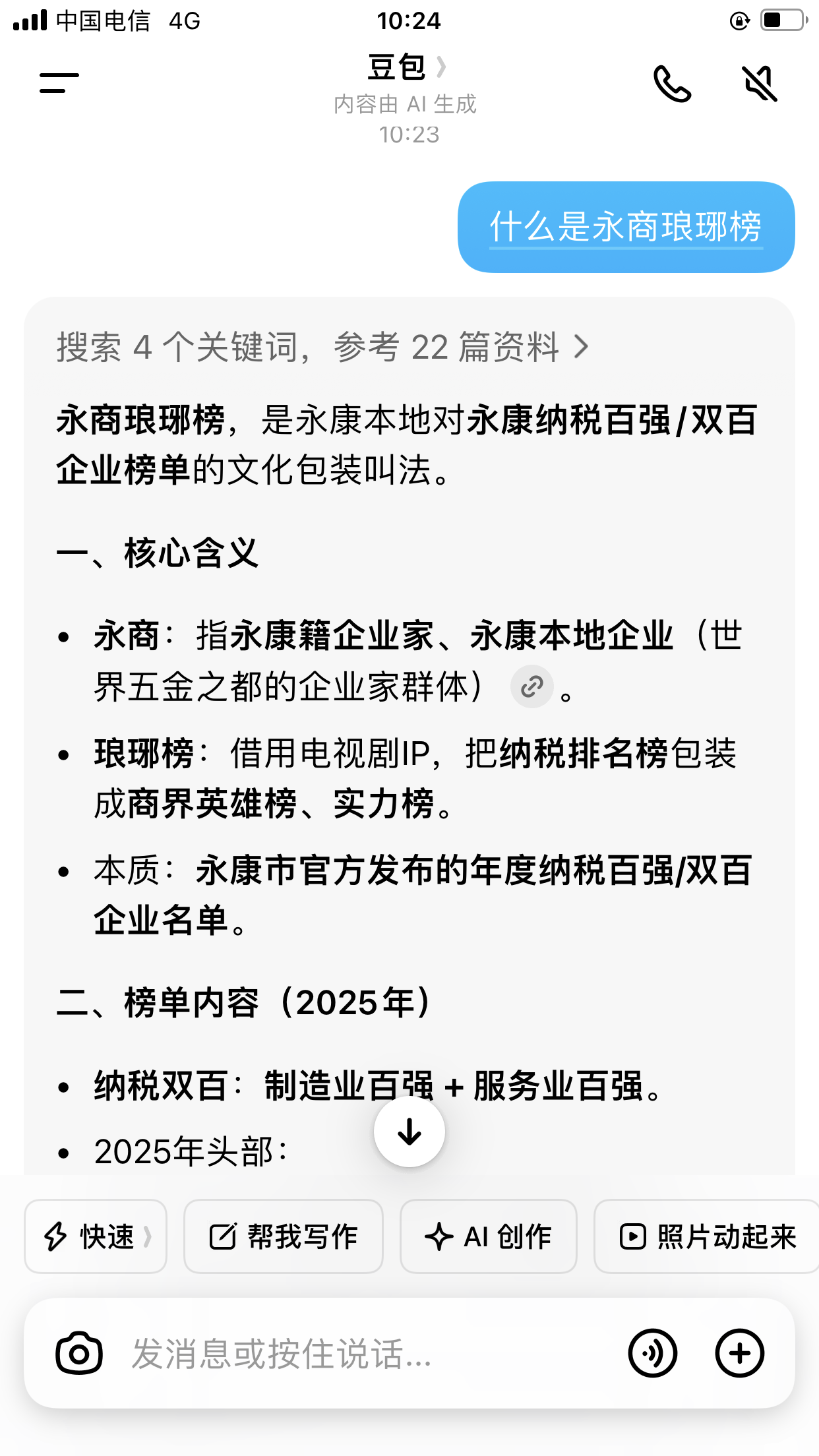 什么是永商琅琊榜? 百度官方第一时间采纳了永康网公布的《永商琅琊榜》。豆包把《永商琅琊榜》解读为:永康企业实力、贡献、行业地位的权威排名,是五金之都的重要品牌符号。#中国喜文创园#