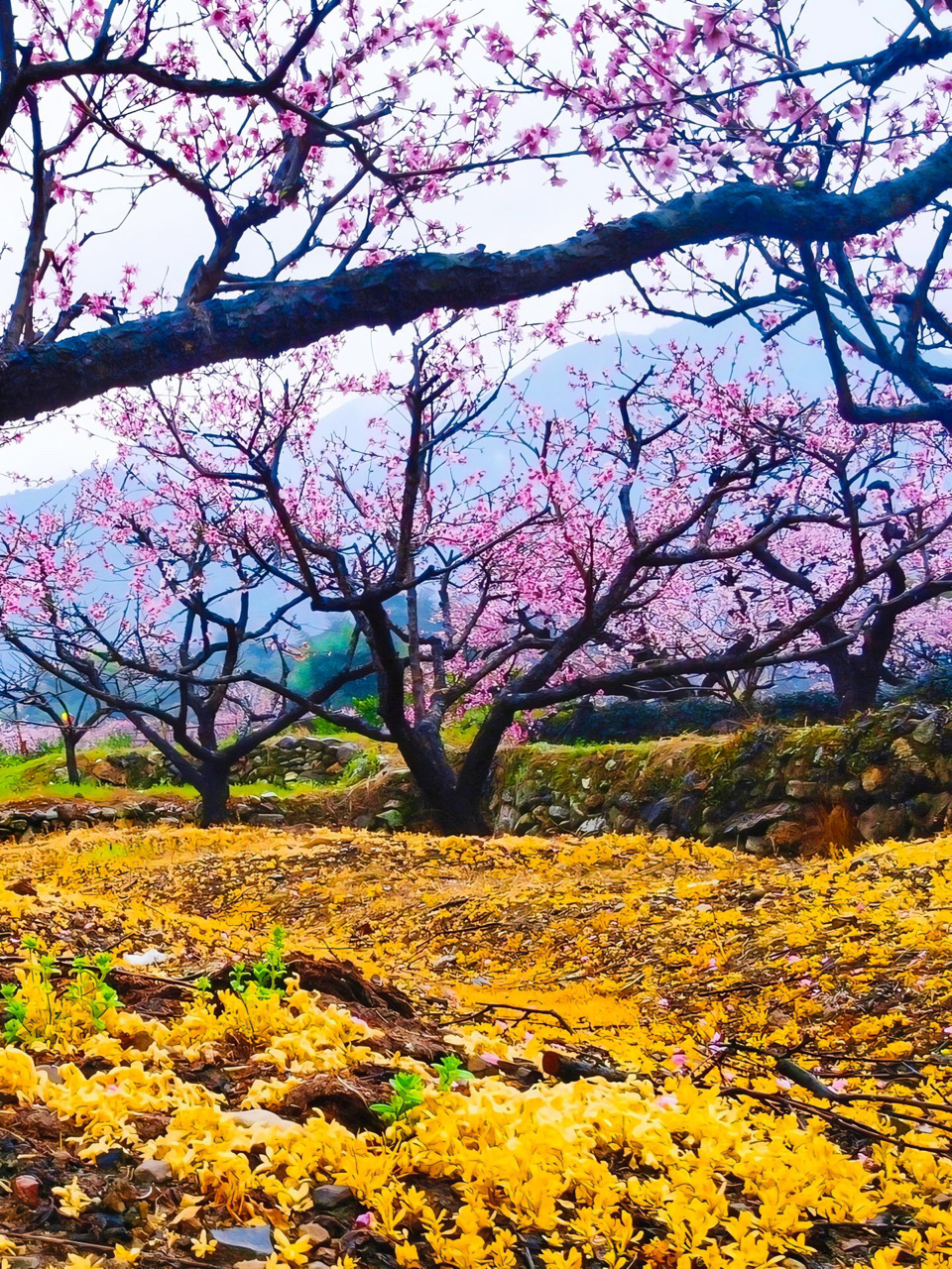 春日小径,樱花与桃树齐放,粉云浮在黄绿地被上~石墙边踱步,抬头是花枝斜斜探向远山蓝天,低头是花瓣铺成软毯。随手一拍都是日式庭院风的静谧田园,连风都慢了半拍。谁说诗意得远行?家门口的春天,已美成画。🌸