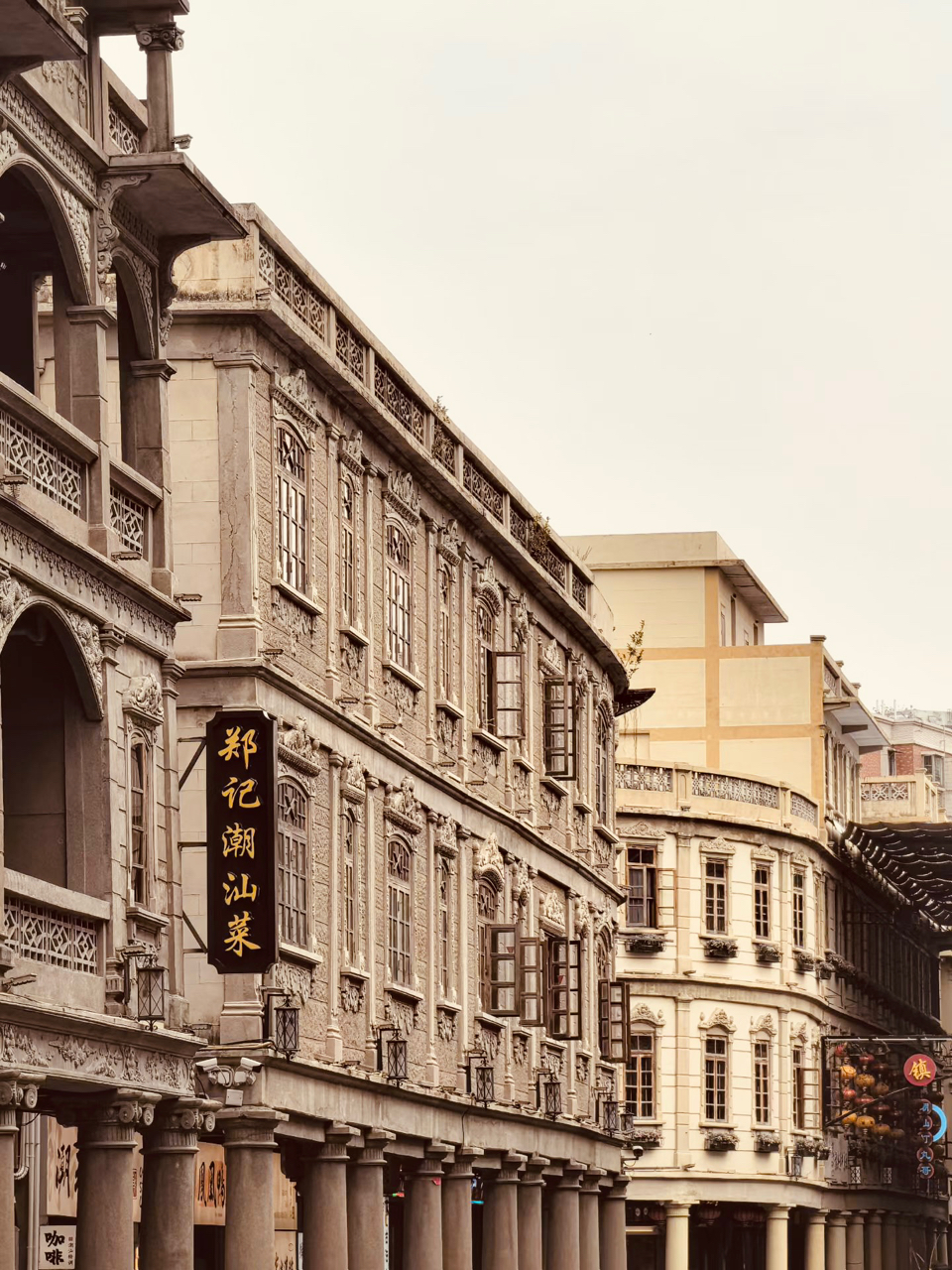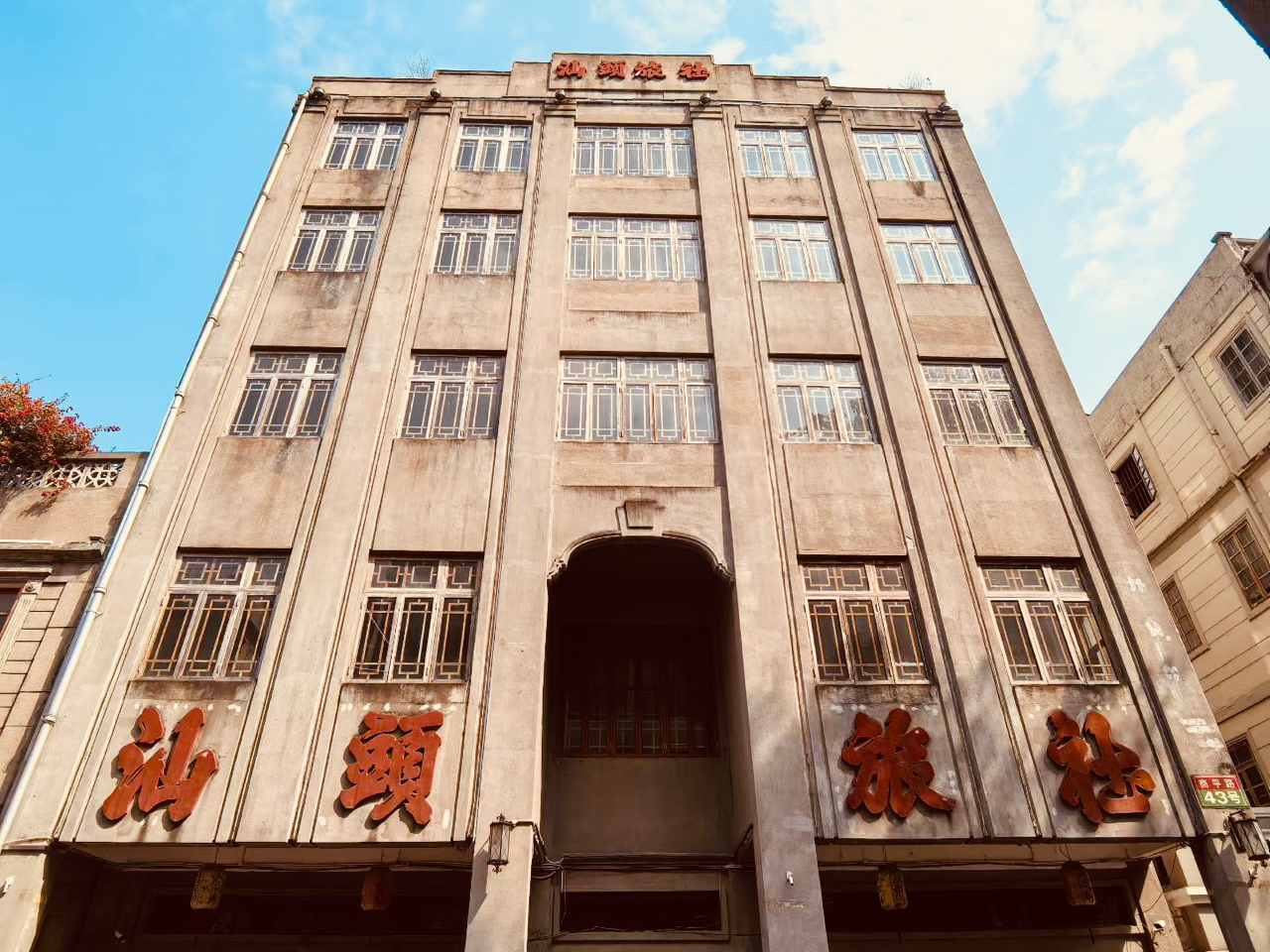 红灯笼轻摇,骑楼静默,木门半掩旧时光。汕头旅社前,一帧帧故事在雕花窗与拱门间悄然定格。