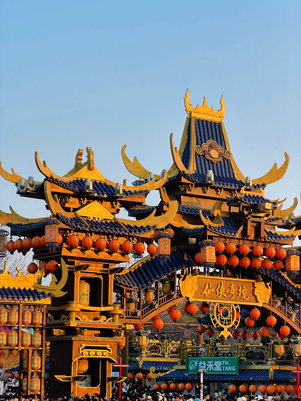 随手一拍全是戏!飞檐翘角下红灯笼摇晃,金色屋顶映着蓝瓦片,像打翻了古风调色盘~益禾堂门口排队买奶茶的姑娘们汉服飘飘,牌楼下游客咔咔自拍,庙会糖画香、灯笼暖,连空气都冒着中国年味儿。谁说摄影得等大片?烟火气里,处处是生活的小仙侠剧呀~