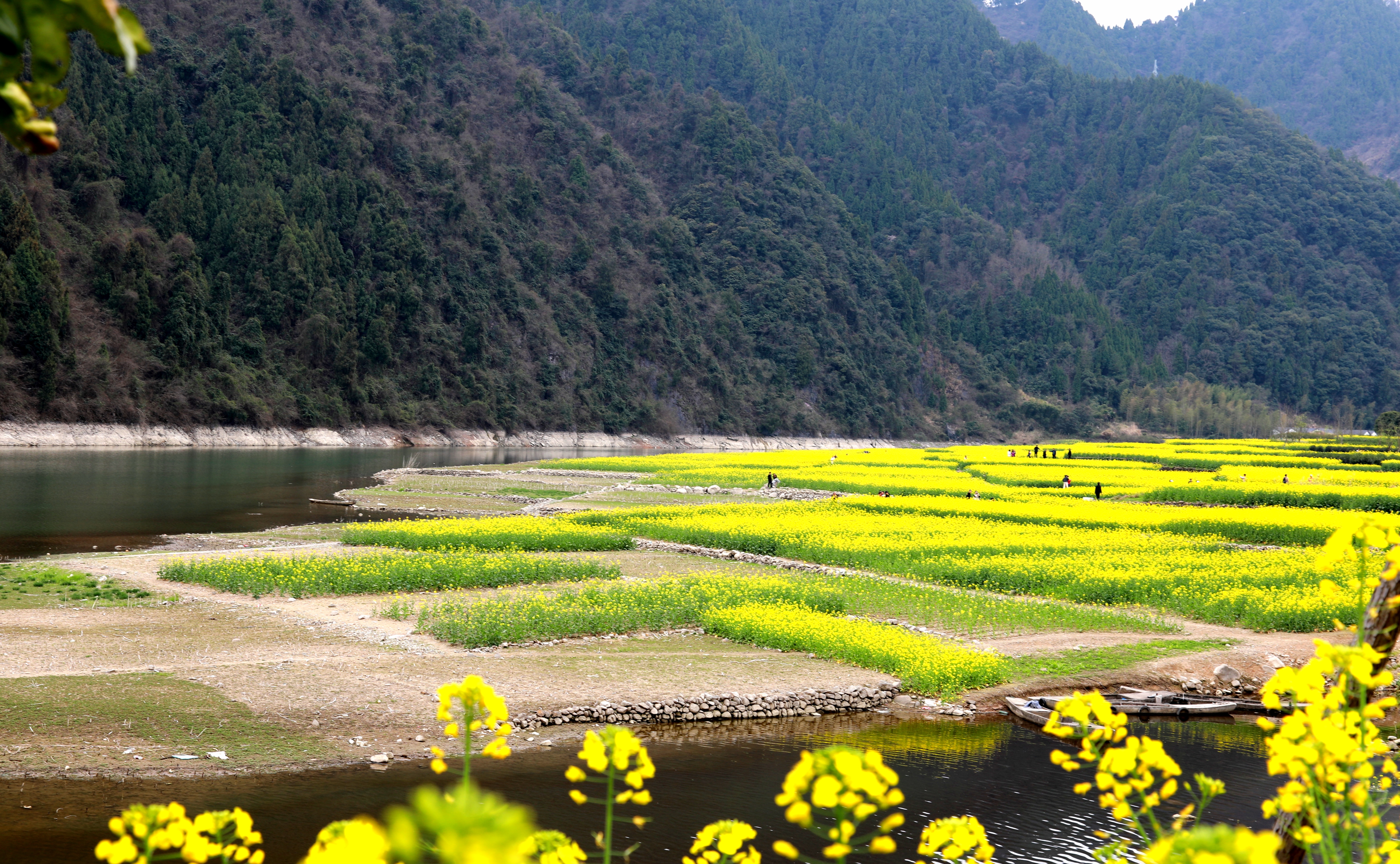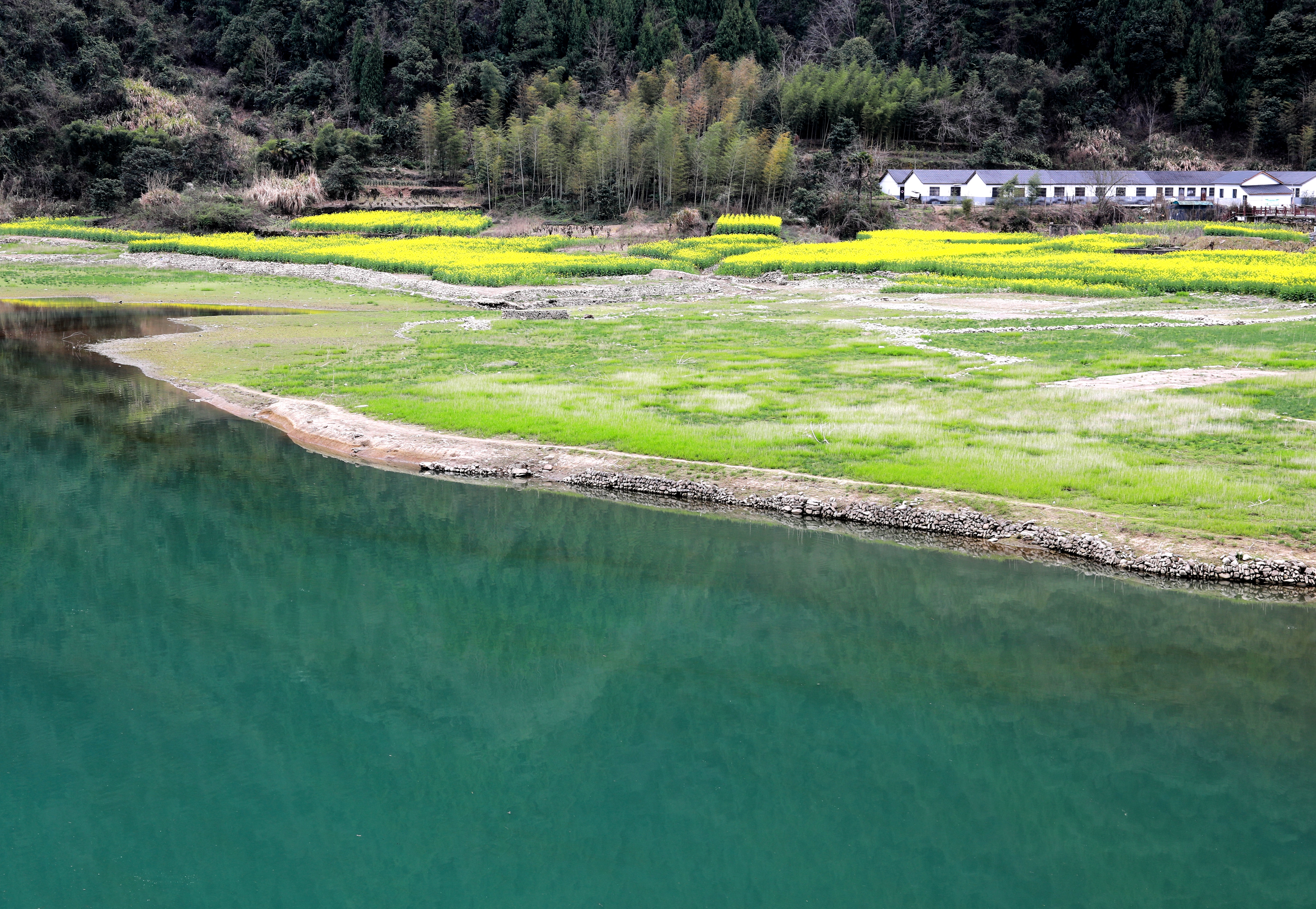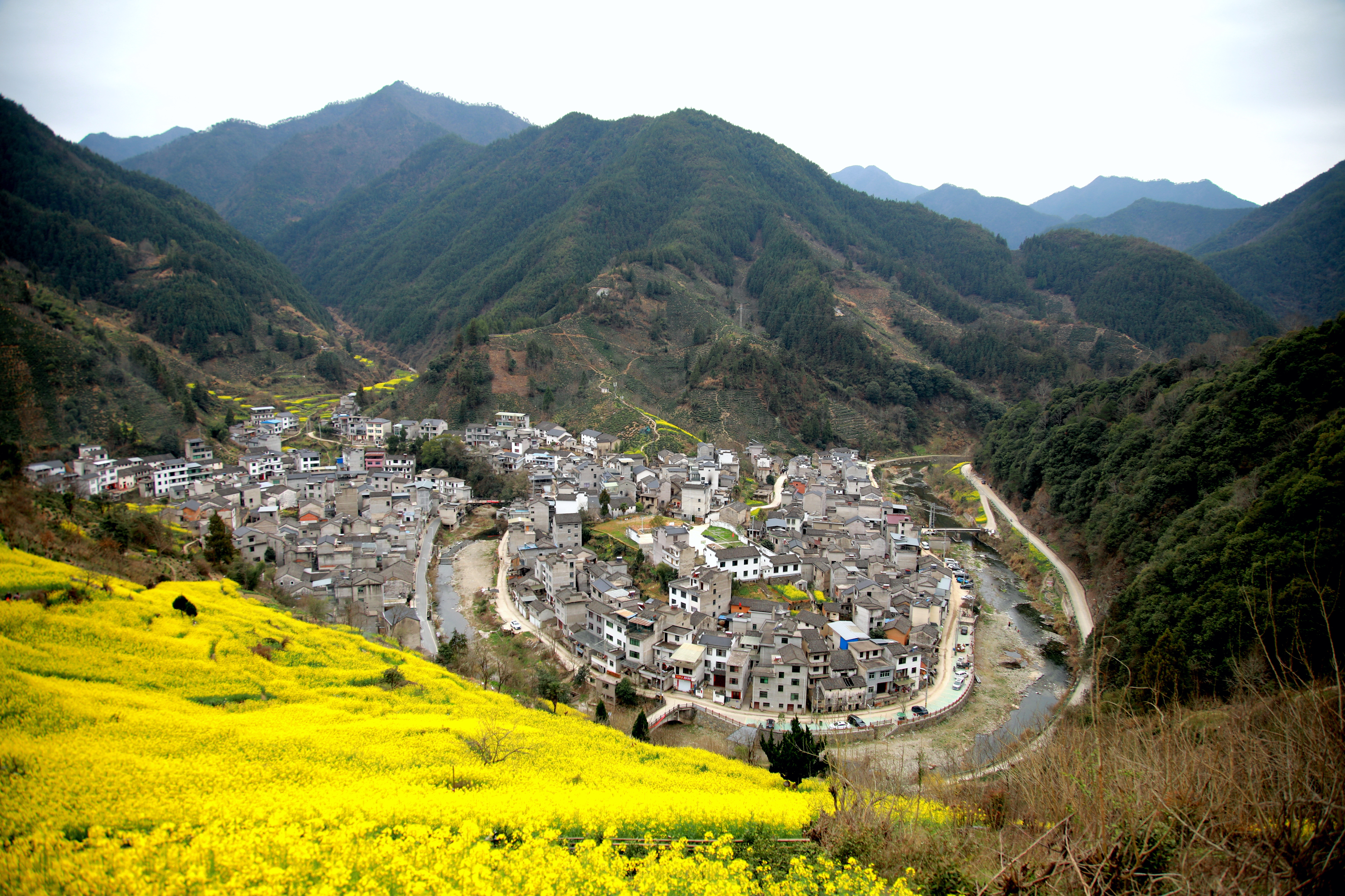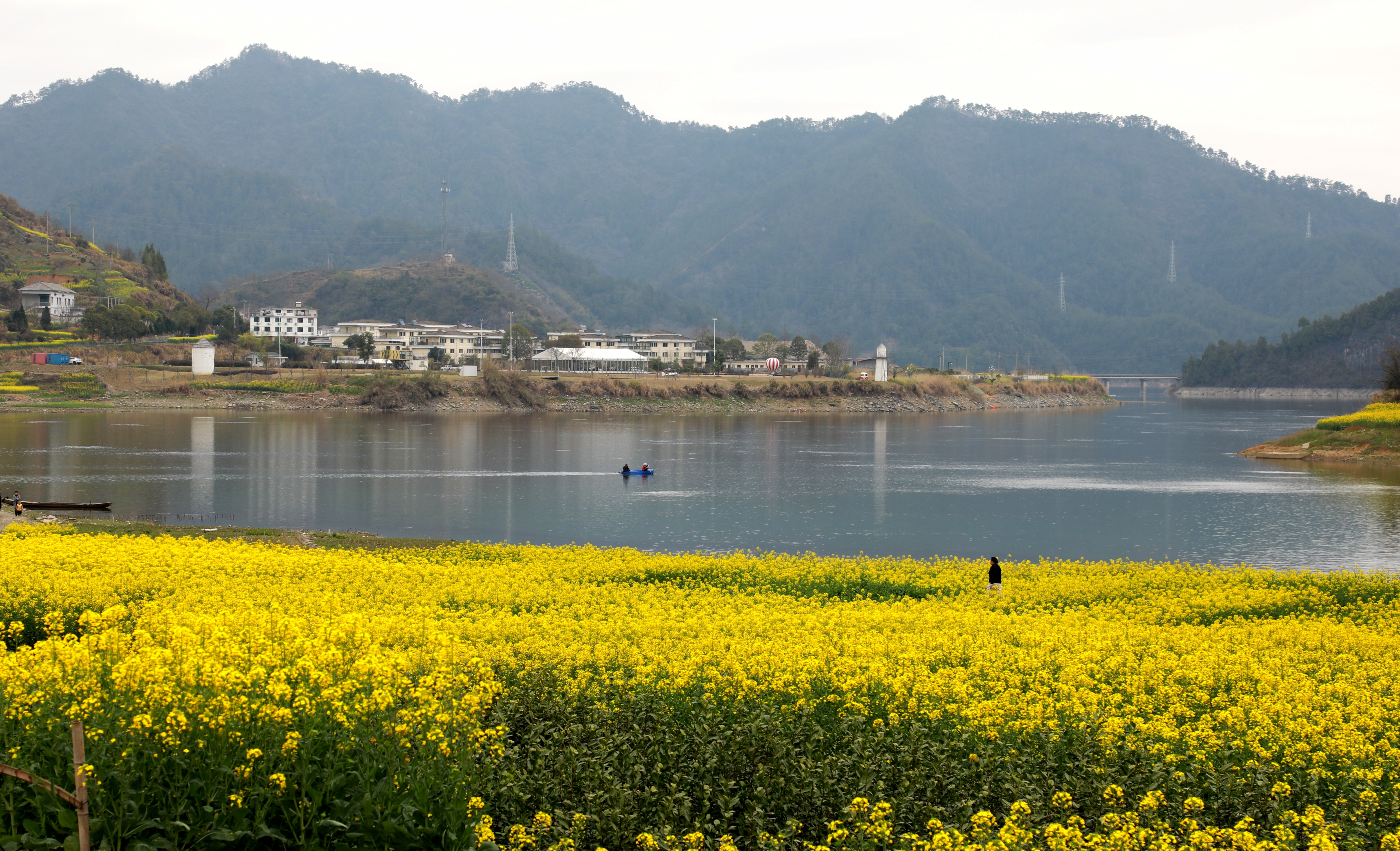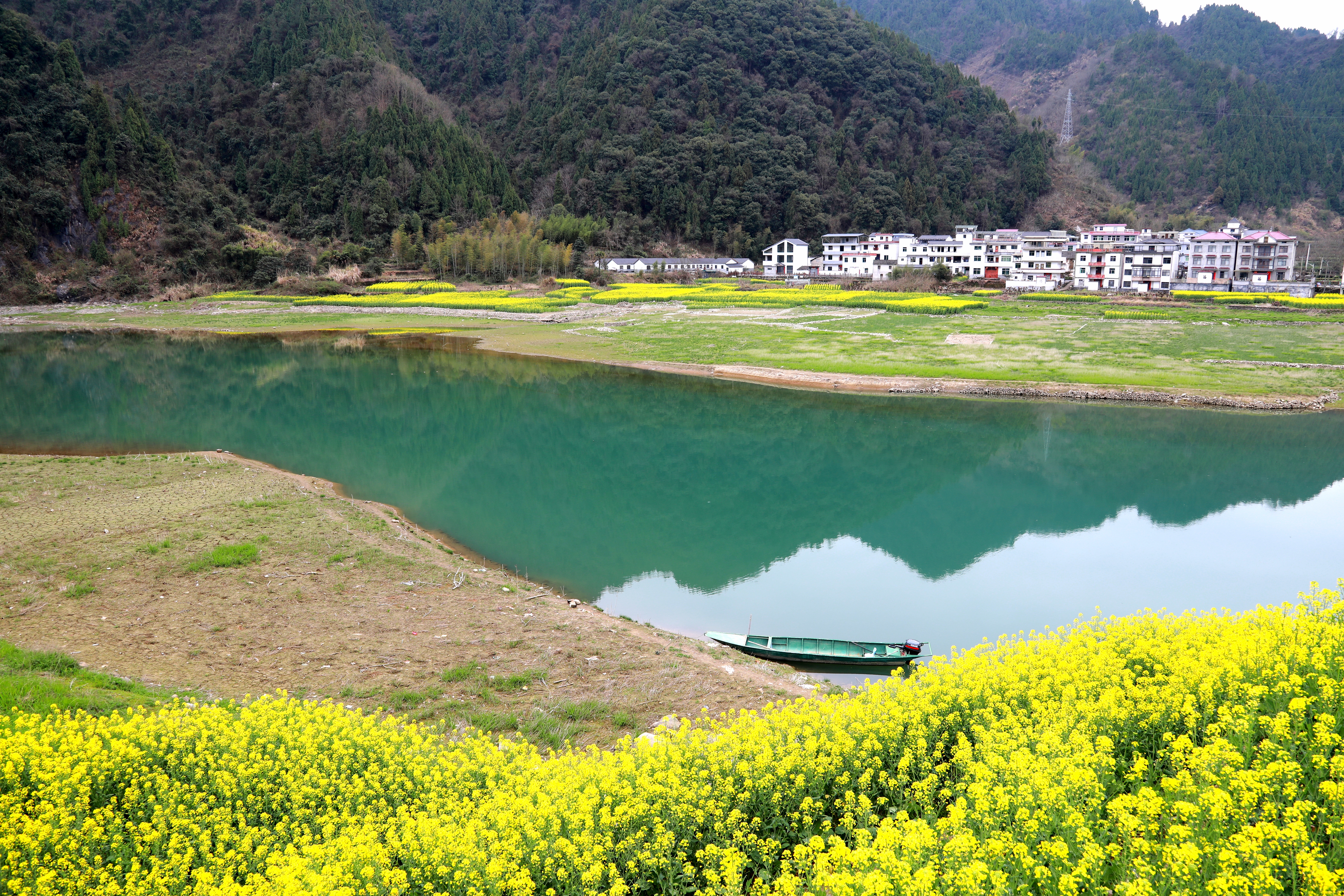 油菜花田漫过青瓦白墙,溪流轻绕古桥,山色与云雾低语,春在徽州的褶皱里缓缓铺展。