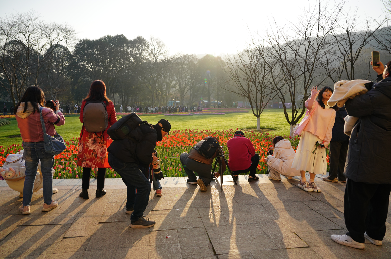 春回大地,起早,晨雾,人少。郁金香盛放如锦。红粉紫黄交织,露珠映阳,竹栏法师与长焦共绘西湖生态画卷。