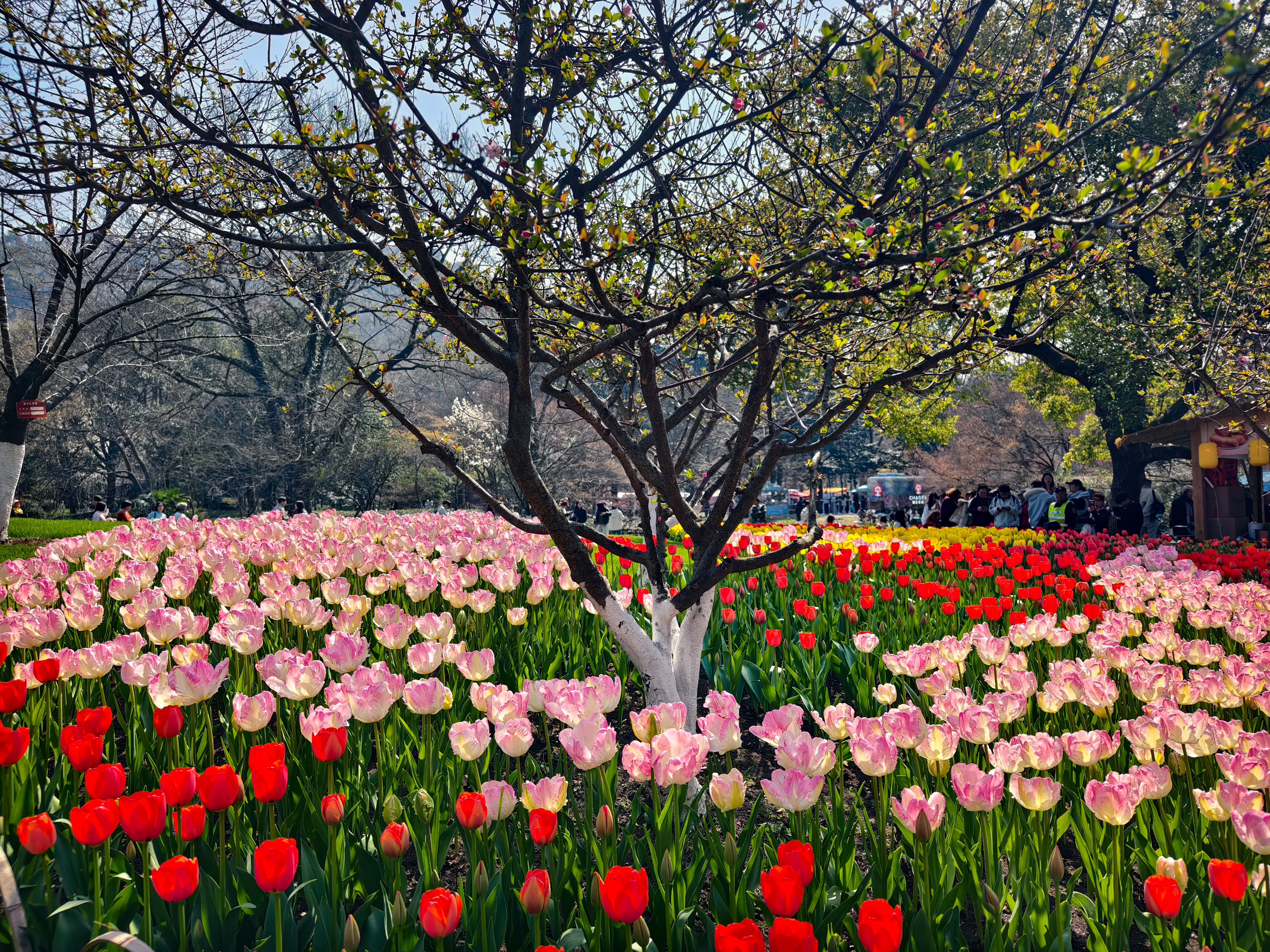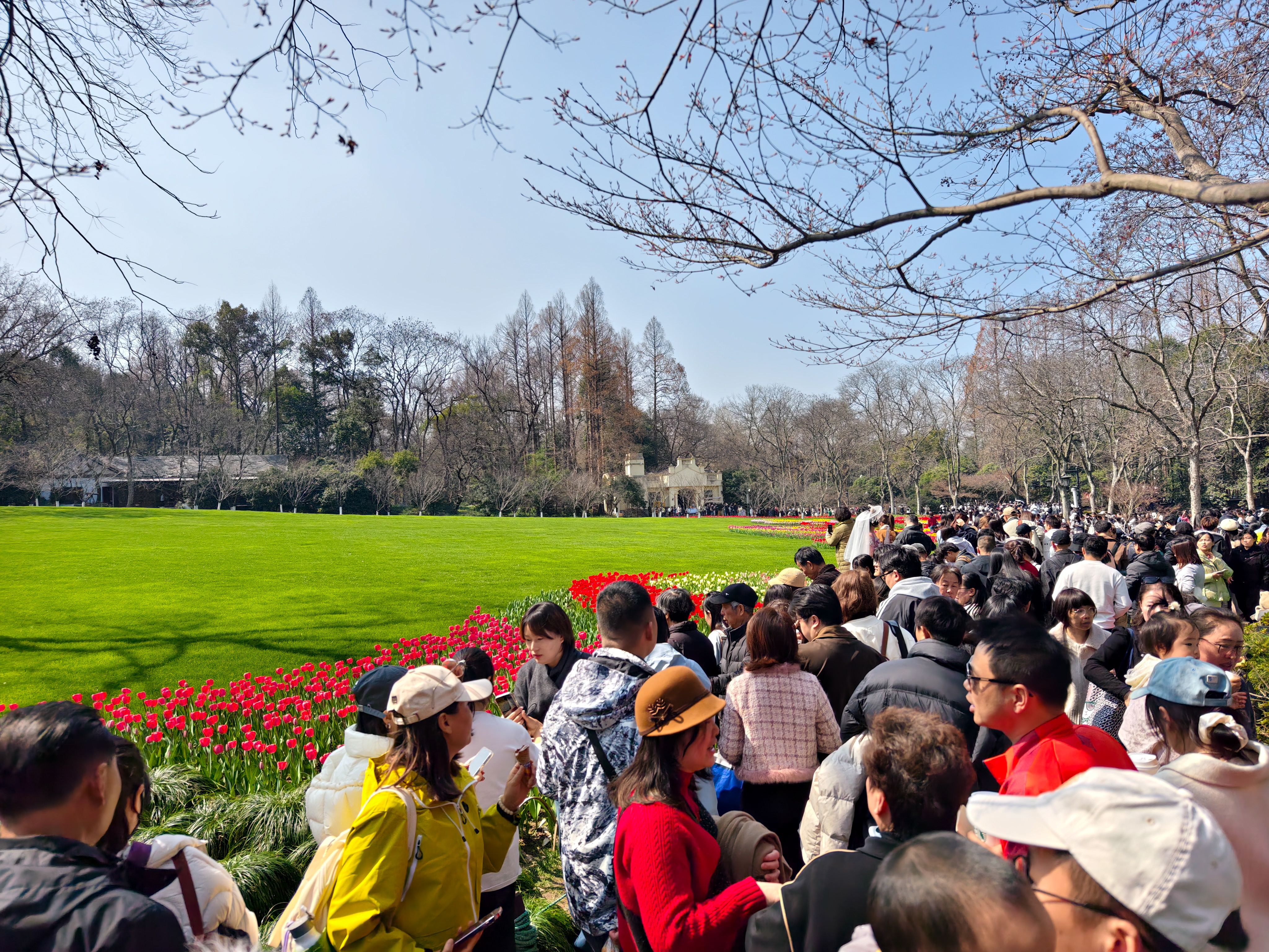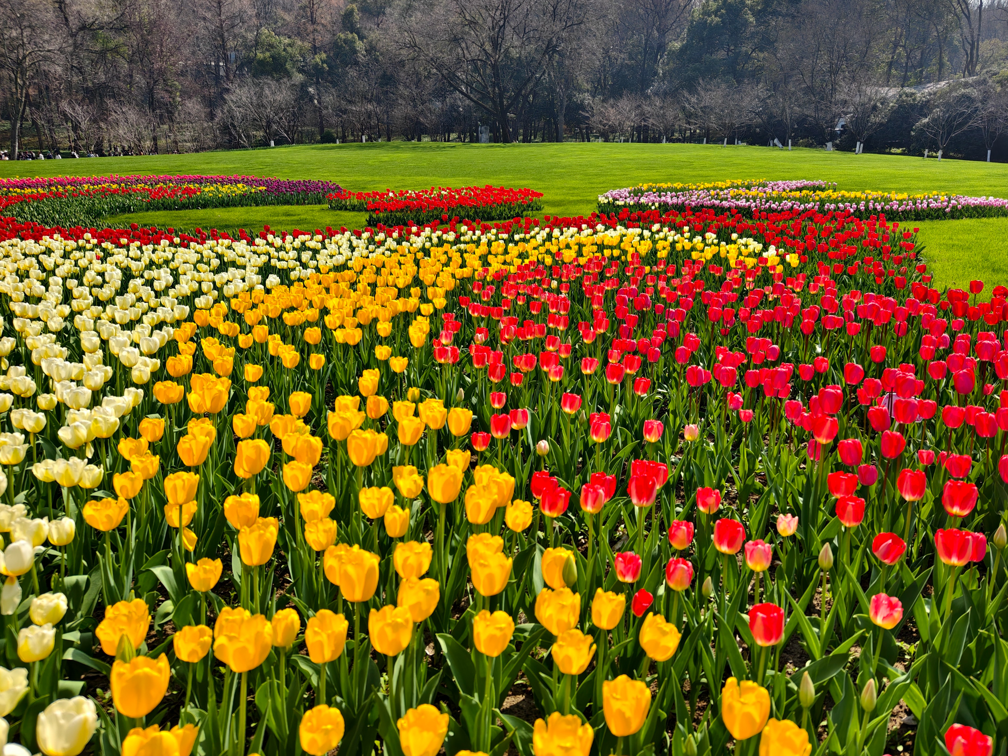 在太子湾公园内,樱花、郁金香、白玉兰相映,邂逅杭城初春诗意。