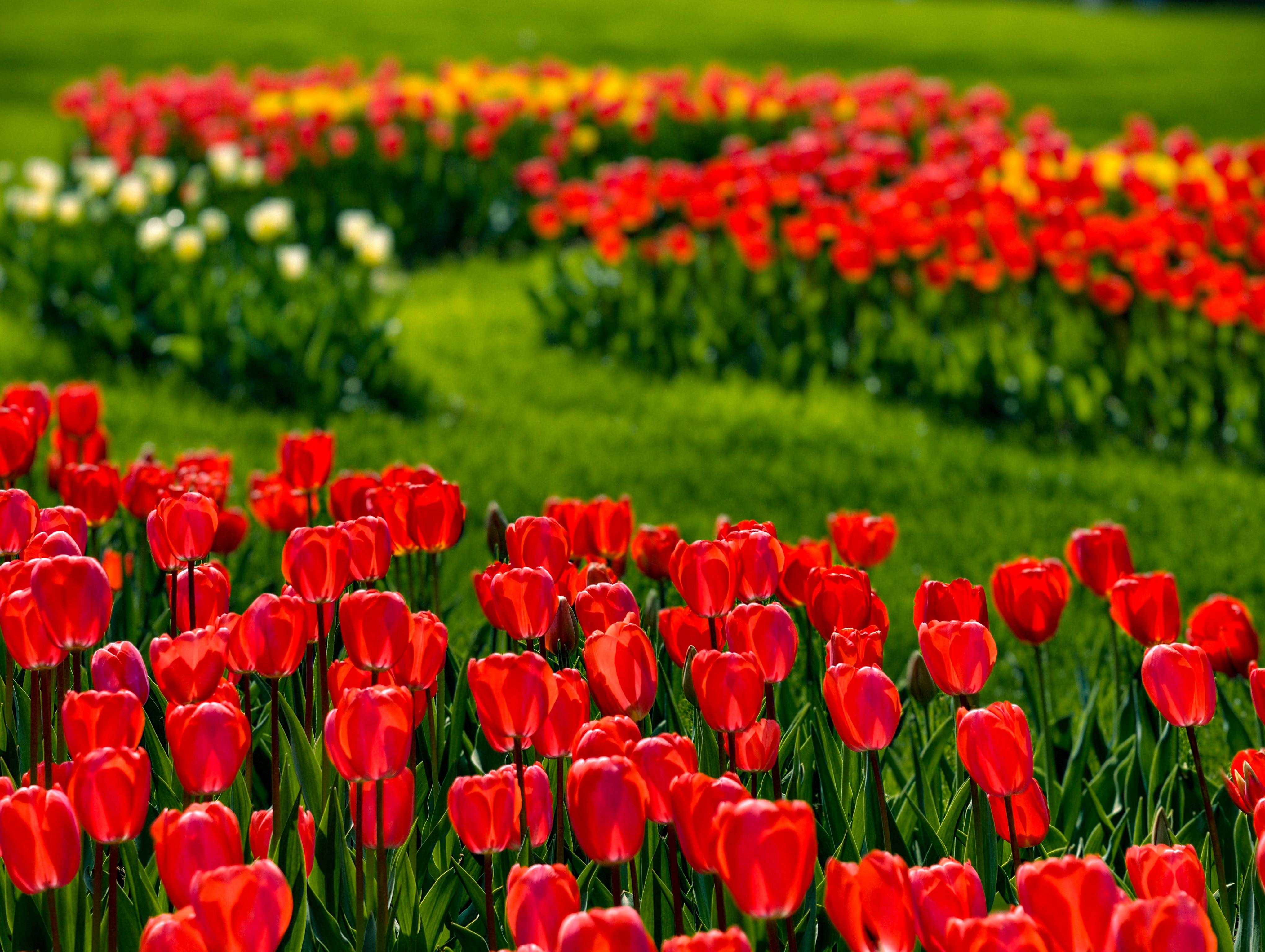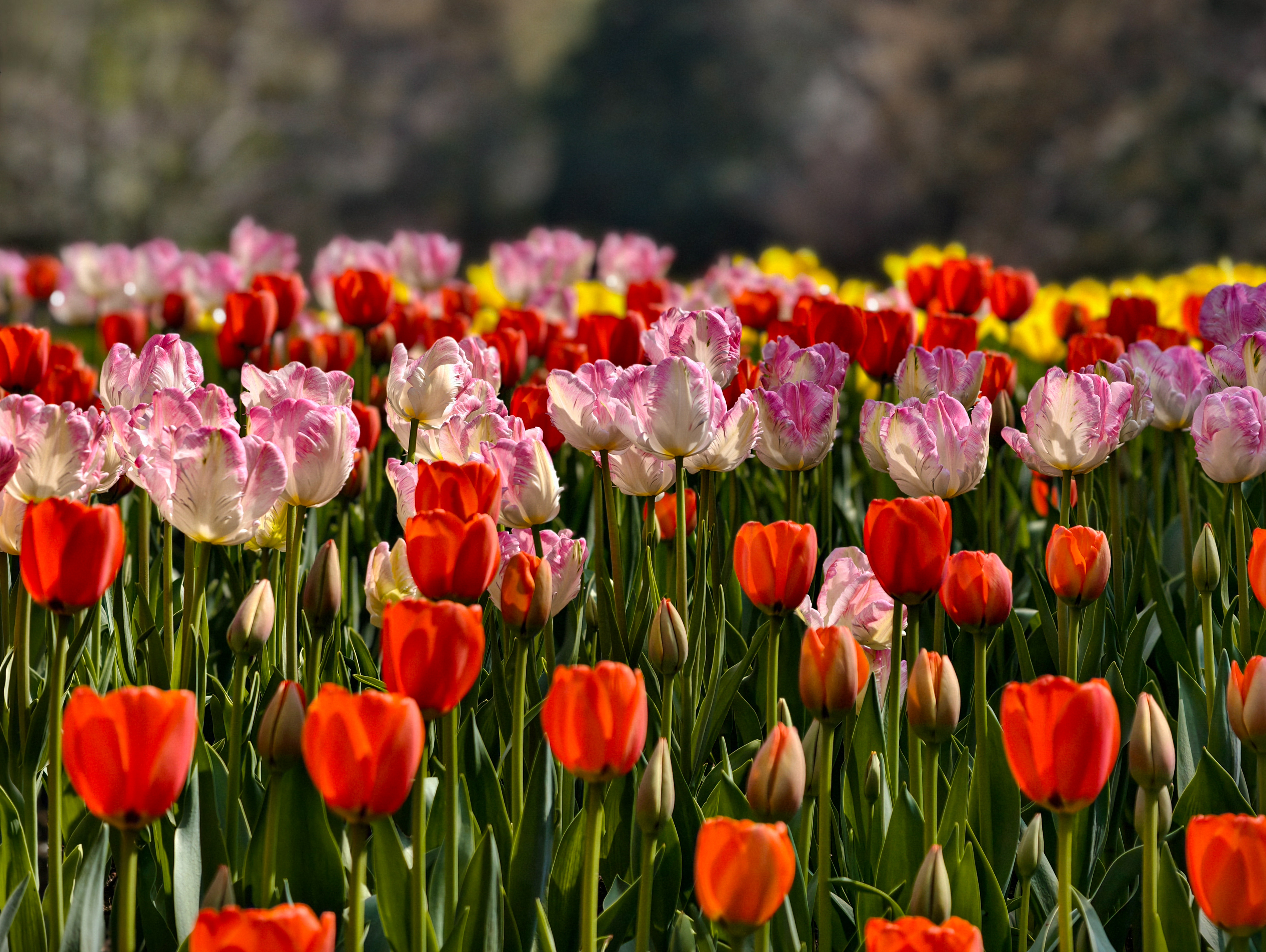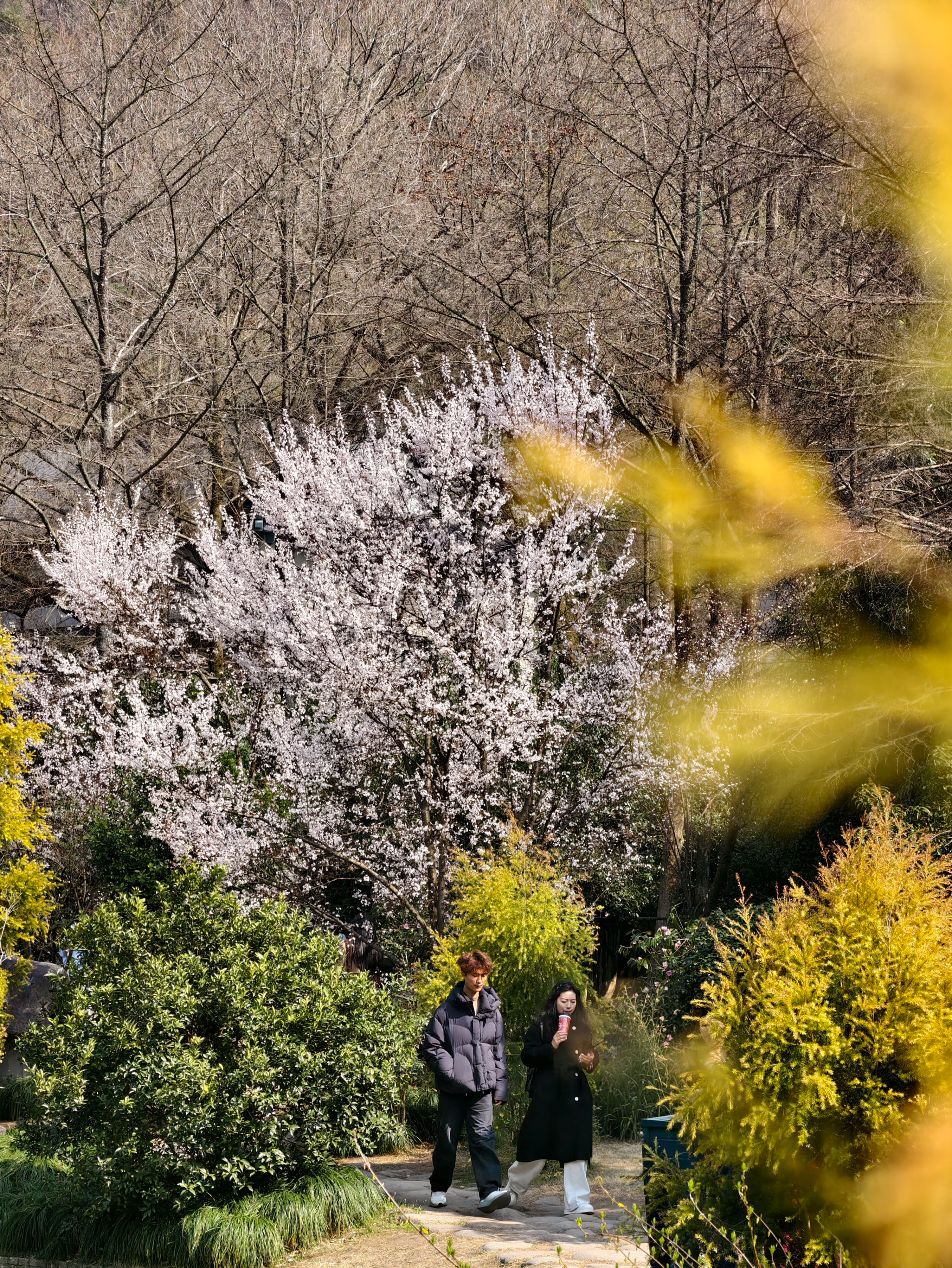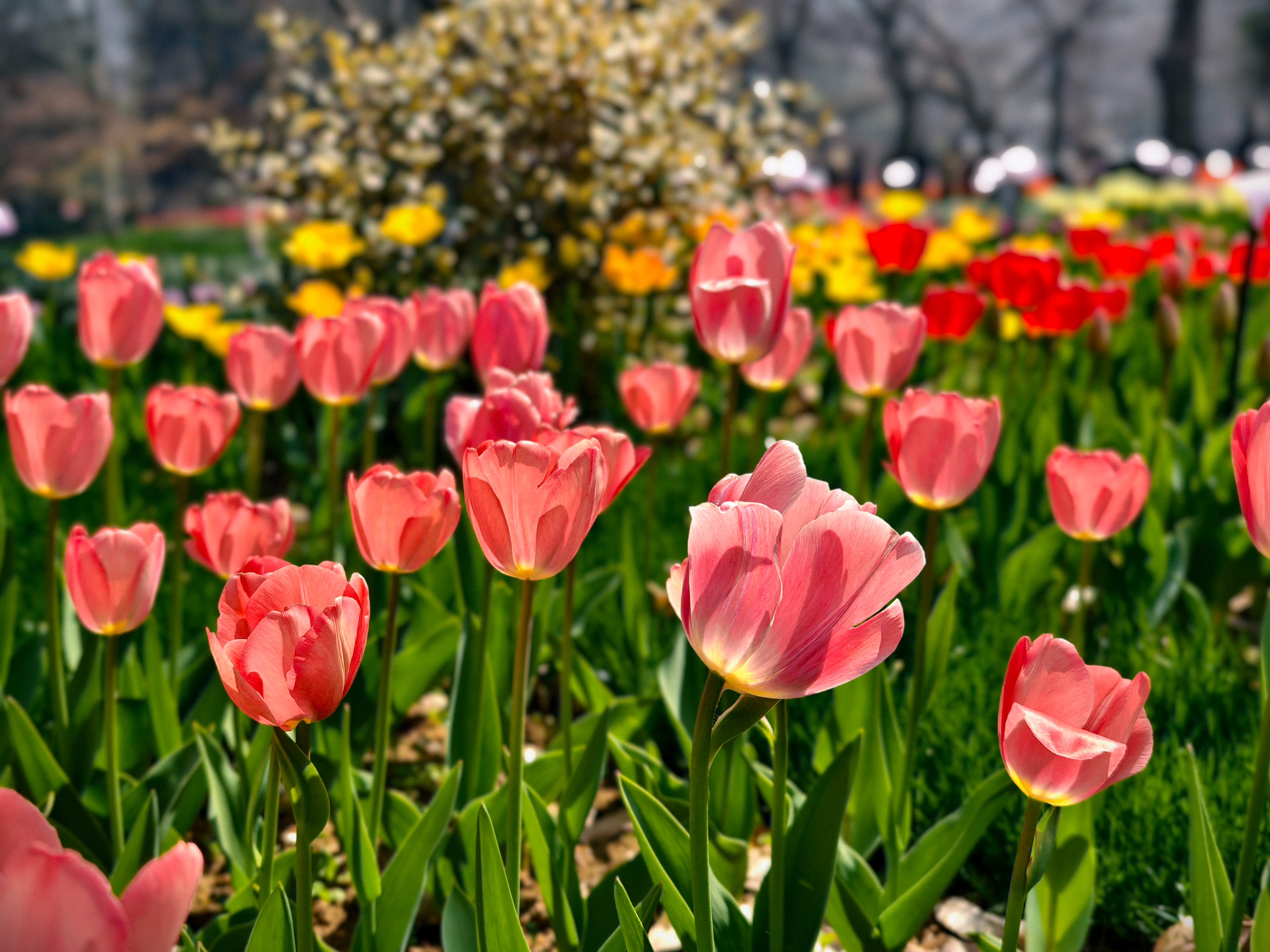 在太子湾公园内,樱花、郁金香、白玉兰相映,邂逅杭城初春诗意。