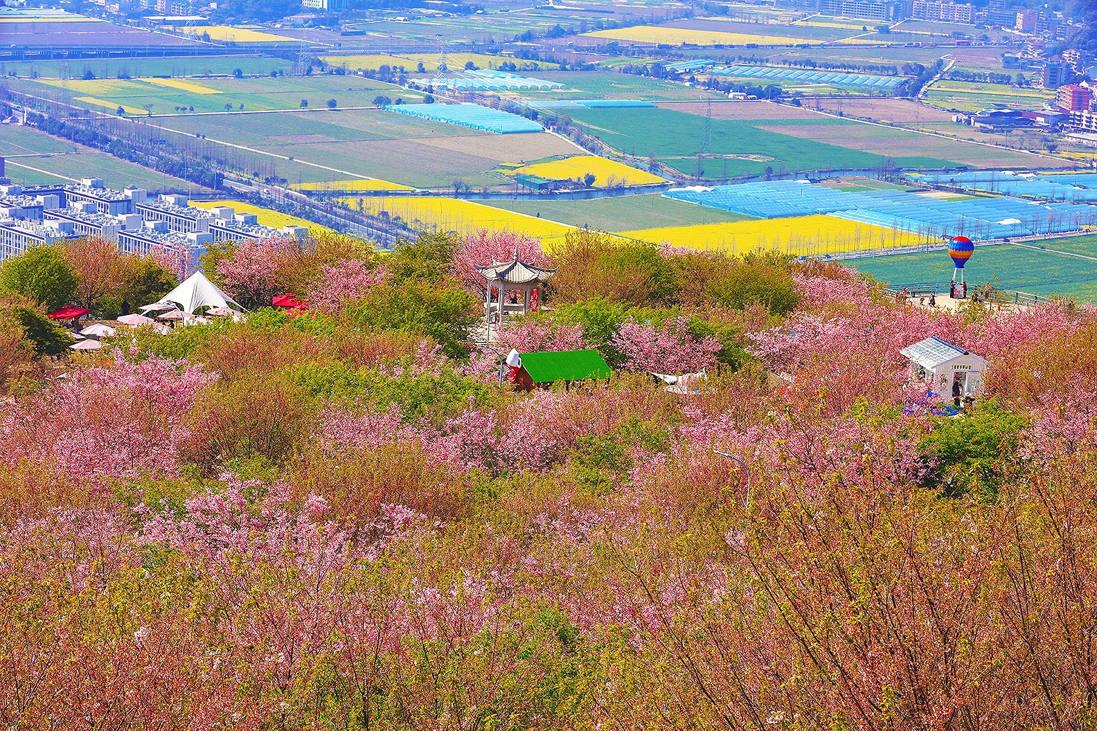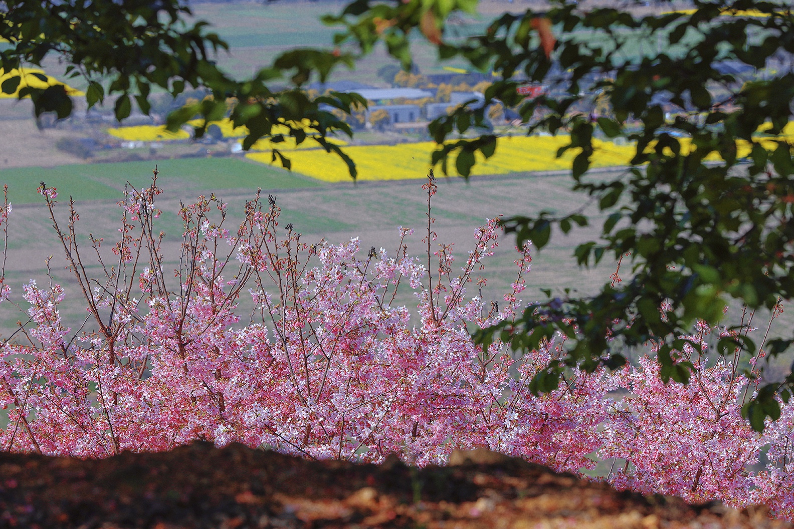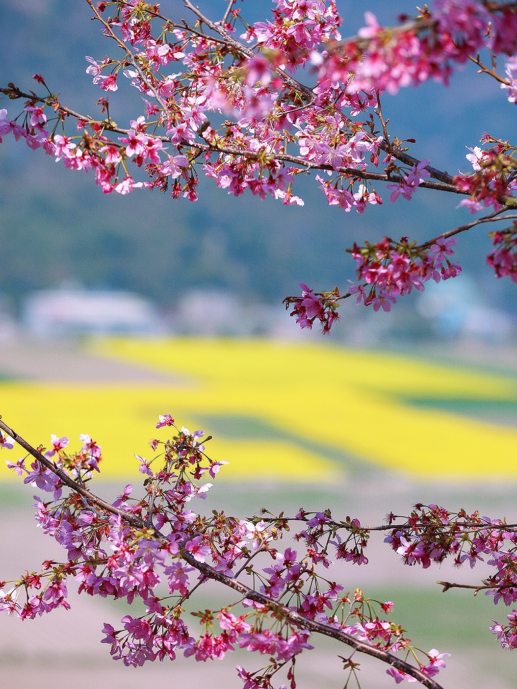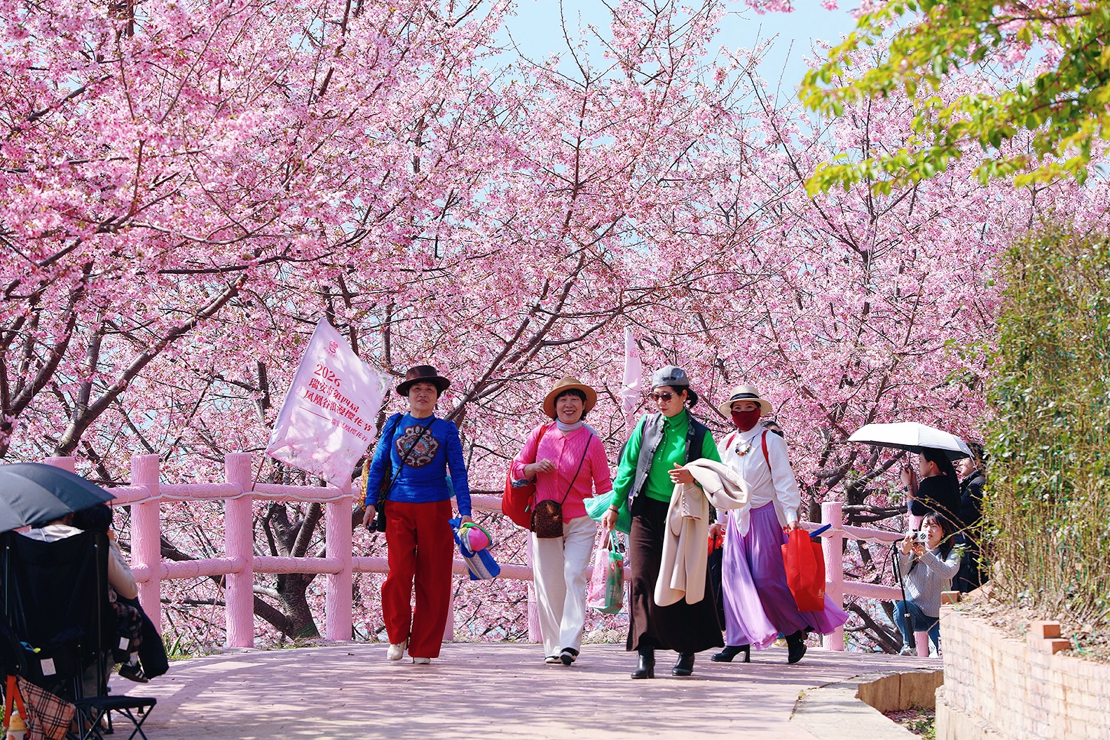 春风漫过江南岸, 粉樱织就云间锦, 金浪翻涌田埂间。 一列银龙破花而来, 载着人间的奔赴与期盼, 在这温柔的春色里, 奔赴下一场山海。 于瑞安桐浦樱花园