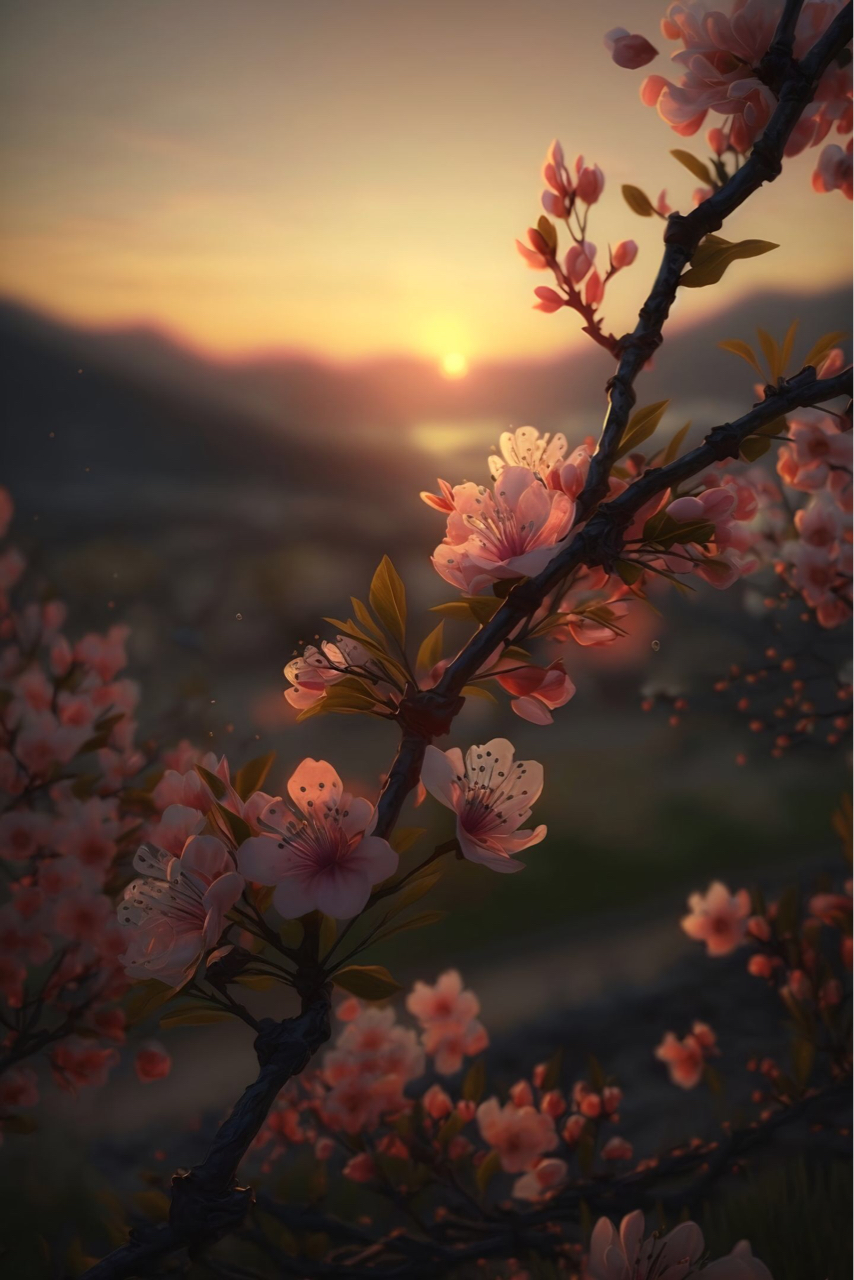 樱花枝头染暖光,山色温柔入画来~春日黄昏,连风都带着花香呢!