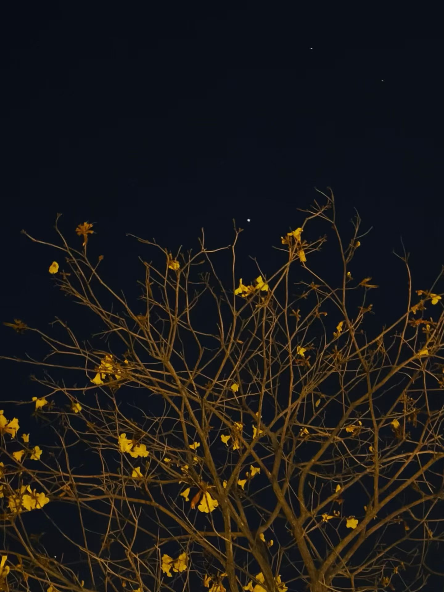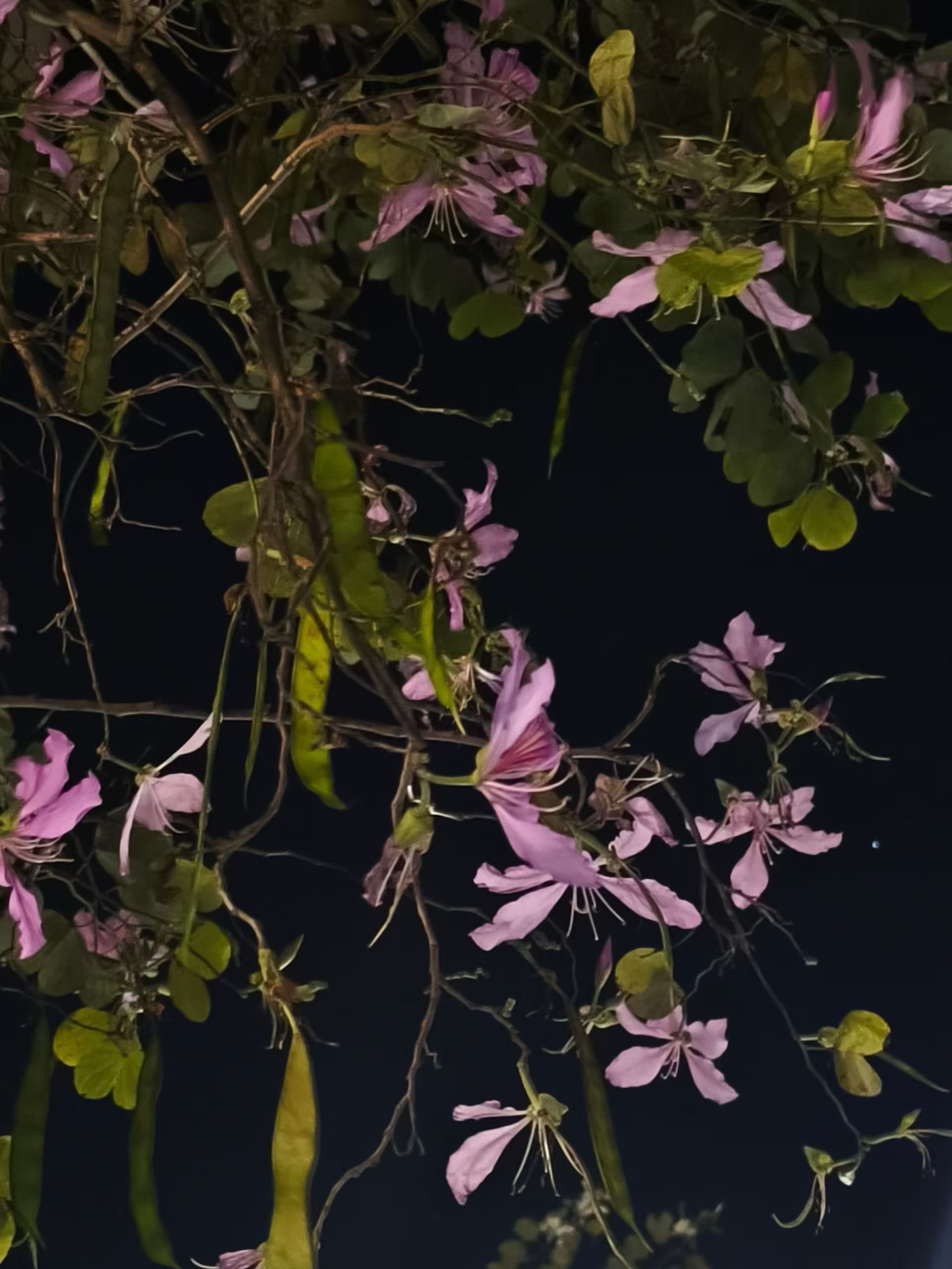 夜晚的花儿在灯光的映照下渐渐变淡