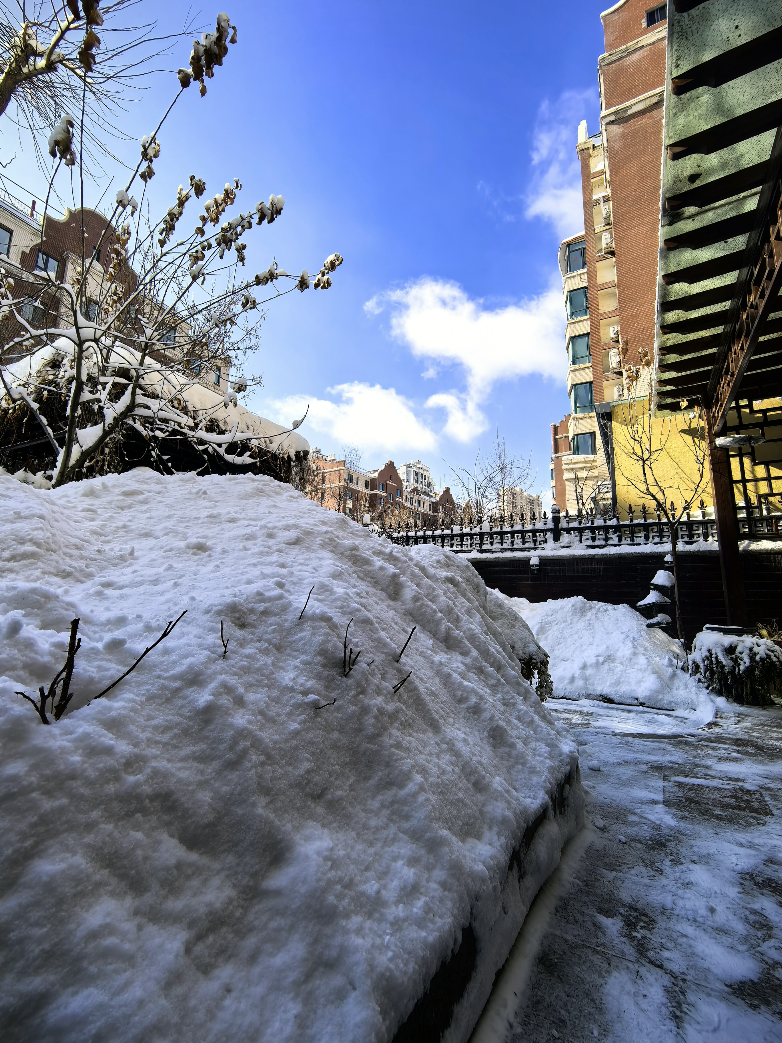 飞雪悄然铺就银毯,扫帚在晨曦中勾勒出蜿蜒痕迹。乌鲁木齐市经昨日漫天琼芳洗礼,今朝晴光潋滟,积雪折射出碎钻般的光芒。