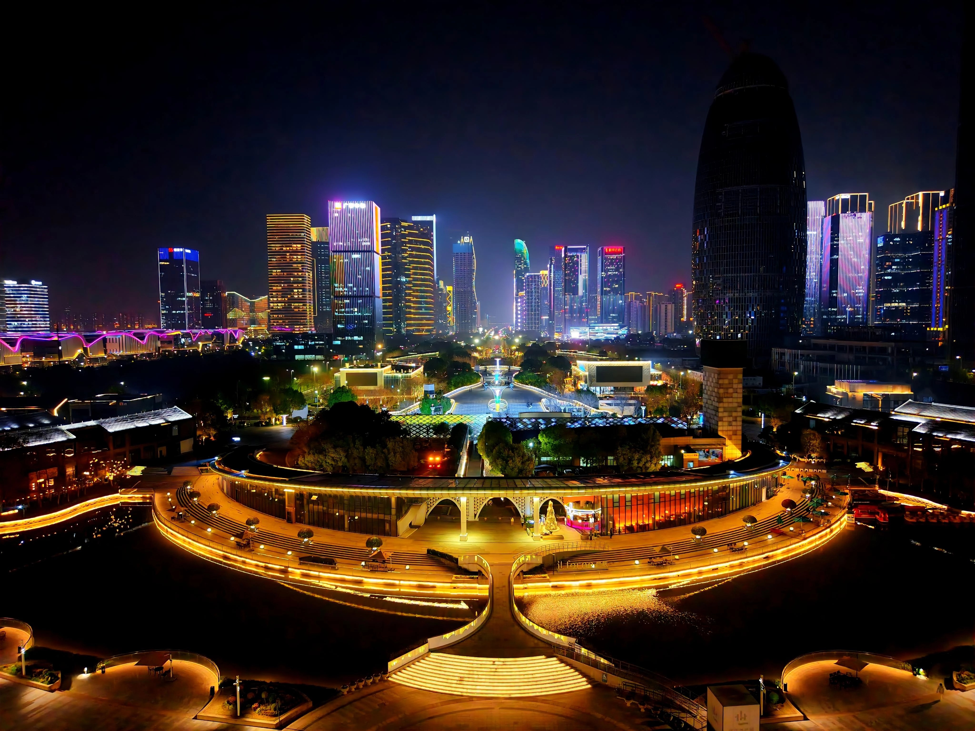 钱江世纪城公园夜景 璀璨灯火映长空,公园夜色美如画!(黄瑞明2026年3月10日摄于萧山钱江世纪城公园)