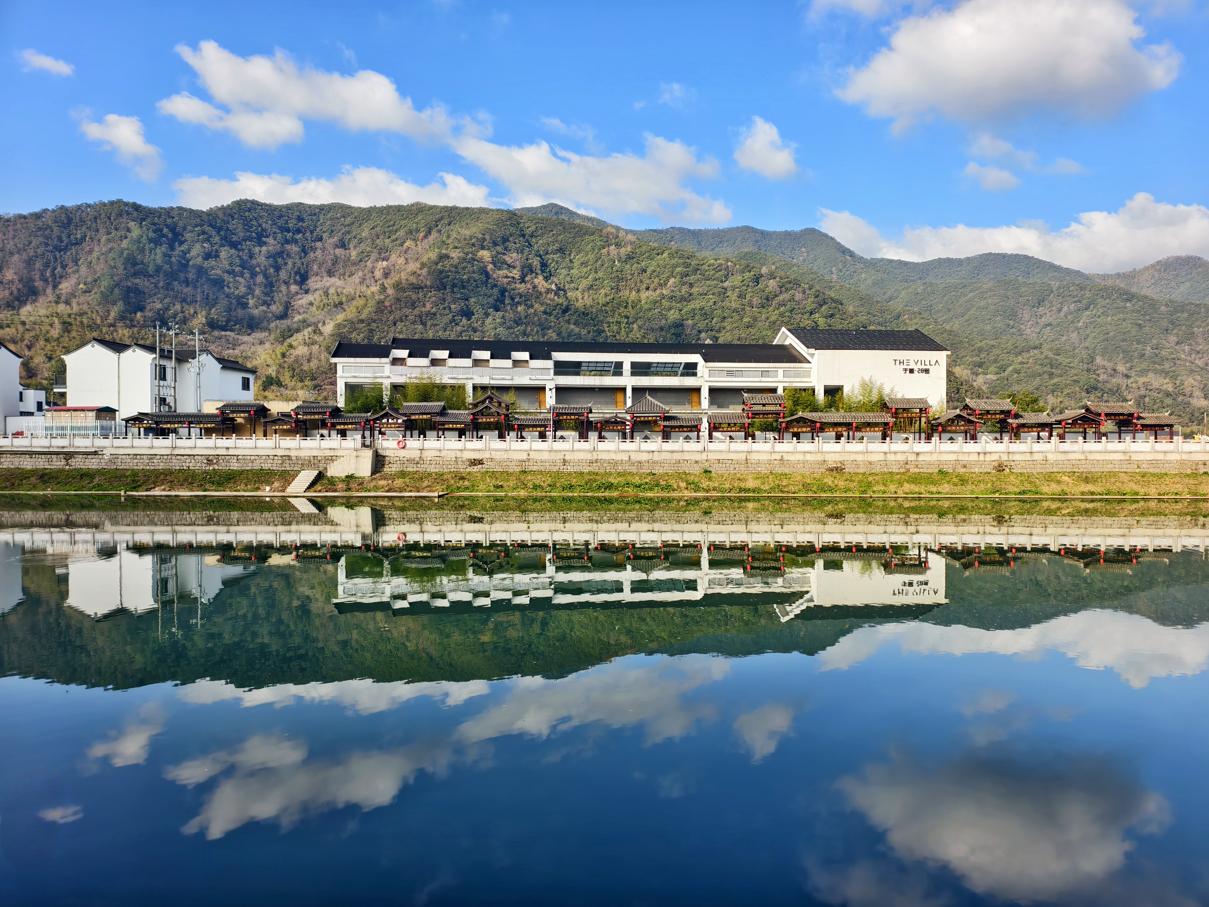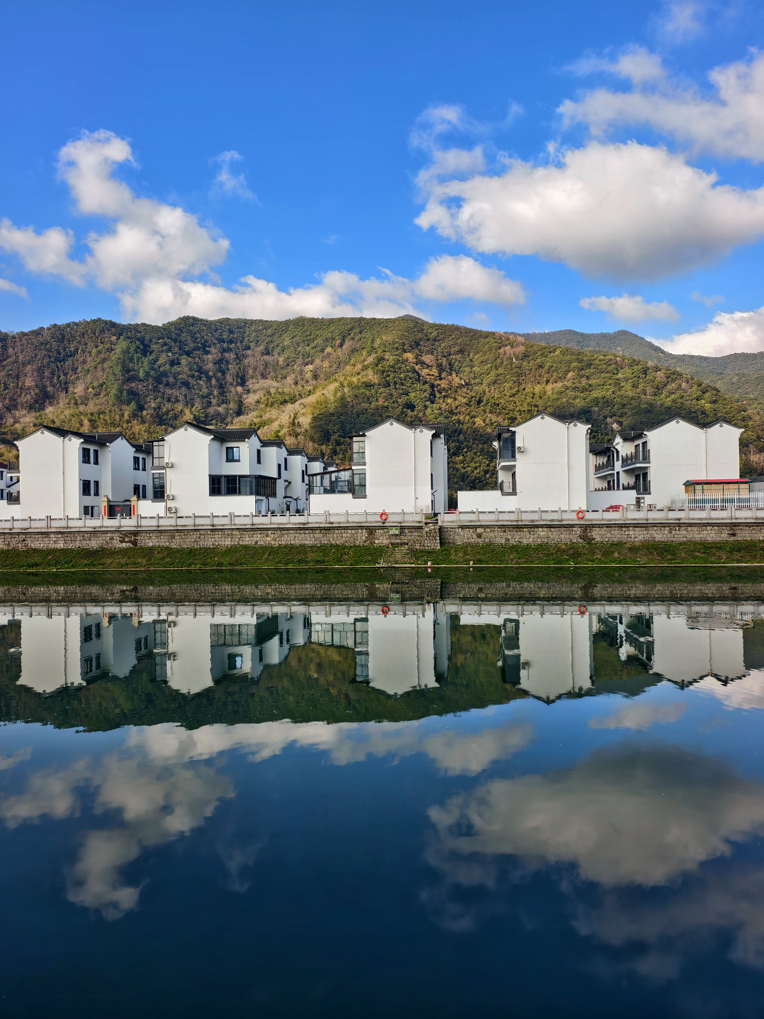 《云间乡居》,今天上午摄于浙江省绍兴市上虞区下管镇。 抬头是云,低头是影。 这一方临水而筑的乡居,藏着江南最干净的天光。 不必远行,诗意就在这一汪清涟里。