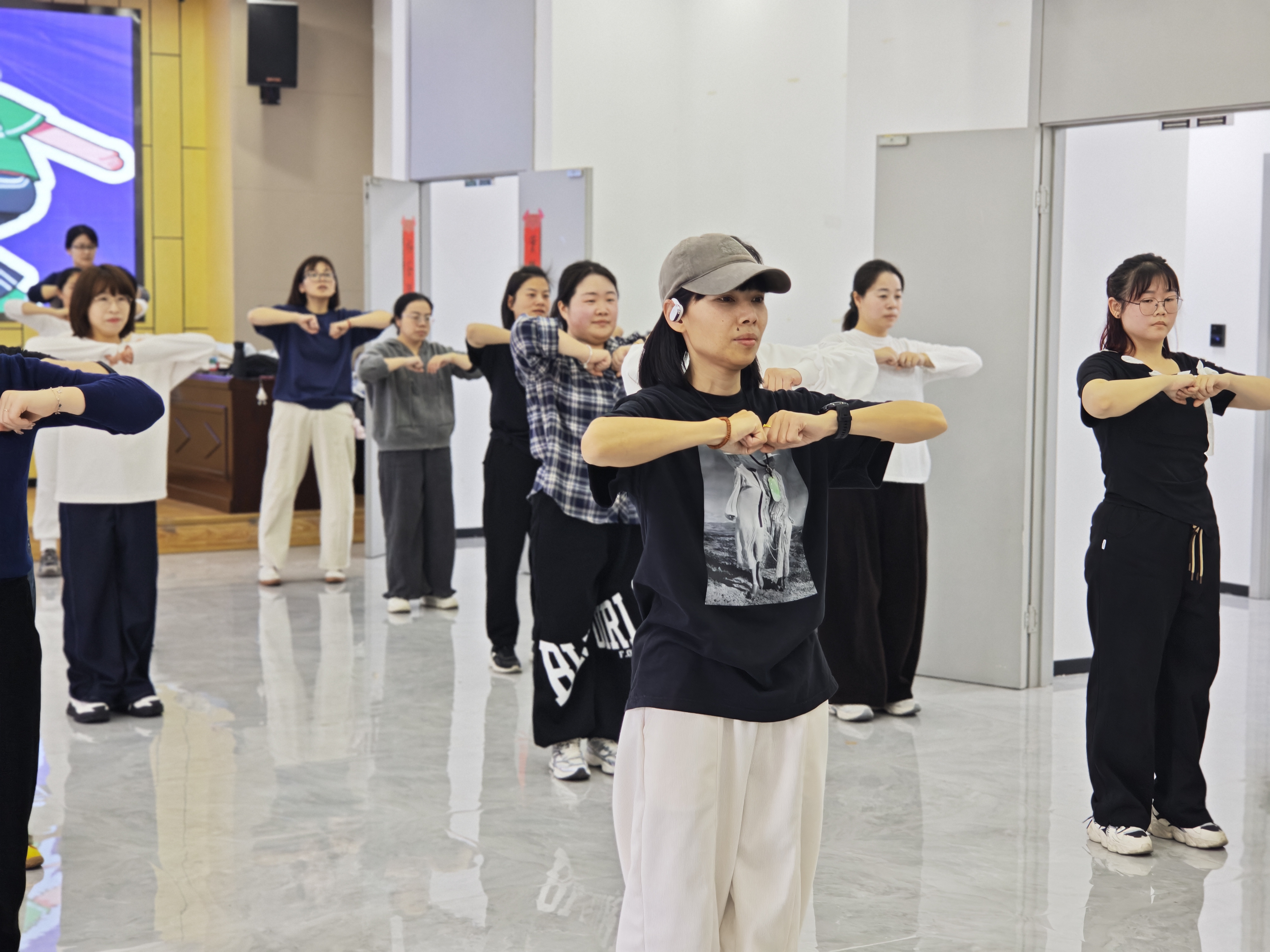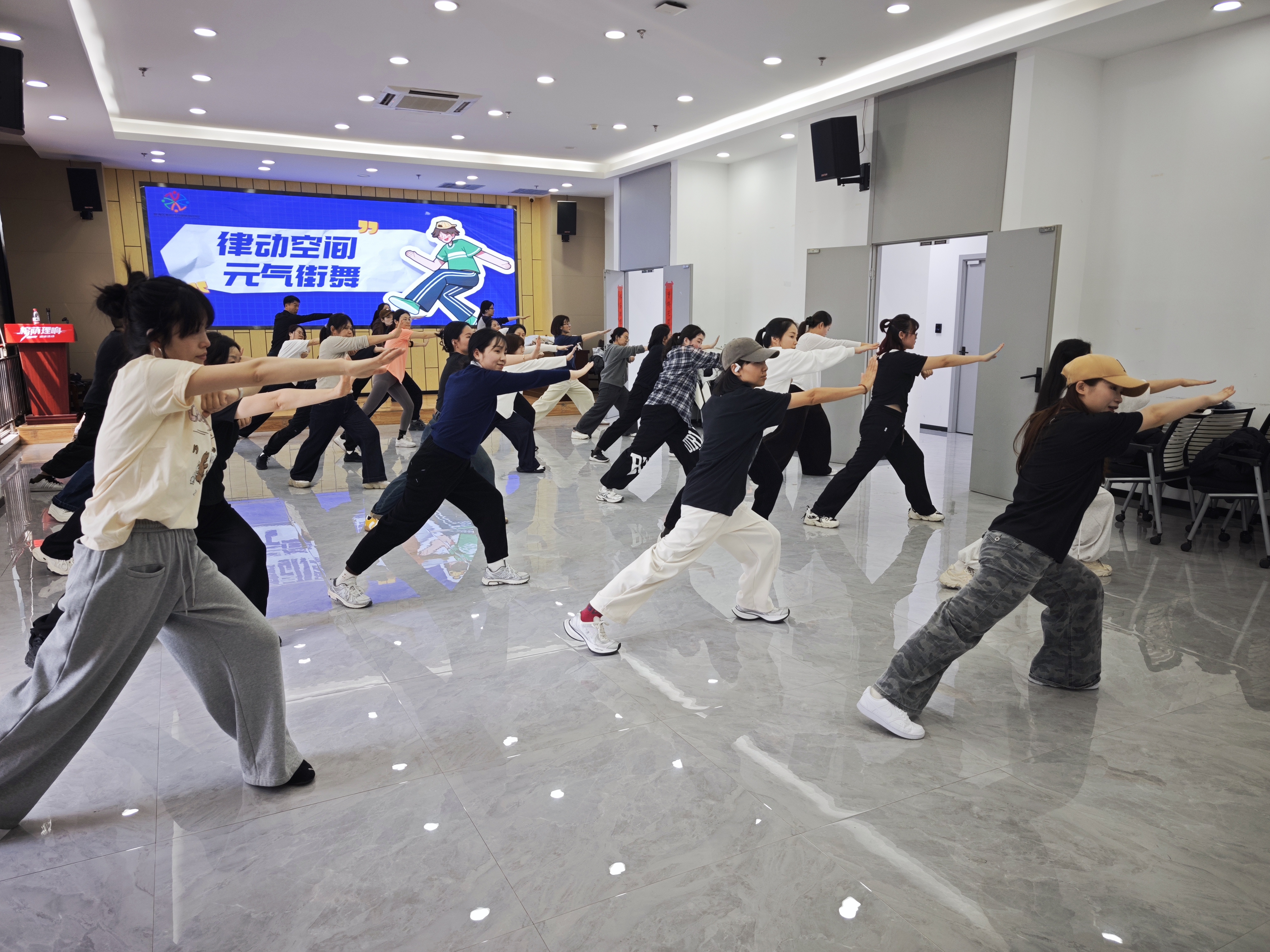 3月12日,瓯海区新时代文明实践中心的舞蹈室里,“律动空间 元气街舞”成人课程正热火朝天地练习着。