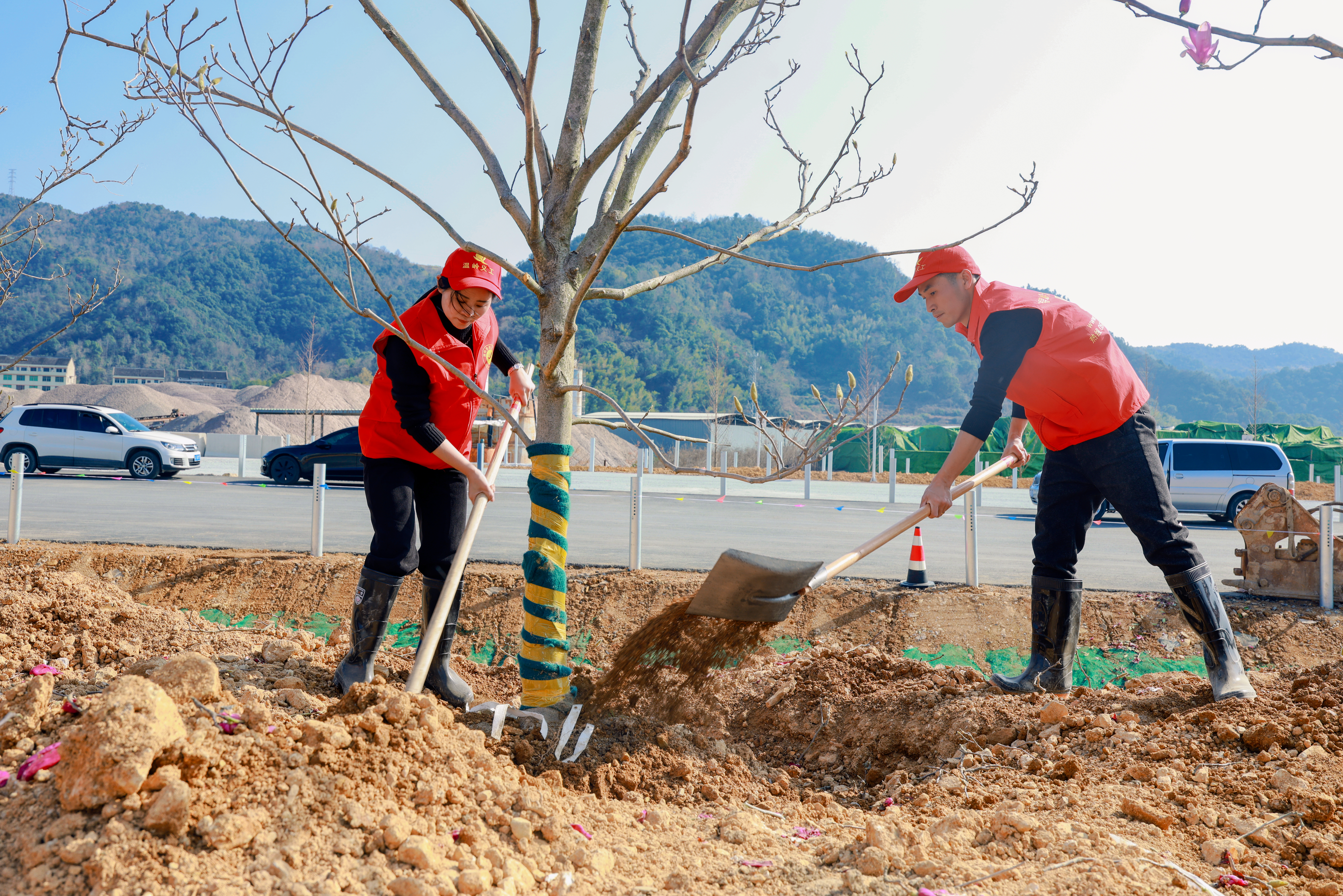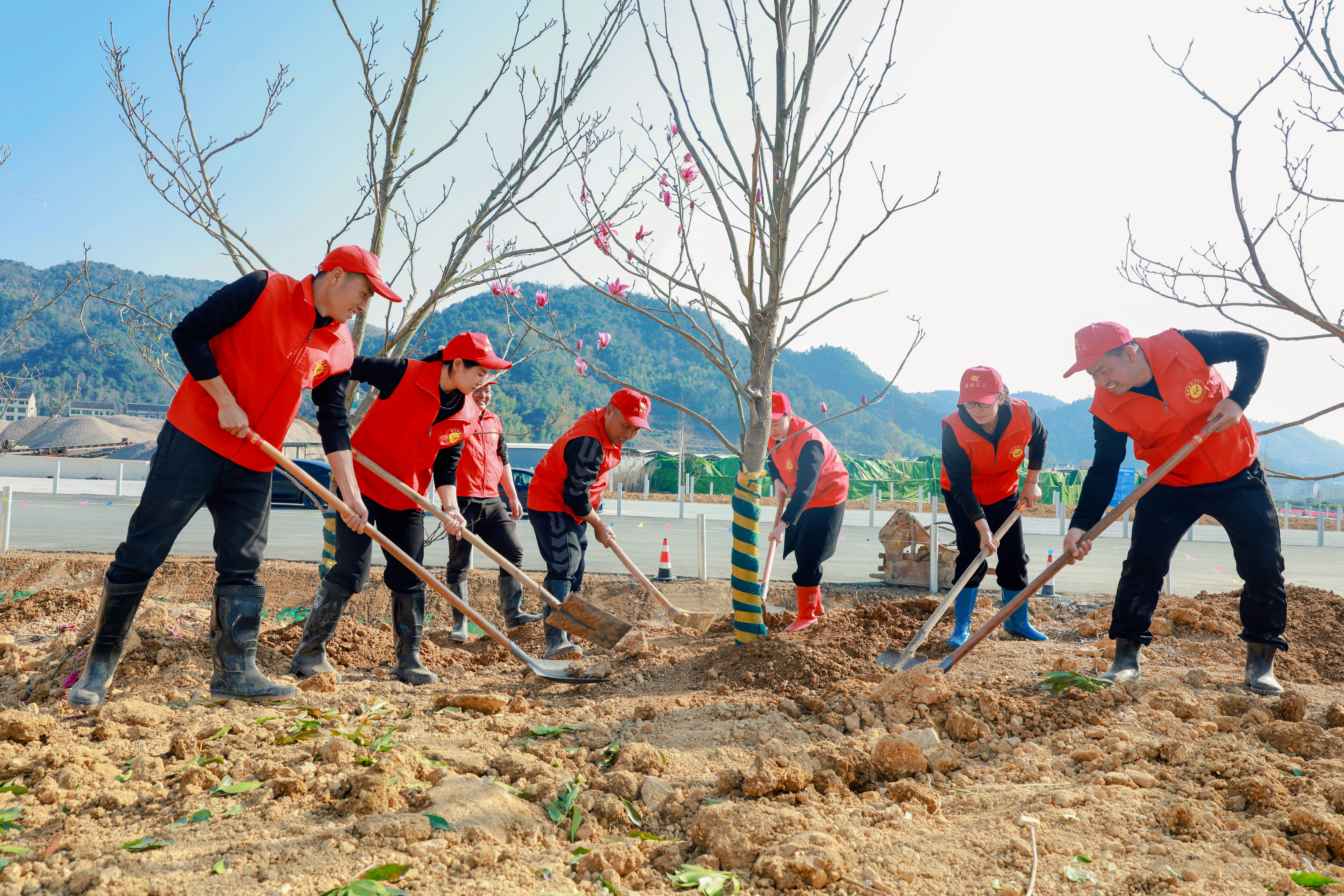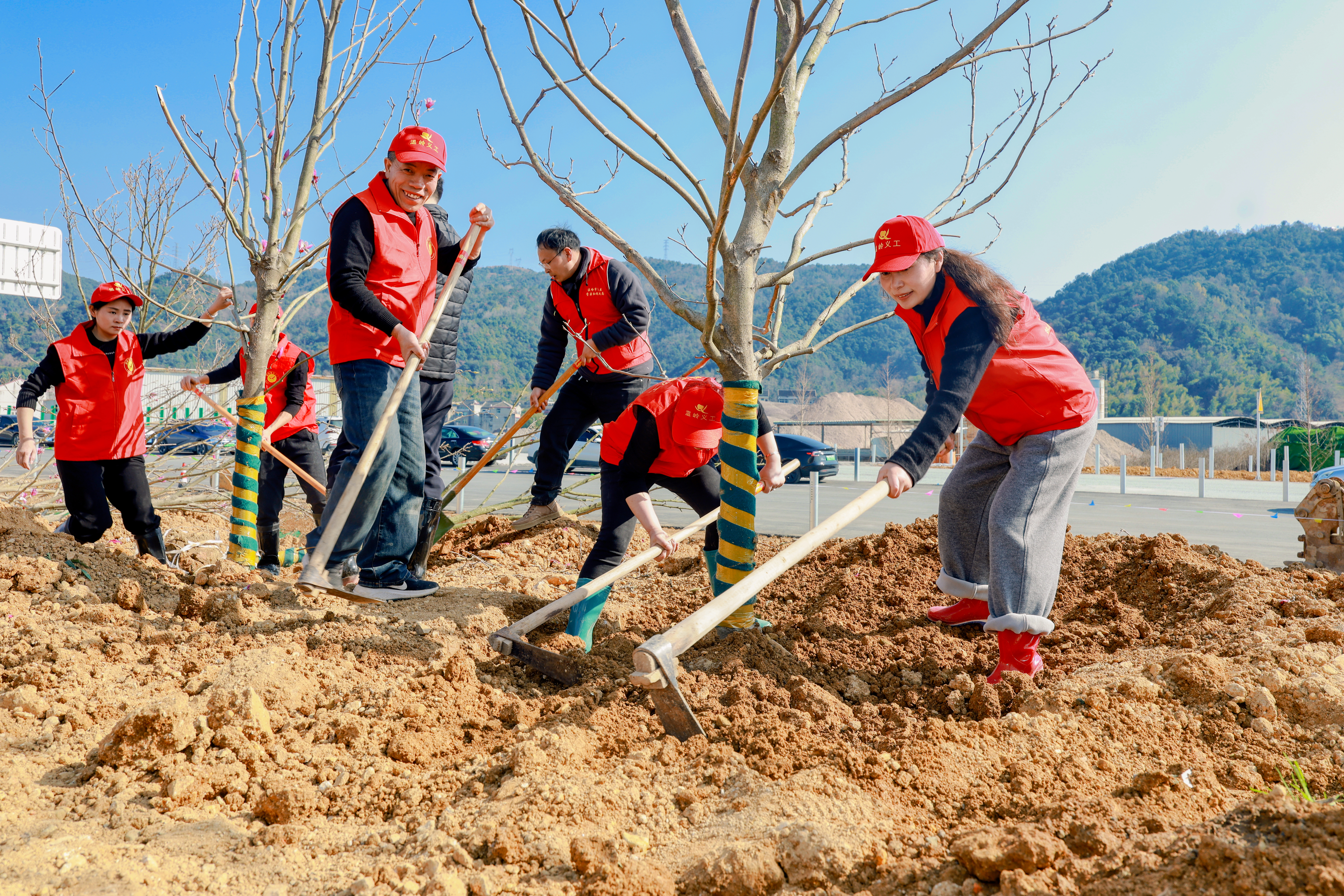 温岭:植树添新绿 3月11日,在温岭市慈善协会王会长的带领下,松门义工队前往温峤镇梅溪开展植树造林活动。活动现场,王会长与志愿者们身着红马甲,分工协作、干劲十足。大家挥锹挖坑、扶苗培土、浇水灌溉,每道工序细致认真,合力栽下一棵棵树苗,为春日梅溪增添片片新绿。积极参与生态建设,为共建绿色宜居家园贡献力量。
