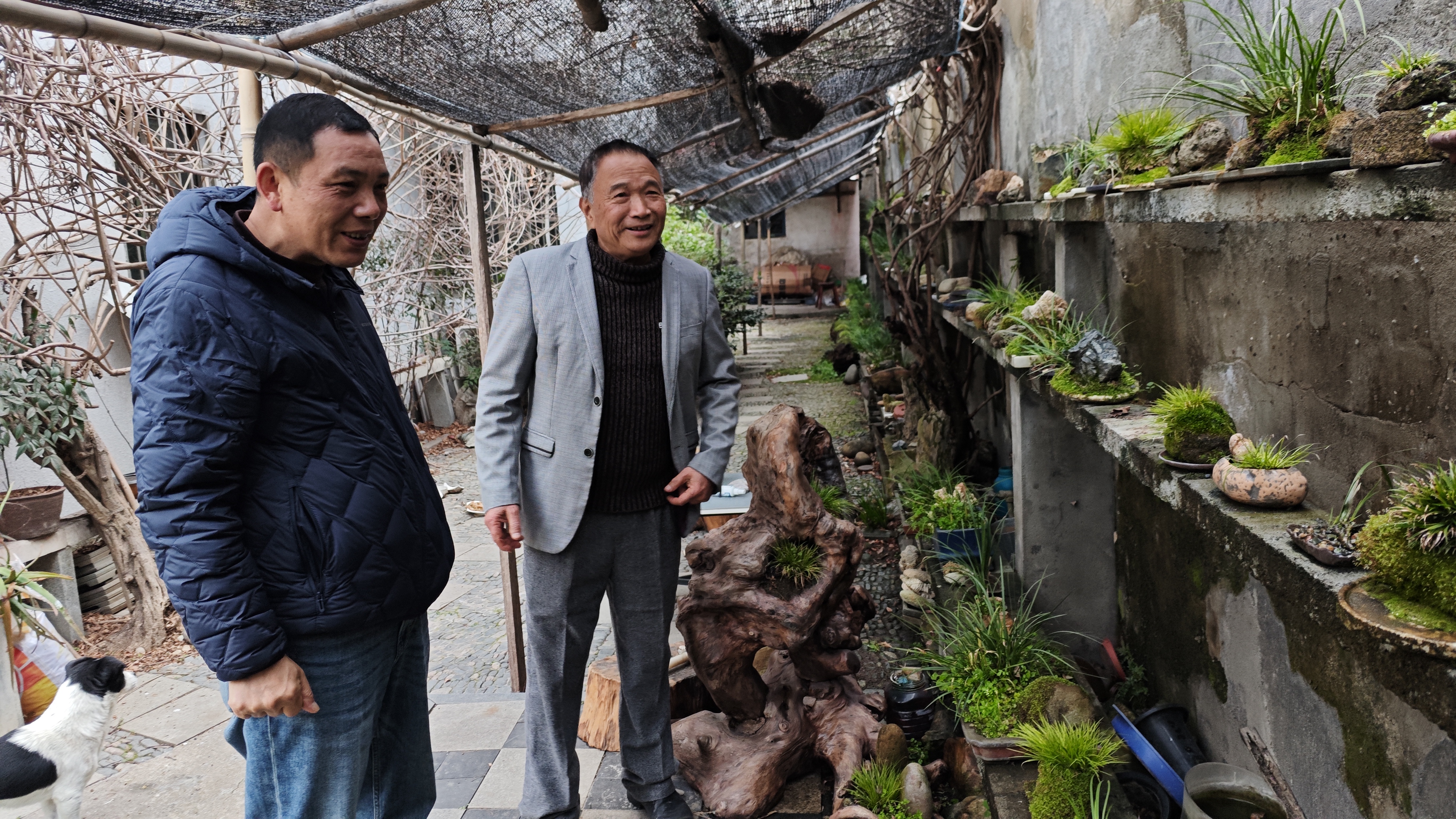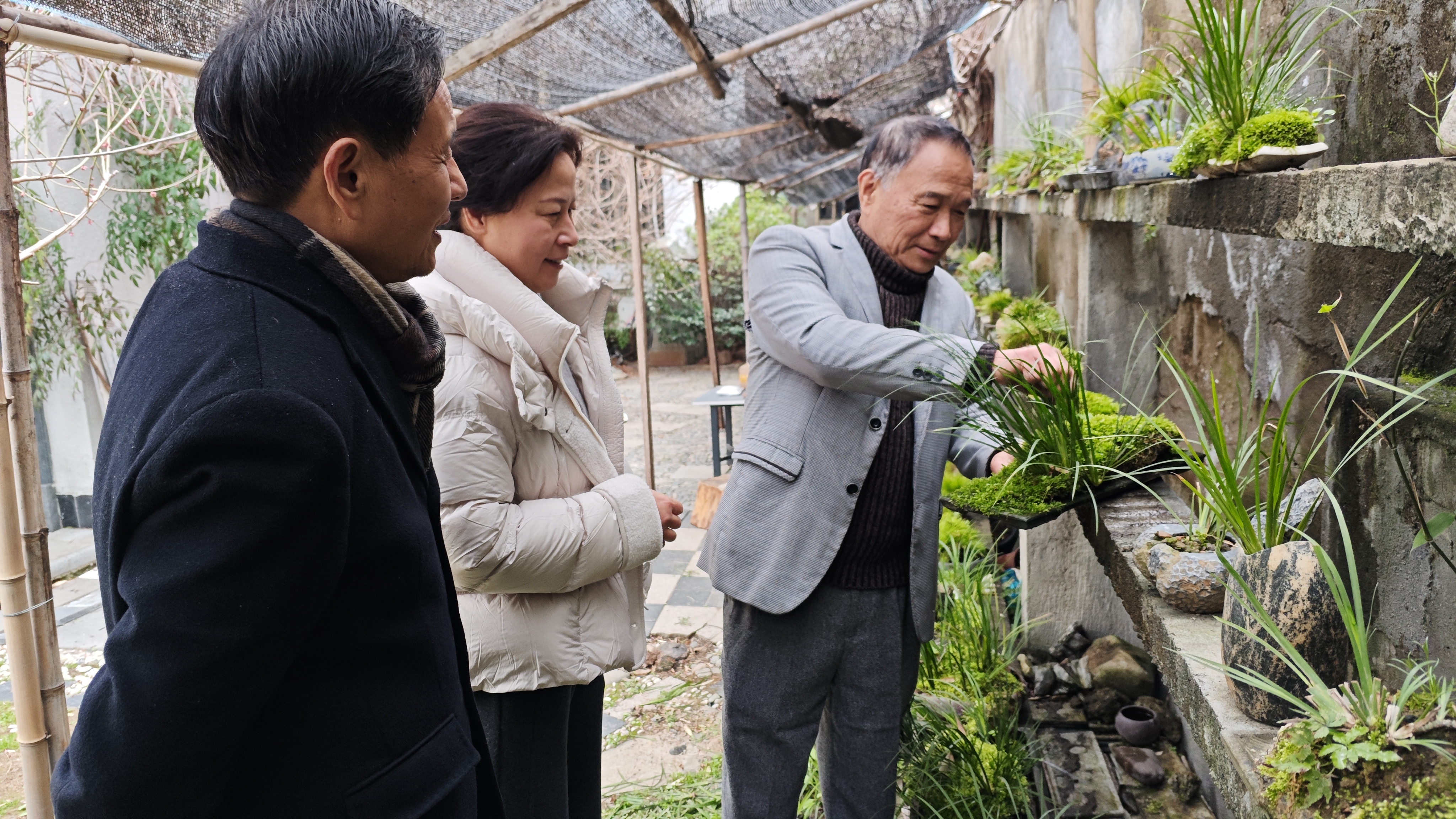 沈运旭老人十七年匠心独运 打造奉化最大石菖蒲盆景园 马宜奋 3月5日,岳林街道圆锋路上的一处盆景园内绿意盎然,园主沈运旭正热情地向访客们分享他种植石菖蒲的宝贵经验,现场不时响起阵阵赞叹声。 今年74岁的沈运旭是奉化书法家协会老年分会会长,平日里以书法修身养性。谈及与石菖蒲的缘分,老人回忆道,十七年前一位友人赠送了一盆石菖蒲,他偶然一闻,顿觉神清气爽。深入了解后得知,石菖蒲位列"四大雅草"之一,既是名贵中药材,更是古时文人墨客案头清供的雅物。"石菖蒲不仅姿态雅致、飘逸潇洒,更有提神醒脑之效,困倦时取一叶轻嗅,清香扑鼻,精神为之一振。"沈运旭介绍道。 退休后的沈运旭为丰富生活、陶冶情操,决定投身石菖蒲种植事业。创业初期困难重重:石菖蒲需精心管理,定期修剪、除草、浇水,工作量不小。老人自有妙招——外出时留意收集石头、树根等材料制作盆景;早晚抽时间打理;更安装了自动定时喷水装置,每日喷洒三到五次。凭着这份执着与巧思,他逐步攻克难关,种植规模从最初的寥寥数盆发展到如今的200多盆,三四个精品,成为奉化地区规模最大、品质最优的石菖蒲种植大户。 随着名气日隆,众多书画爱好者慕名而来,沈运旭也时常将精心培育的盆景赠予志同道合的朋友。面对热心人士提出的举办石菖蒲盆景展的建议,老人表示:"目前盆景的艺术水准还需精进,加之办展需要一定经费支持,待时机成熟,一定让大家一饱眼福。" 从书法案头到盆景园中,沈运旭用十七年的坚守,将退休生活过出了诗意与雅致,也为传统文化的传承写下了一段生动的注脚。