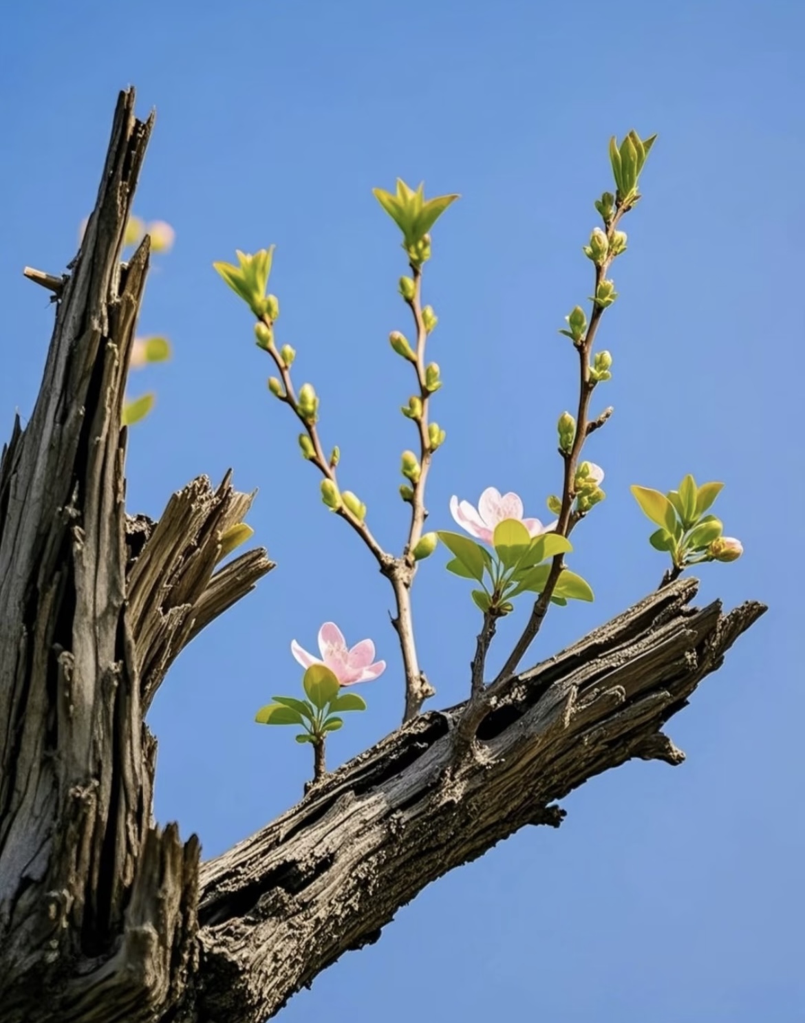 春天里 枯木逢春,万物新生 🌿 老枝抽新芽的仪式感 是春天给的温柔情书。