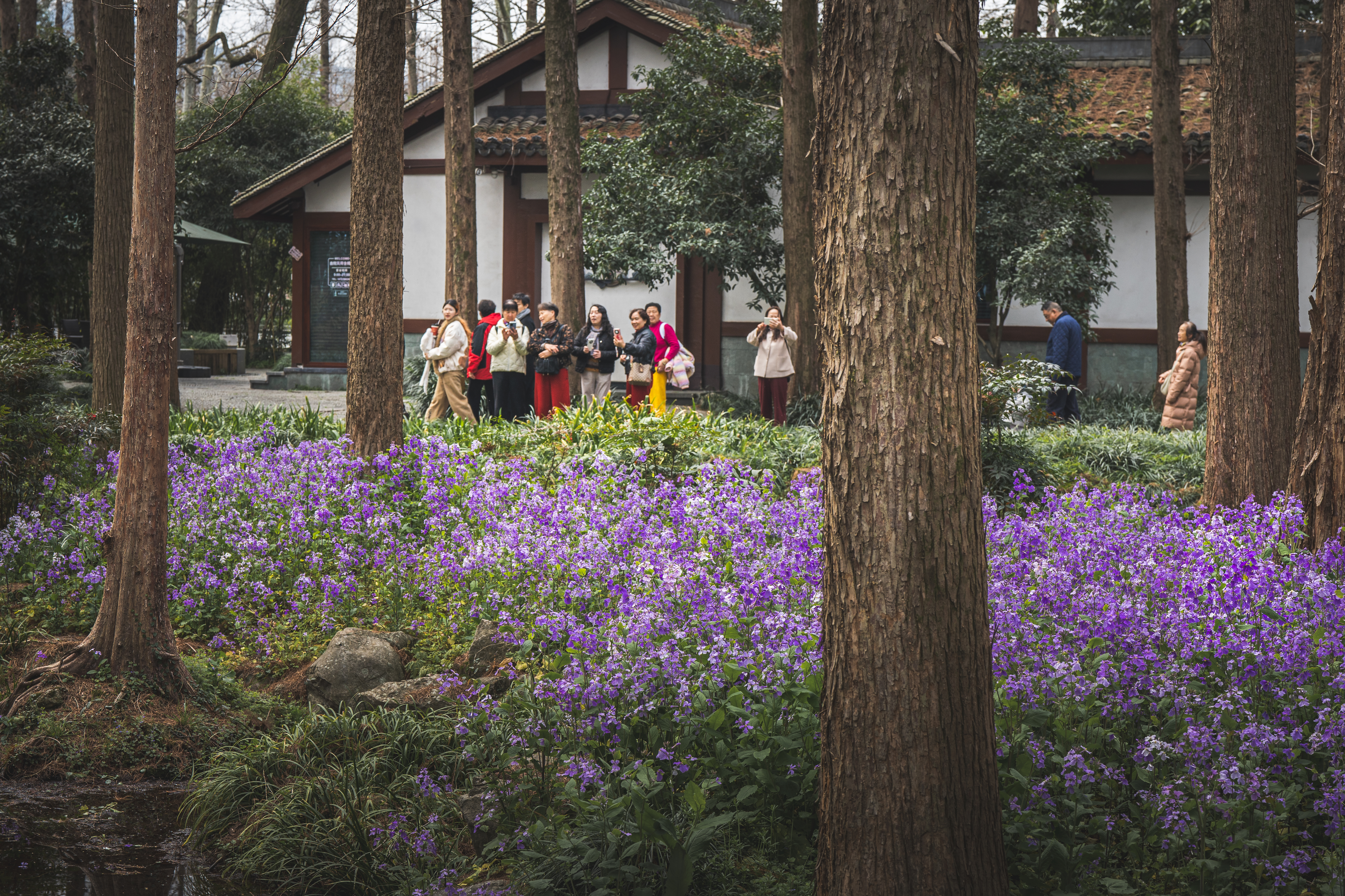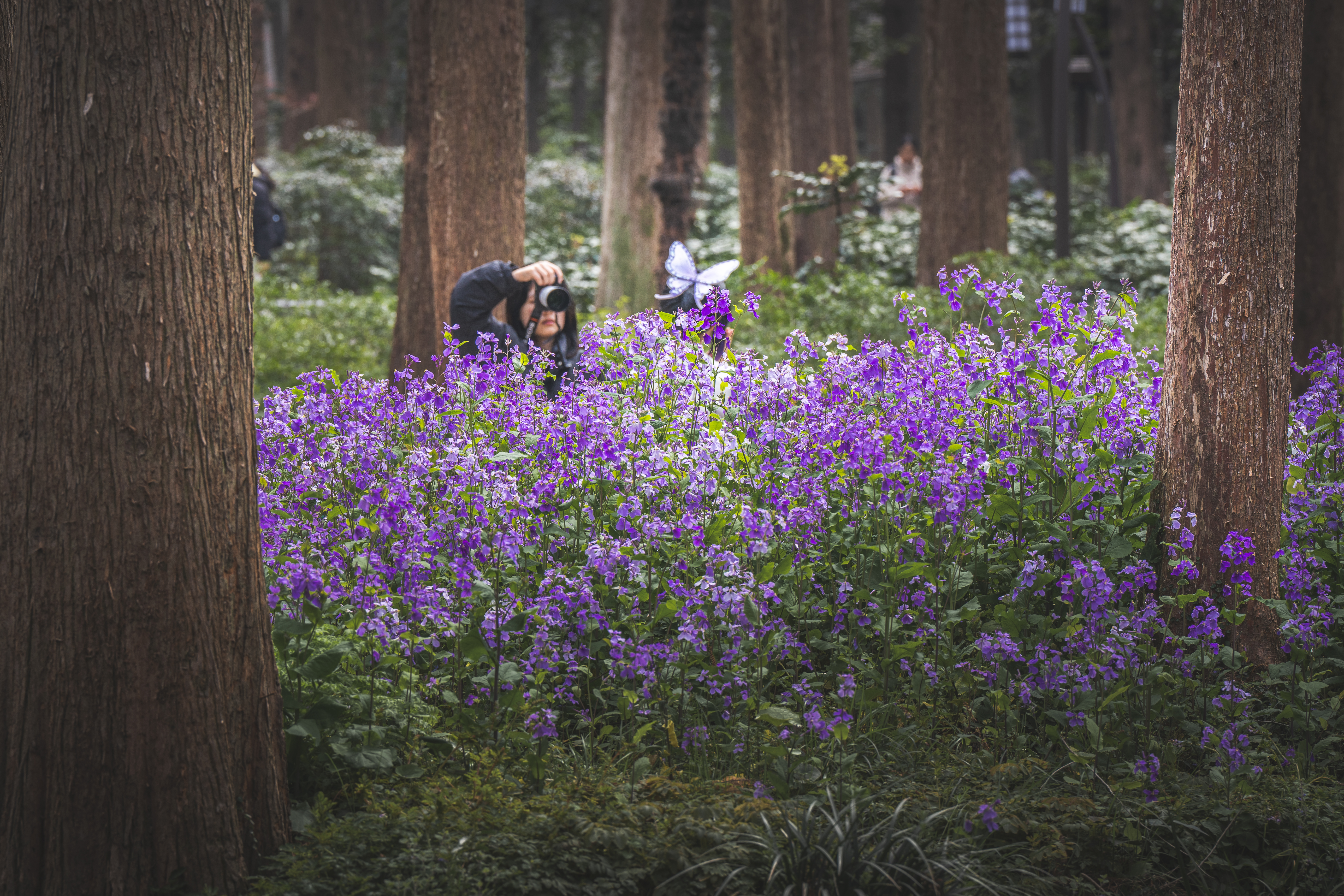 误入曲院风荷的林中秘境,一片紫雾漫林,引得游人驻足,连“蝴蝶”也来赴春约。