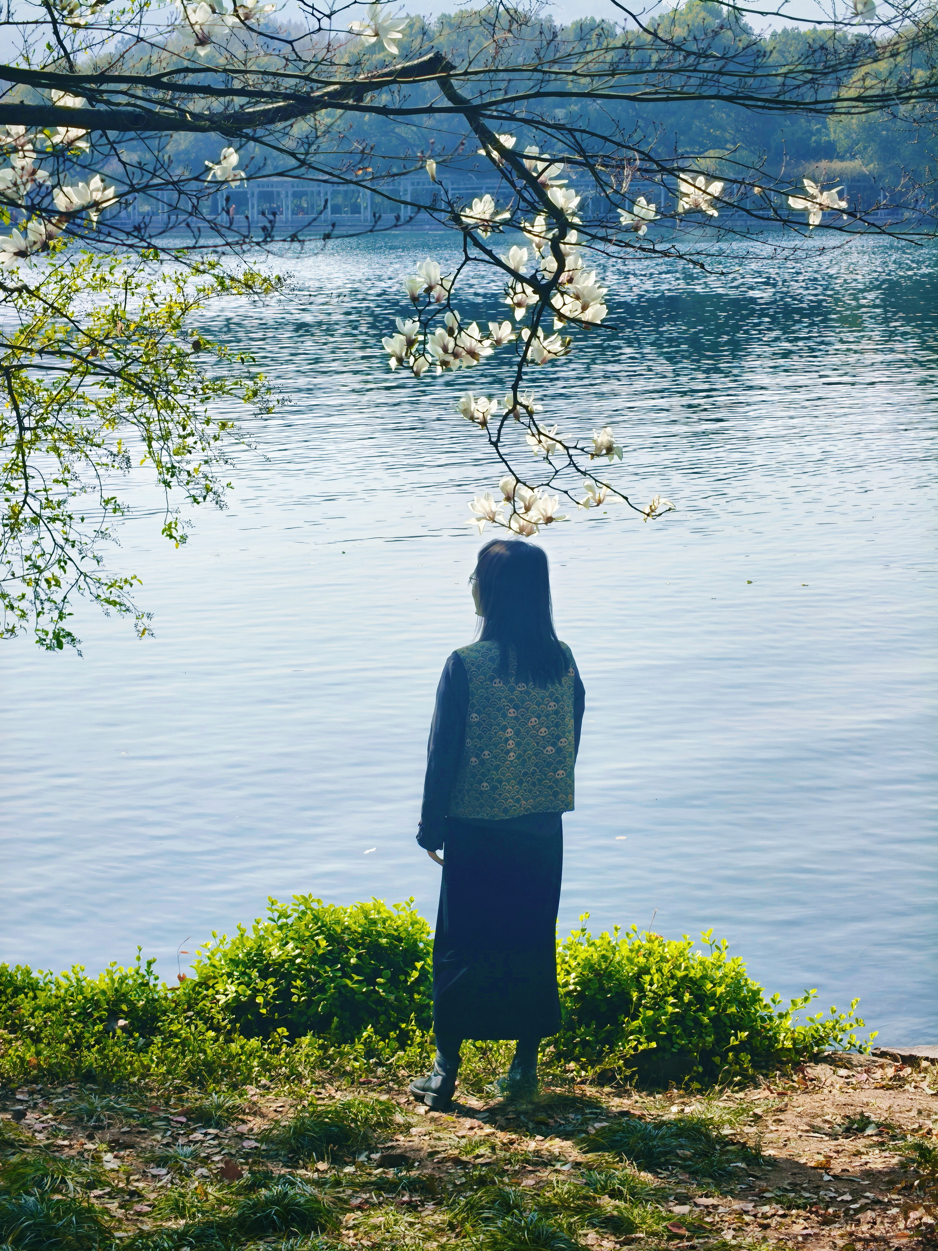 静静的,杭州西湖旁的玉兰树开了花。春的韵脚,已被这树简素的月辉,倾情晕染。玉兰之美,在风骨,习惯缄默地盛放,就像空谷里长出的幽兰,非以无人而不芳。她永远都在自顾自美丽,如传世的汝窑瓷,凝着温润柔雅的东方美韵。悠悠荡荡的香,是这纯净灵魂所散逸的芬芳。我愿做这玉兰般的人,看似孤独伫立于尘世,安享阳光雨露,也承受风霜雨雪。静默追寻扎根浮世的笃定心迹,慢慢地捡拾起自己的欢喜……
