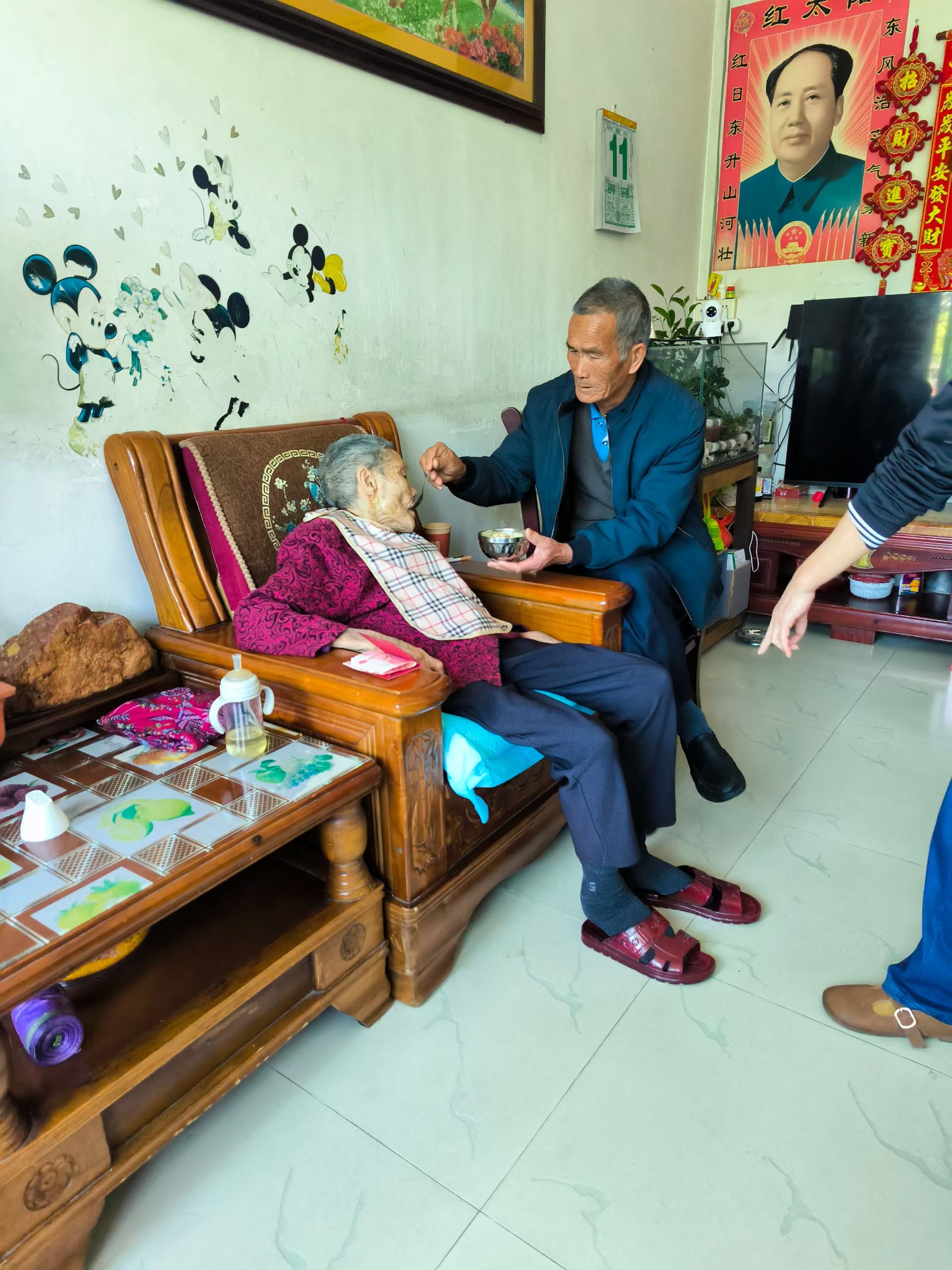 姐弟同框,感人非常;弟弟76岁,姐姐93岁,此情此景,胜过千言万语。