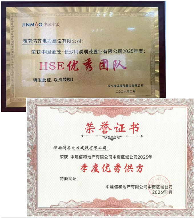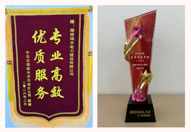 【不忘初心 载誉前行------鸿齐电力荣获多个业主单位表彰】(通讯员刘露)深耕电力工程设计与施工领域十余年,湖南鸿齐电力建设有限公司始终坚持“让每个客户用电无忧和为客户创造价值”的经营理念,凭借专业的技术与高效的履约能力,赢得了业主单位的高度认可。在过去的2025年,公司相继收获了来自中国石化、中国金茂、中建信和及红太阳新能源等多家重点合作伙伴授予的多项荣誉。 设计方面,湖南鸿齐电力建设有限公司圆满完成中国石化销售股份有限公司-湖南长沙石油分公司普瑞银杉加油站配电工程、乌山充电站配电工程两项设计工作,中石化湖南长沙石油分公司授予“专业高效 优质服务”锦旗,既是对本次两项配电工程设计成果的肯定,也是对公司综合服务能力与履约精神的赞誉。同时,被湖南红太阳新能源科技有限公司授予2025年度 “优秀合作单位”, 亦是对公司在新能源领域设计能力的认可。 施工方面,在梅溪湖国际新城二期配电工程施工过程中,湖南鸿齐电力建设有限公司项目小组严格执行HSE(健康、安全、环境)管理体系标准,实现了安全生产与文明施工的双重目标,被授予2025年度 “HSE优秀团队” 奖。在与中建信和地产有限公司中南区域公司的合作中,凭借专业履约能力及优良的配合度,荣膺2025年度 “季度优秀供方” 称号。 2026年,湖南鸿齐电力建设有限公司将继续以此为新的起点,不忘初心,载誉前行。公司将继续优化内部组织,强化安全意识,提高质量标准,提升服务品质,以更加饱满的热情、更专业的行业技术、更加优质的服务,服务广大业主。