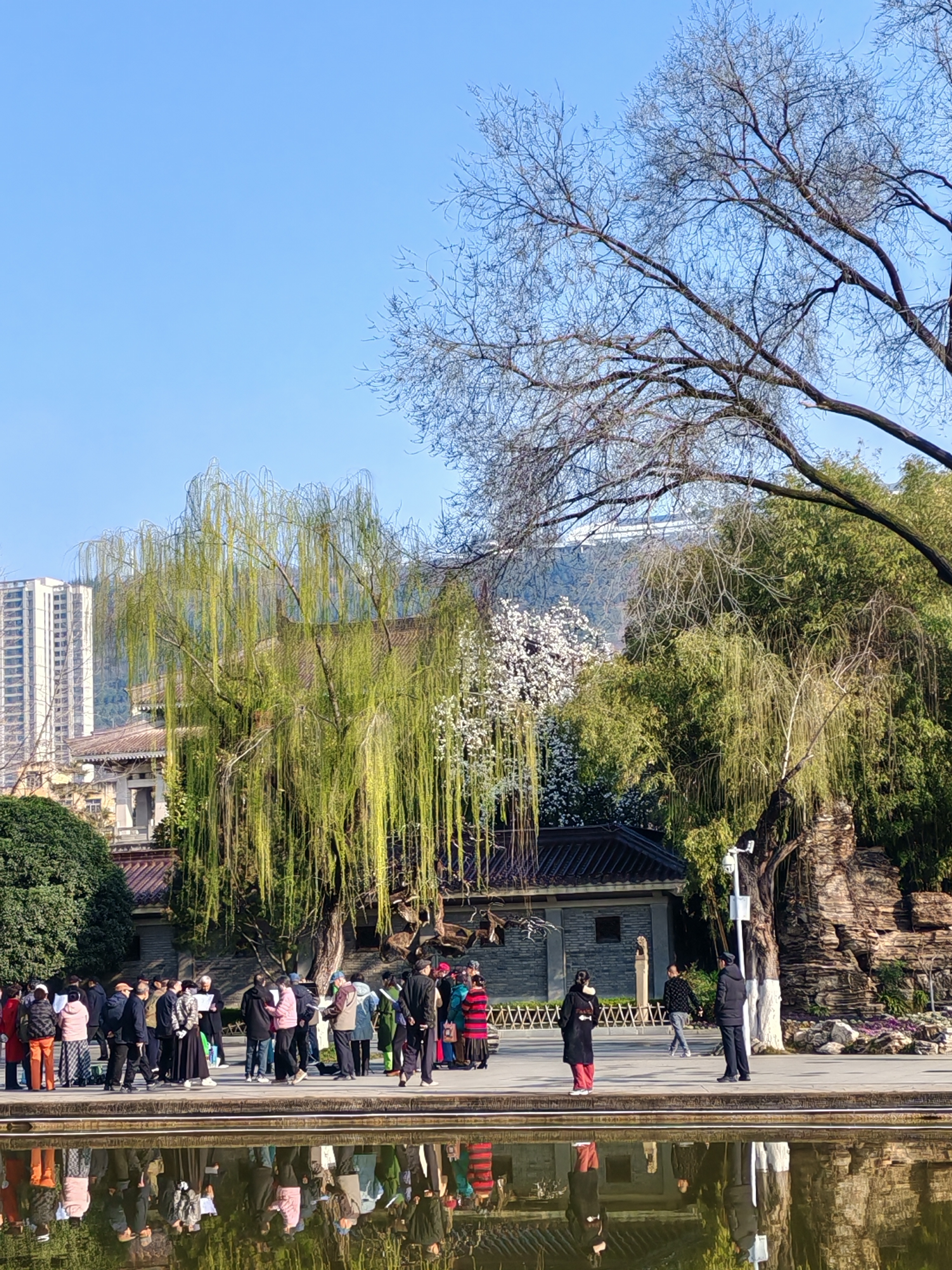 感春 街巷时时缨蕊动, 池园处处漫氤氲。 李花不妒梅花早, 杨柳竞争落木春。 地被紫丁逐日染, 岸飞黄翼瞬时新。 青山绿水无计价, 生态城乡惠生民。